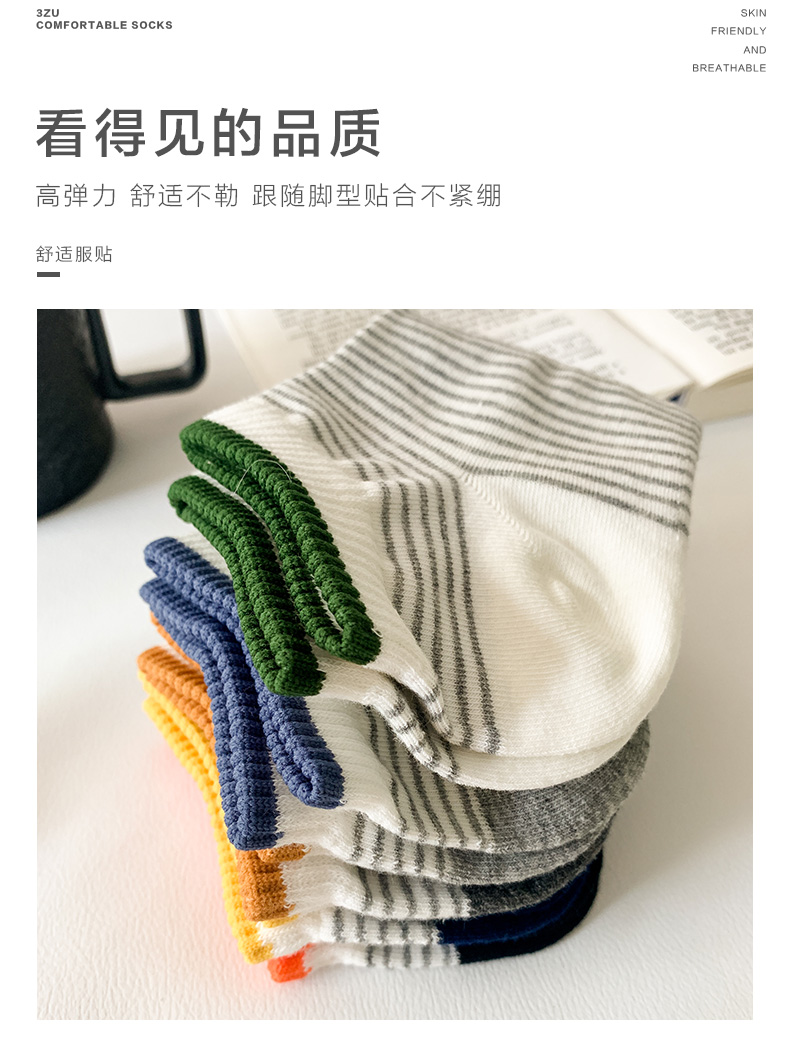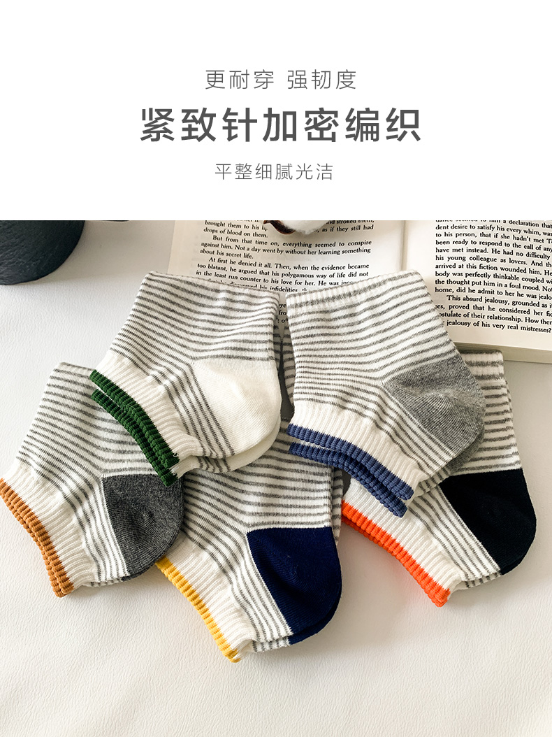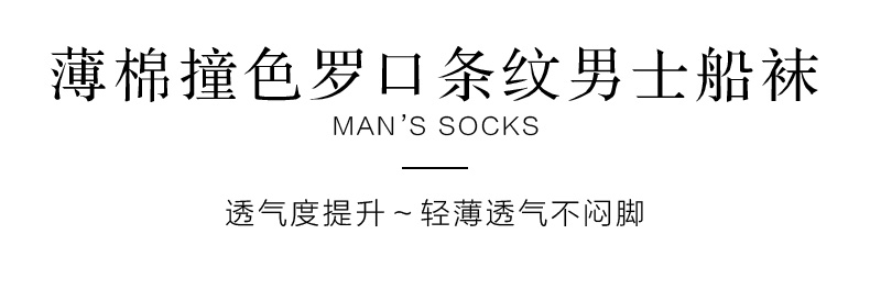 足装秀24新品夏天男士短袜棉质薄棉百搭轻薄透气条纹船袜男袜子