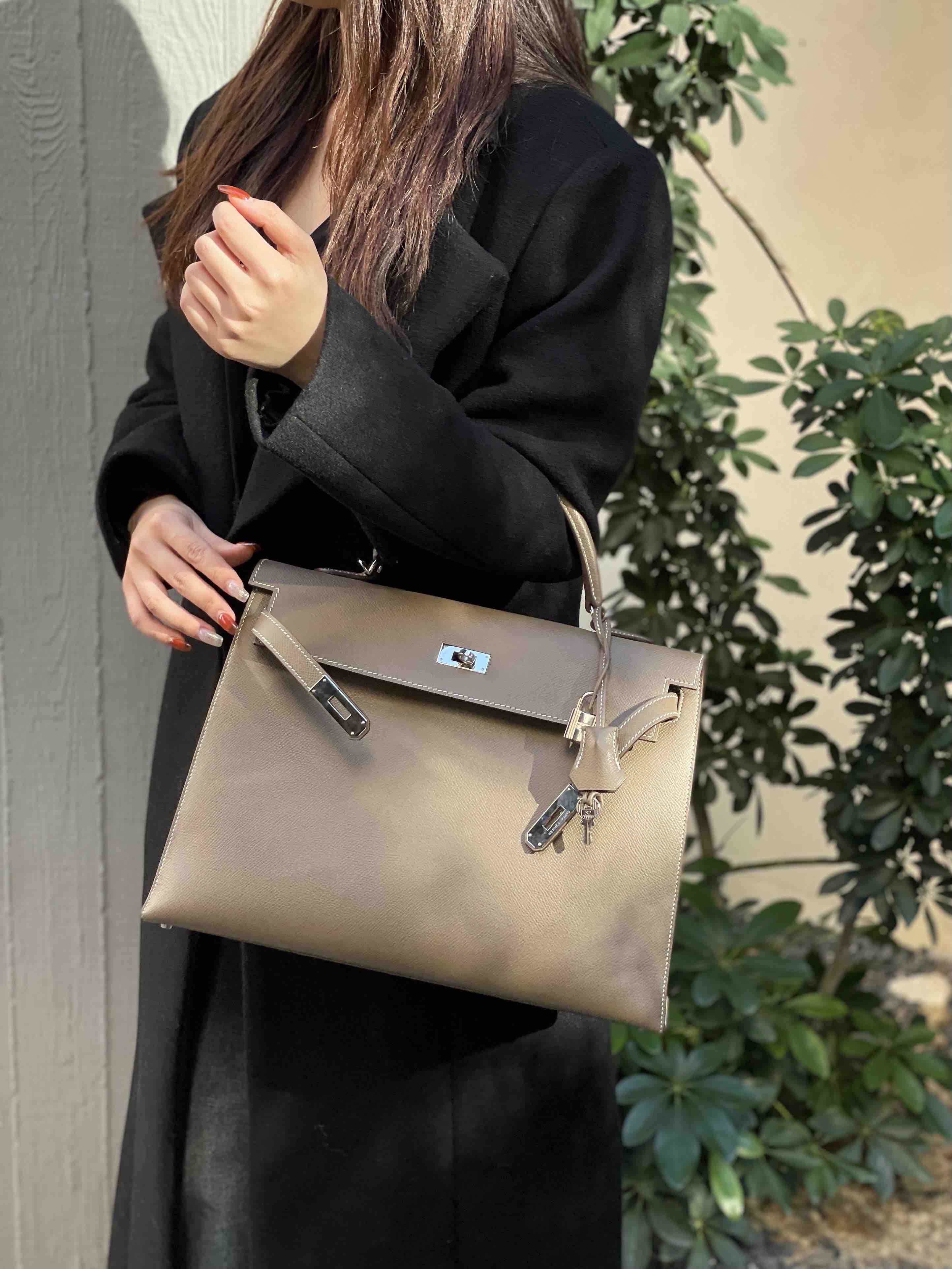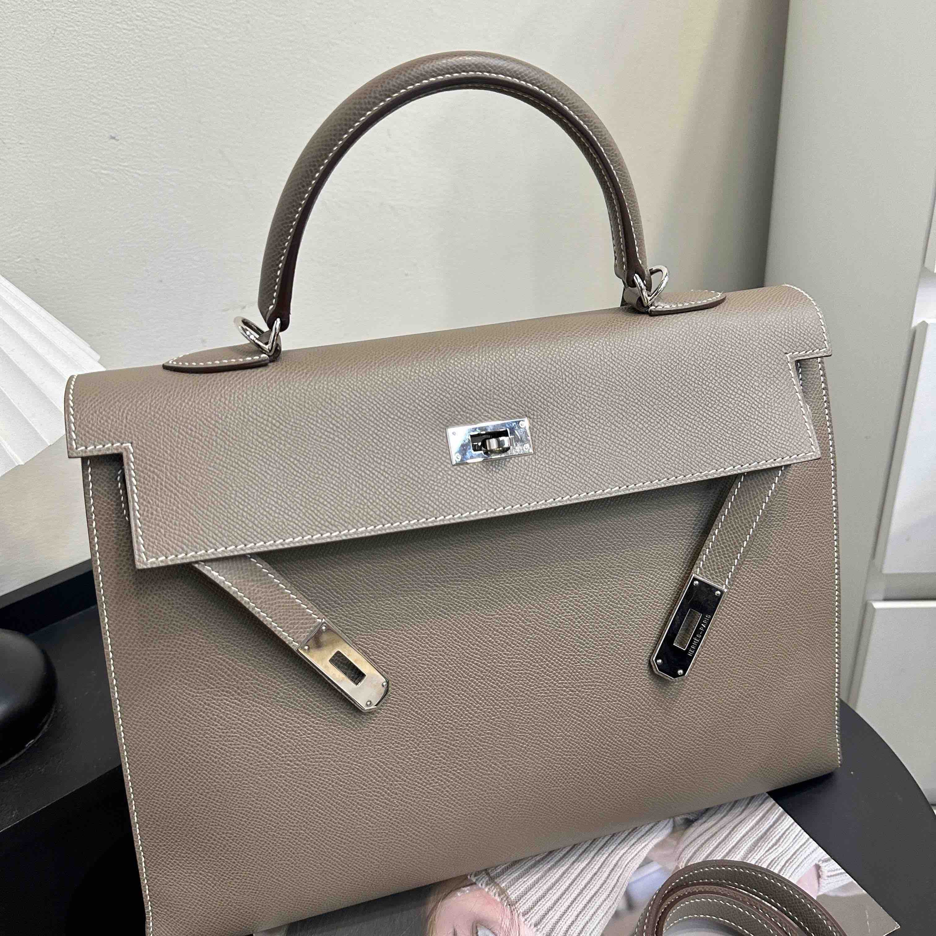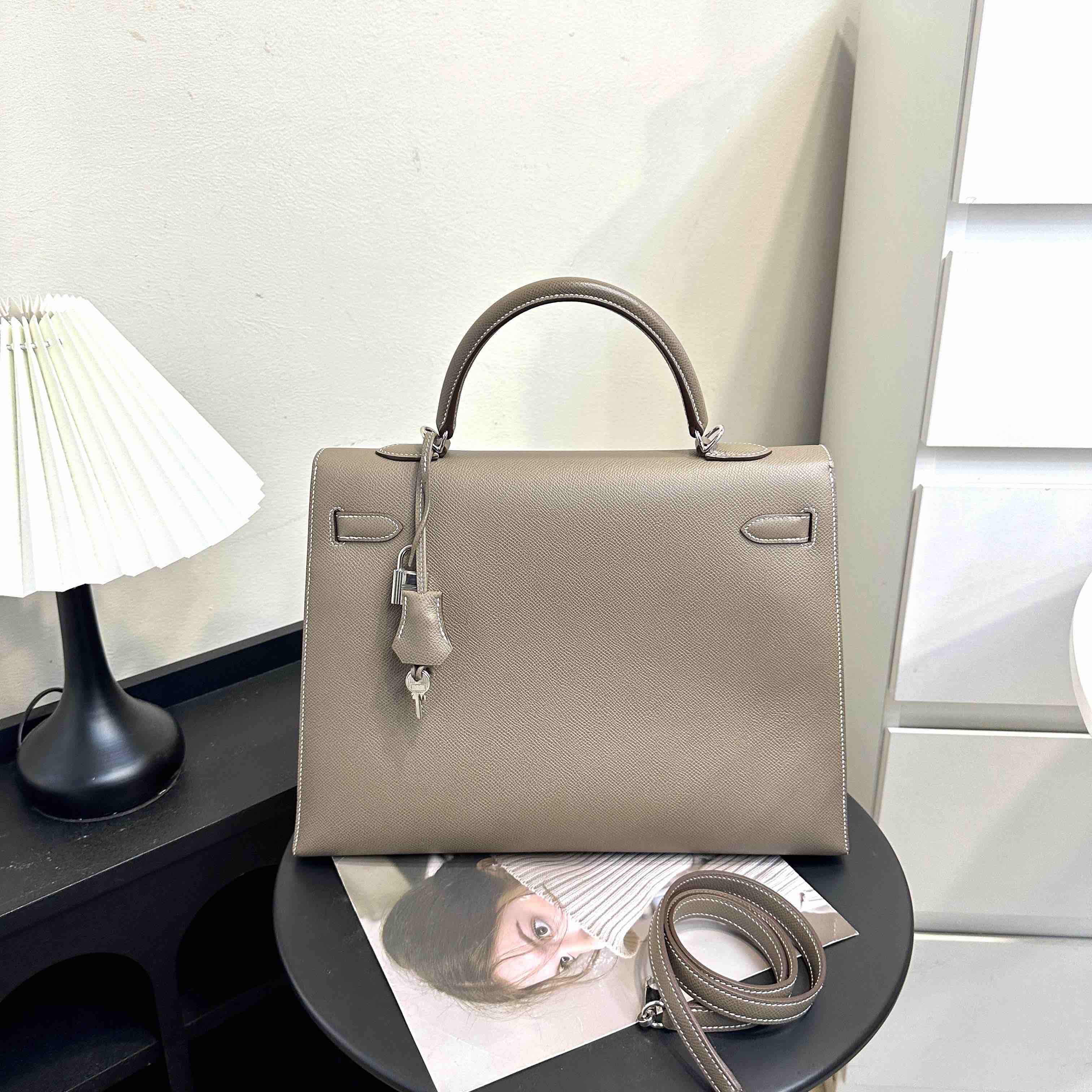 【商品详情】正品二手 爱马仕 Kelly 35 大象灰 银扣 E皮 外缝手提包🐘 98新 35x25 方块N刻【10年】 配件:钥匙、挂件、锁、肩带。整体状态非常好