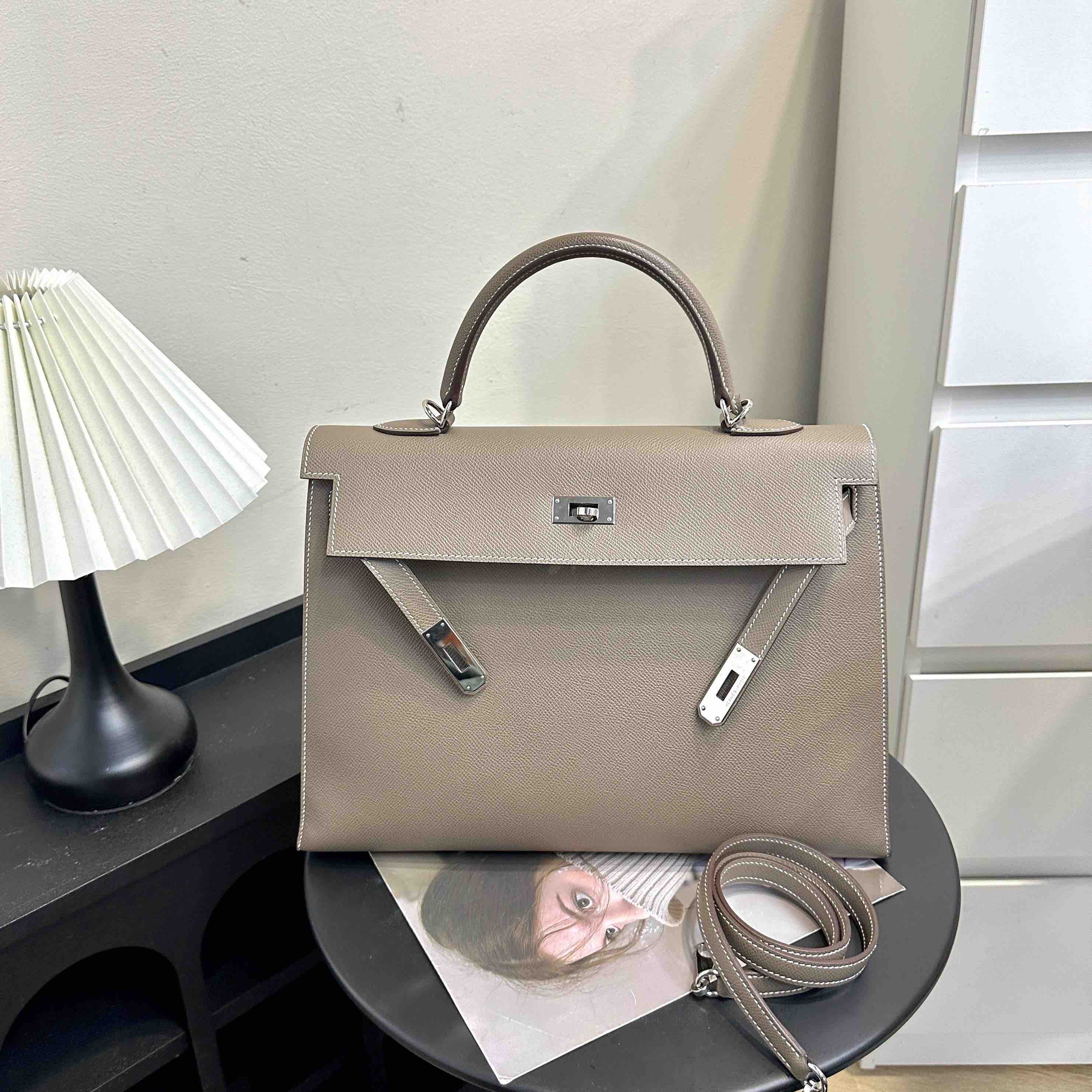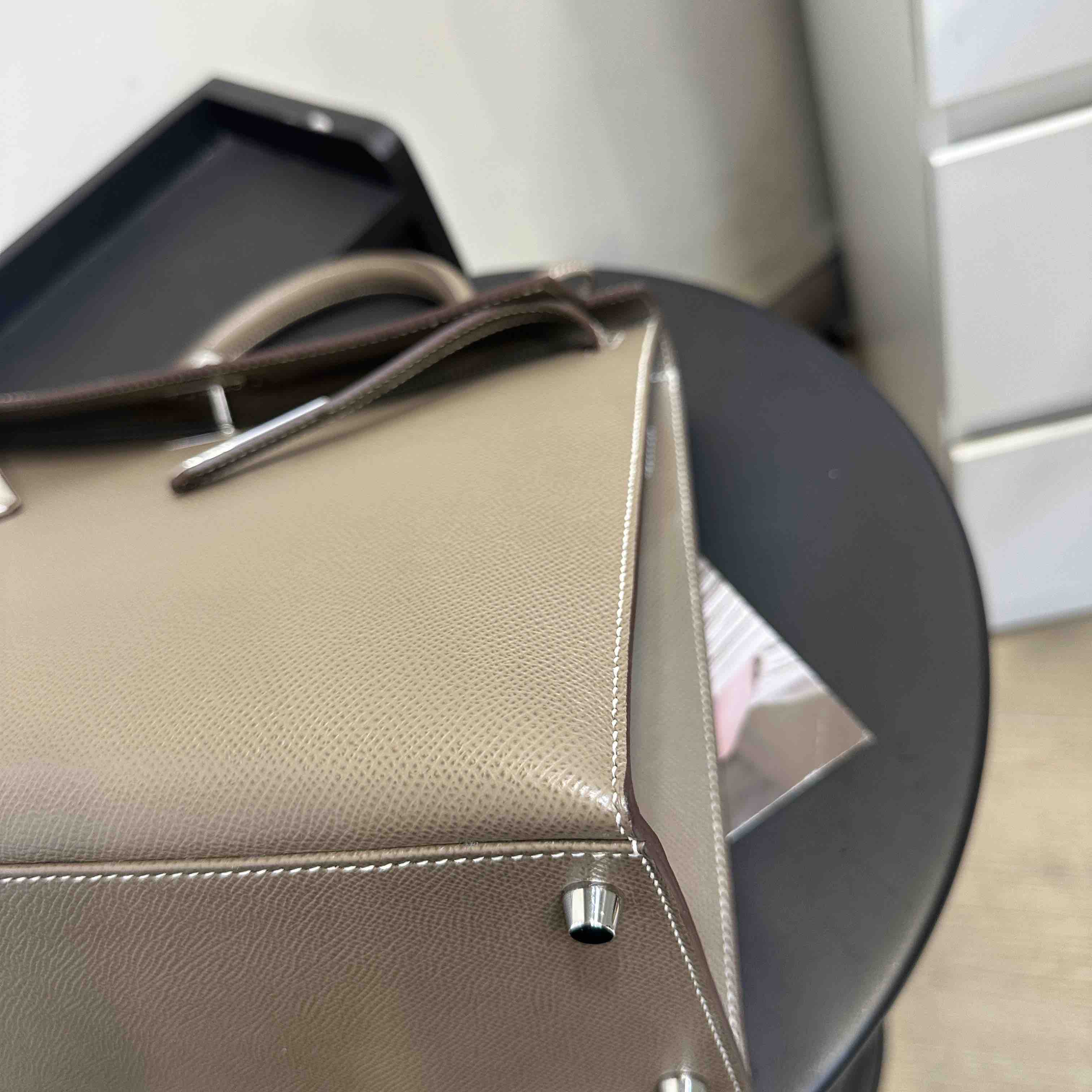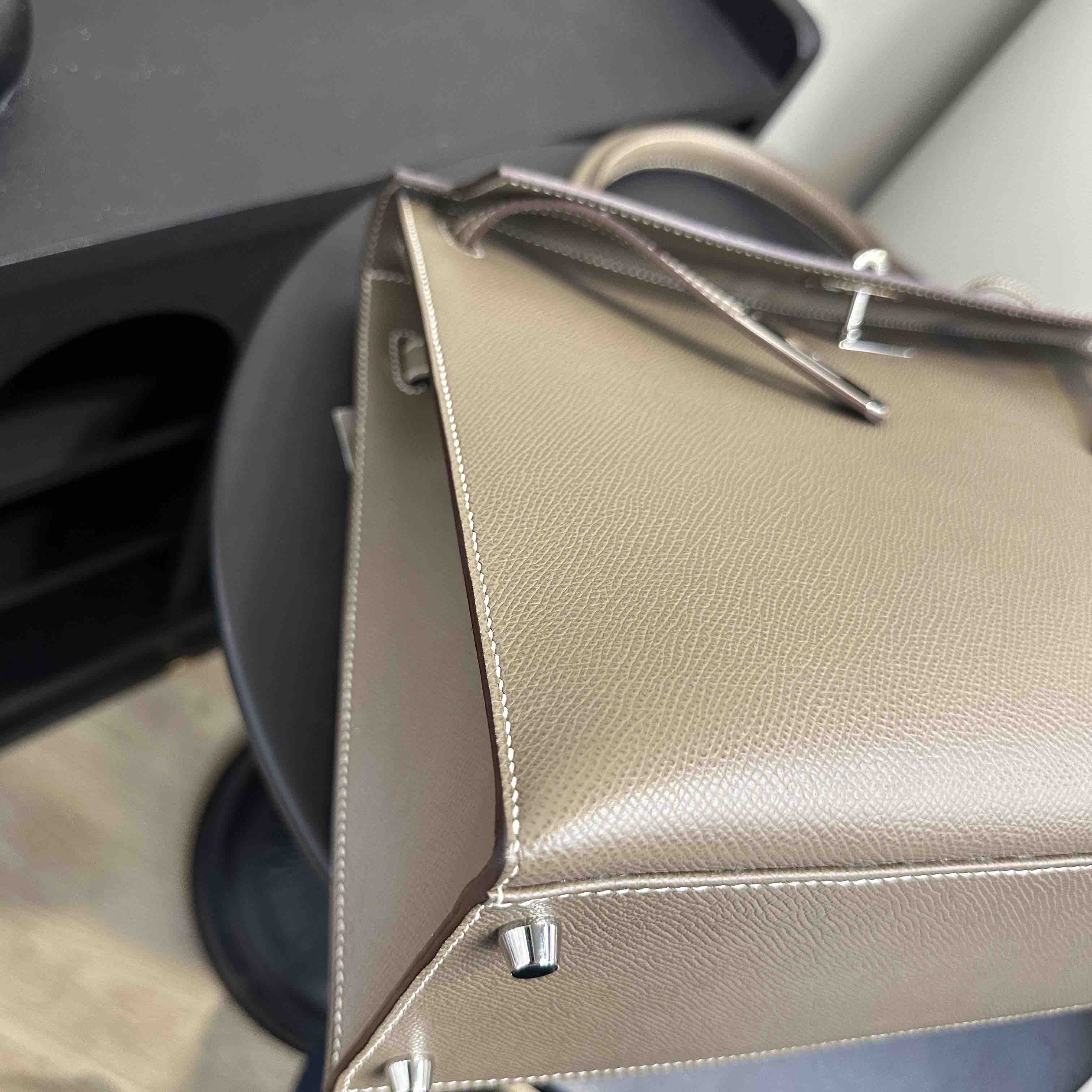 【商品详情】正品二手 爱马仕 Kelly 35 大象灰 银扣 E皮 外缝手提包🐘 98新 35x25 方块N刻【10年】 配件:钥匙、挂件、锁、肩带。整体状态非常好