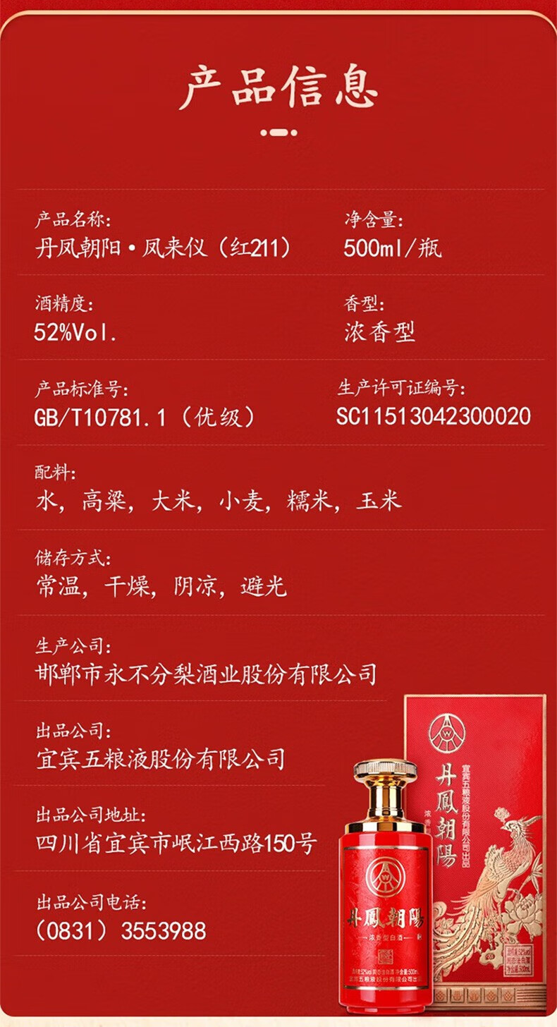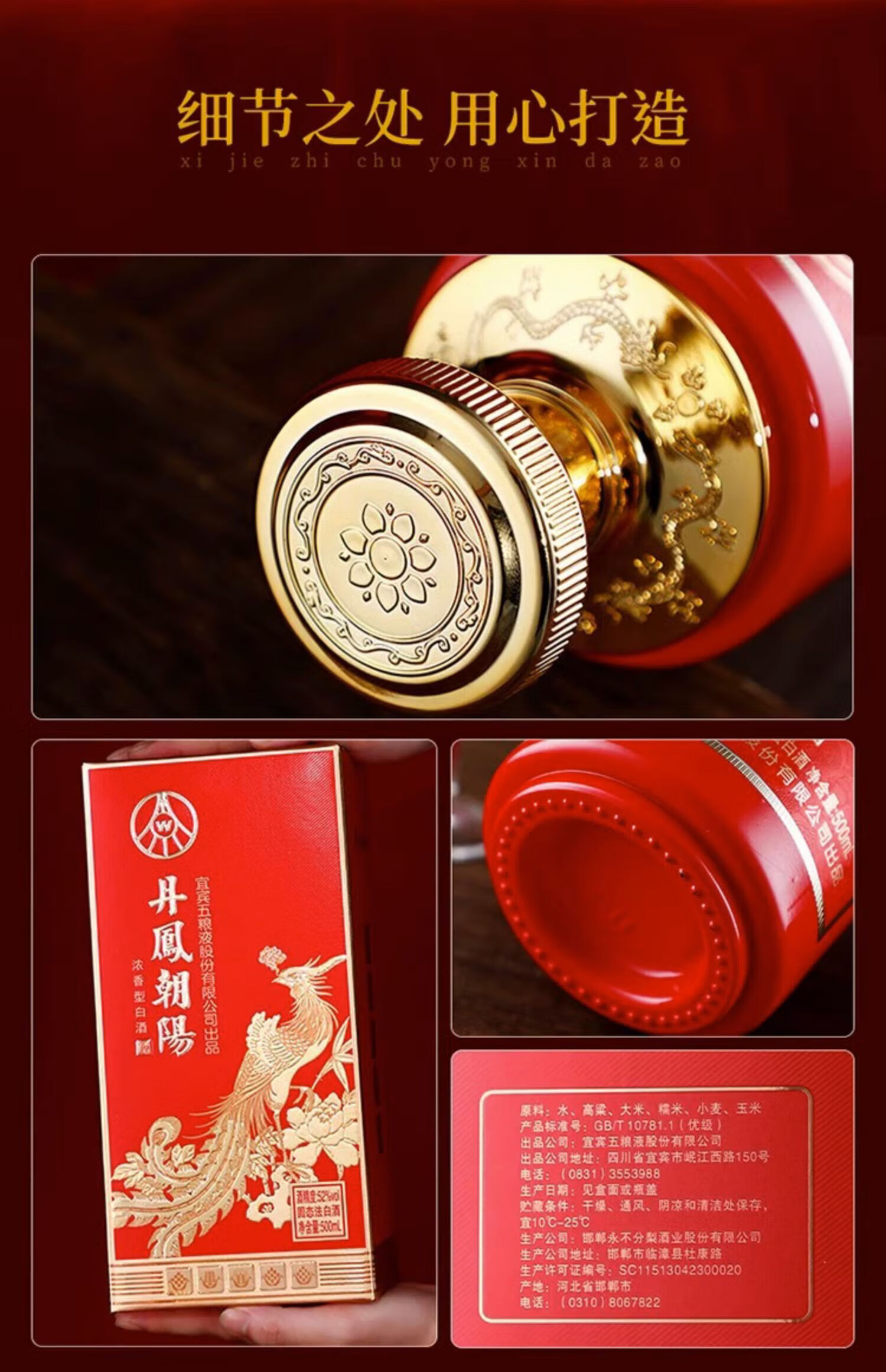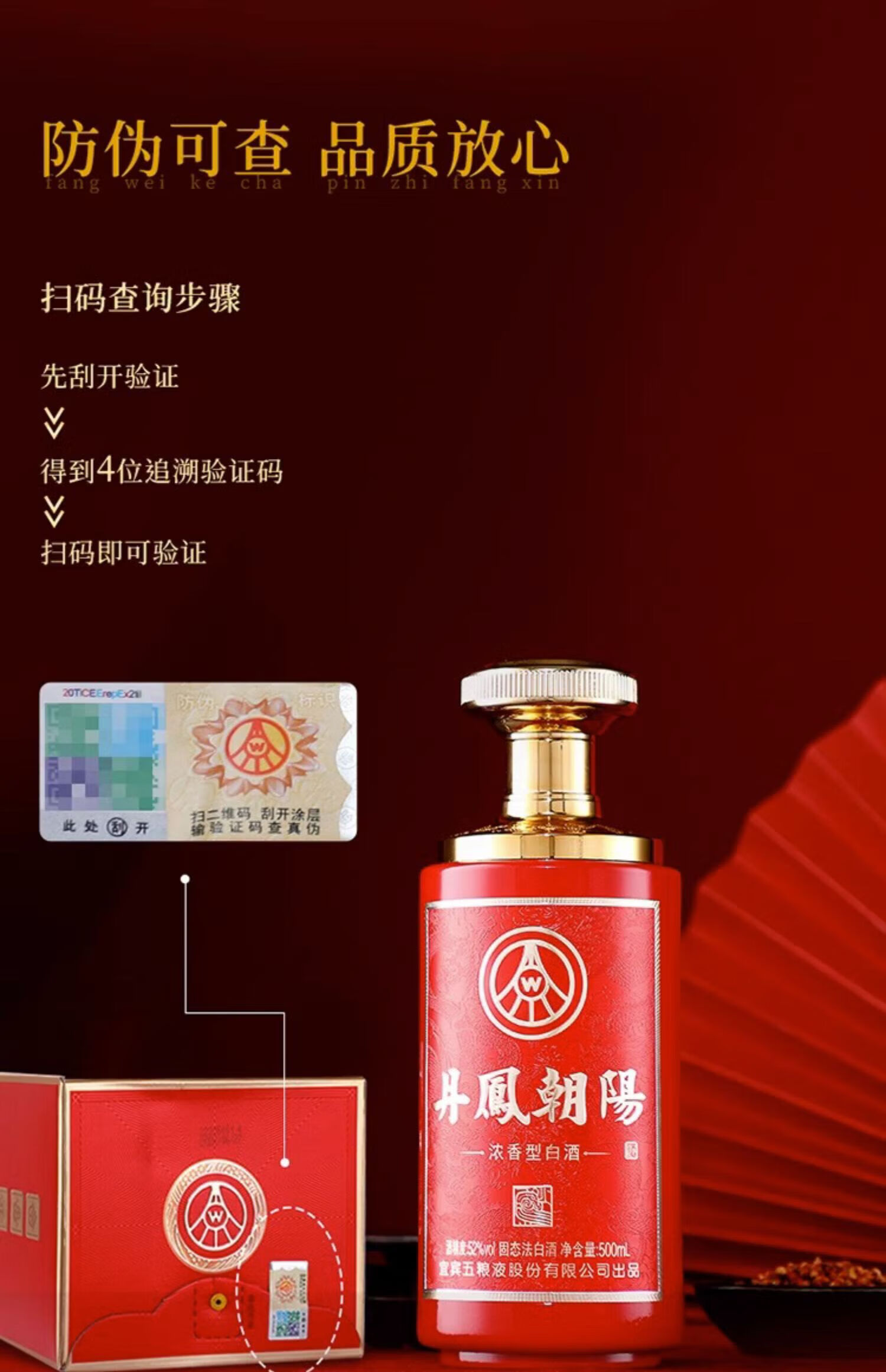 五粮液股份出品52°丹凤朝阳凤来仪红 浓香型白酒500ml*6瓶