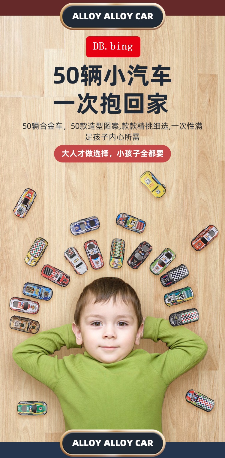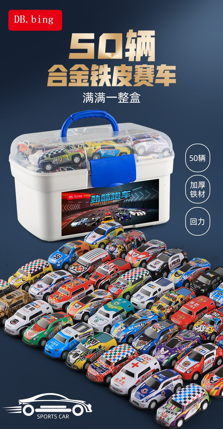db.bing回力小车套装50辆 回力款+滑行款组合 各种车造型 仿真跑车设计 无需电池 惯性回力 强劲动力【羊毛玩具2.0】