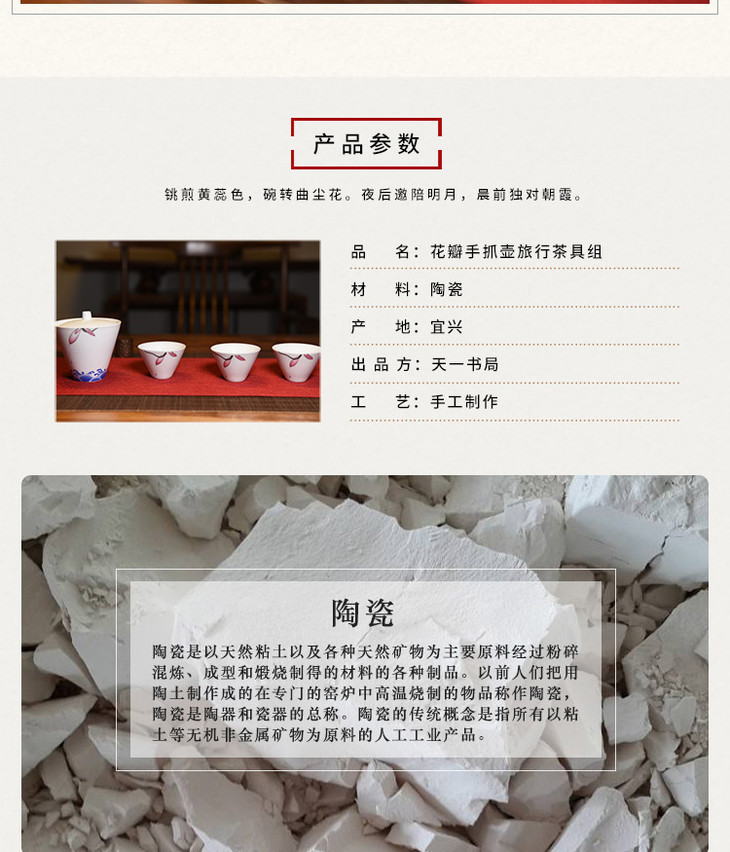 天一书局出品 花瓣手抓壶旅行礼盒套装 景德镇陶瓷茶杯茶具