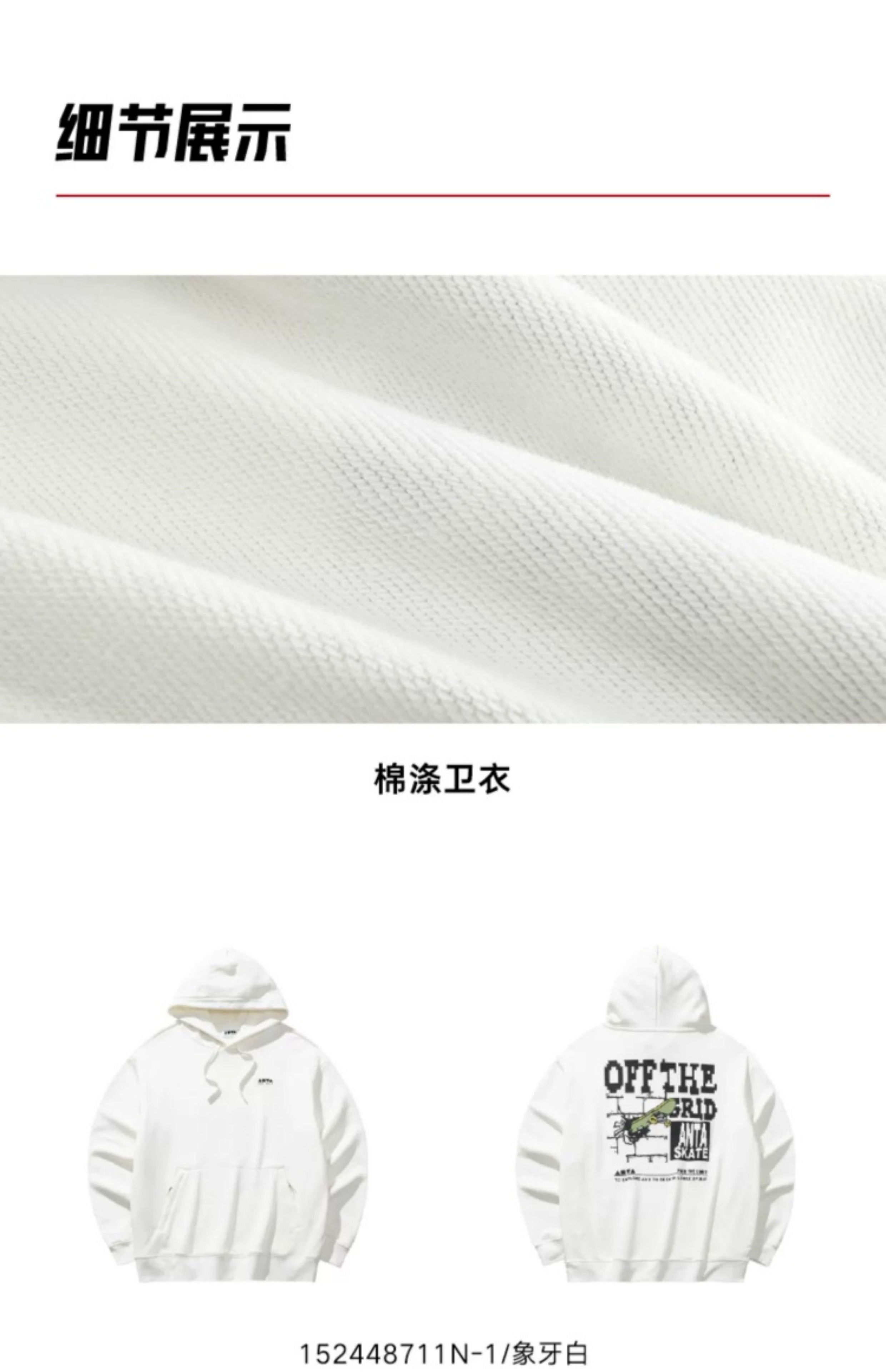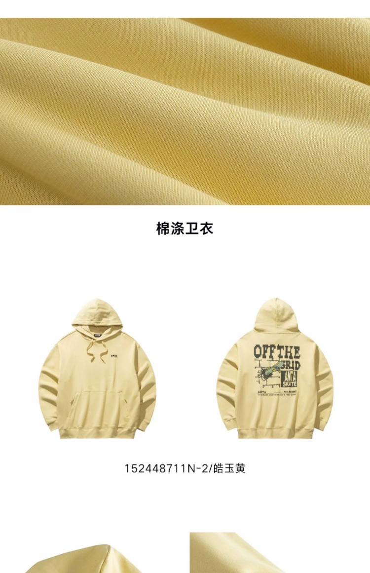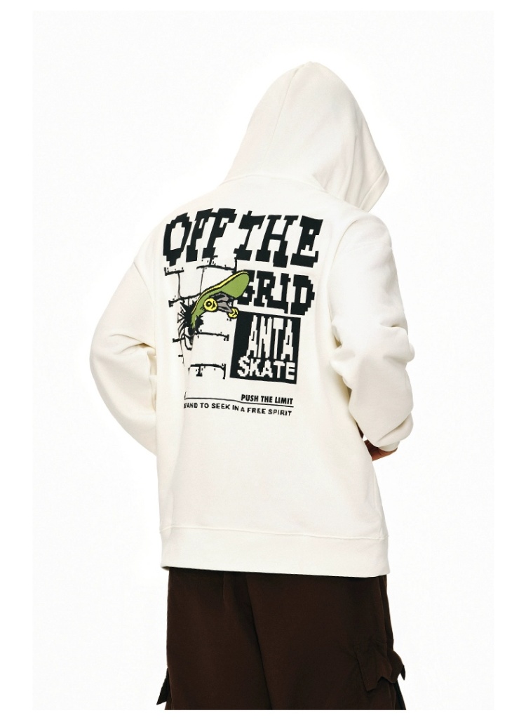 安踏美式国潮卫衣男印花休闲连帽套头运动上衣152448711N-1
