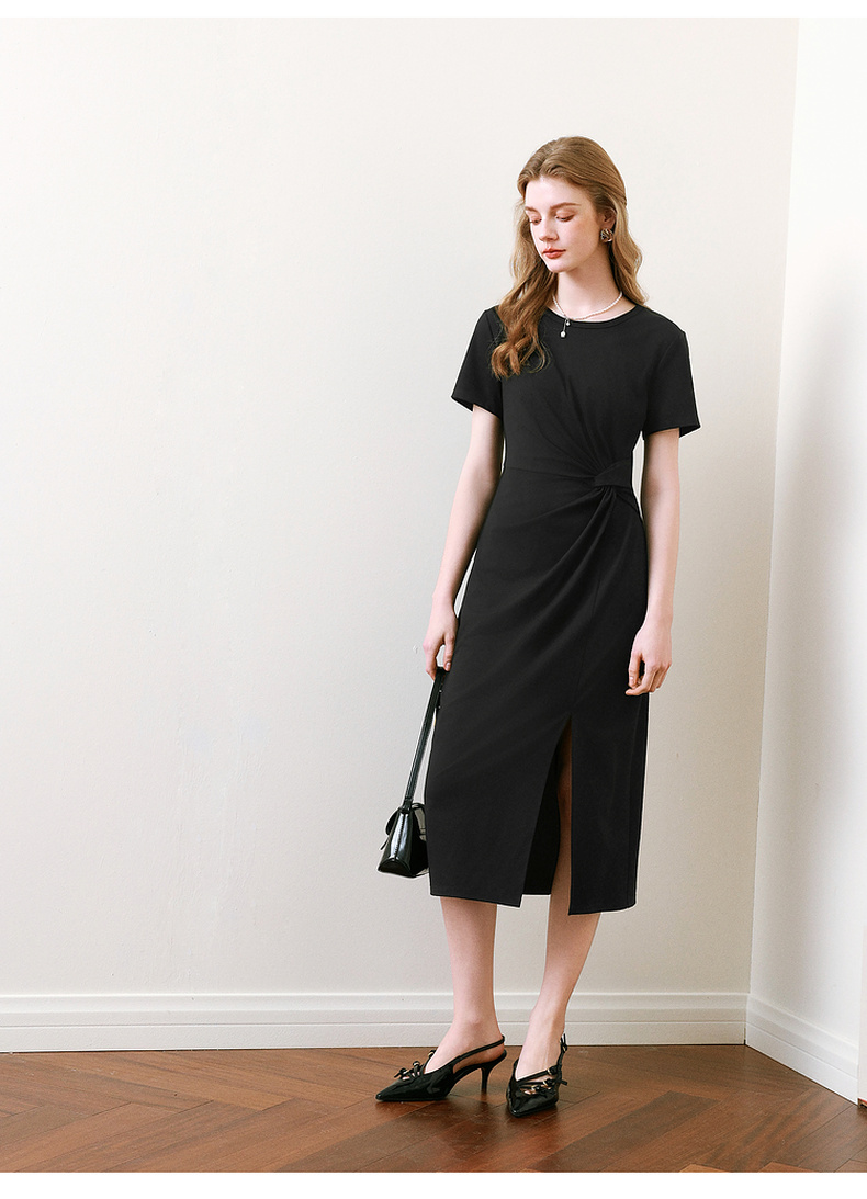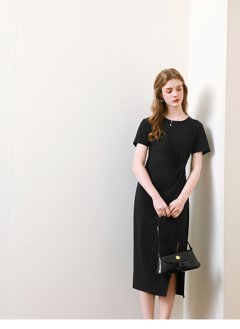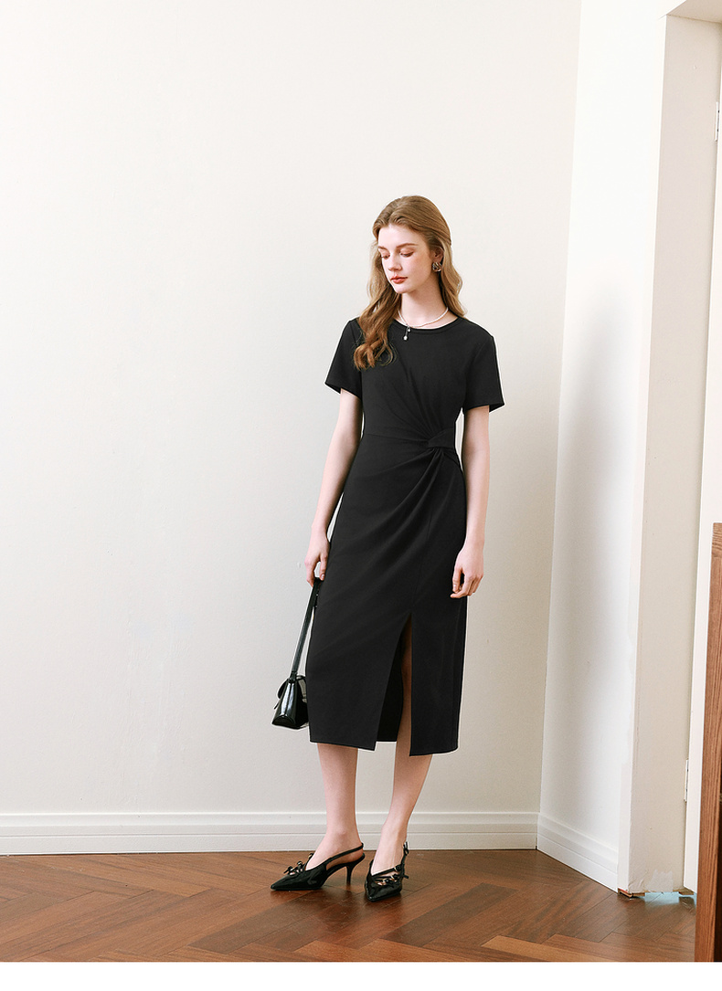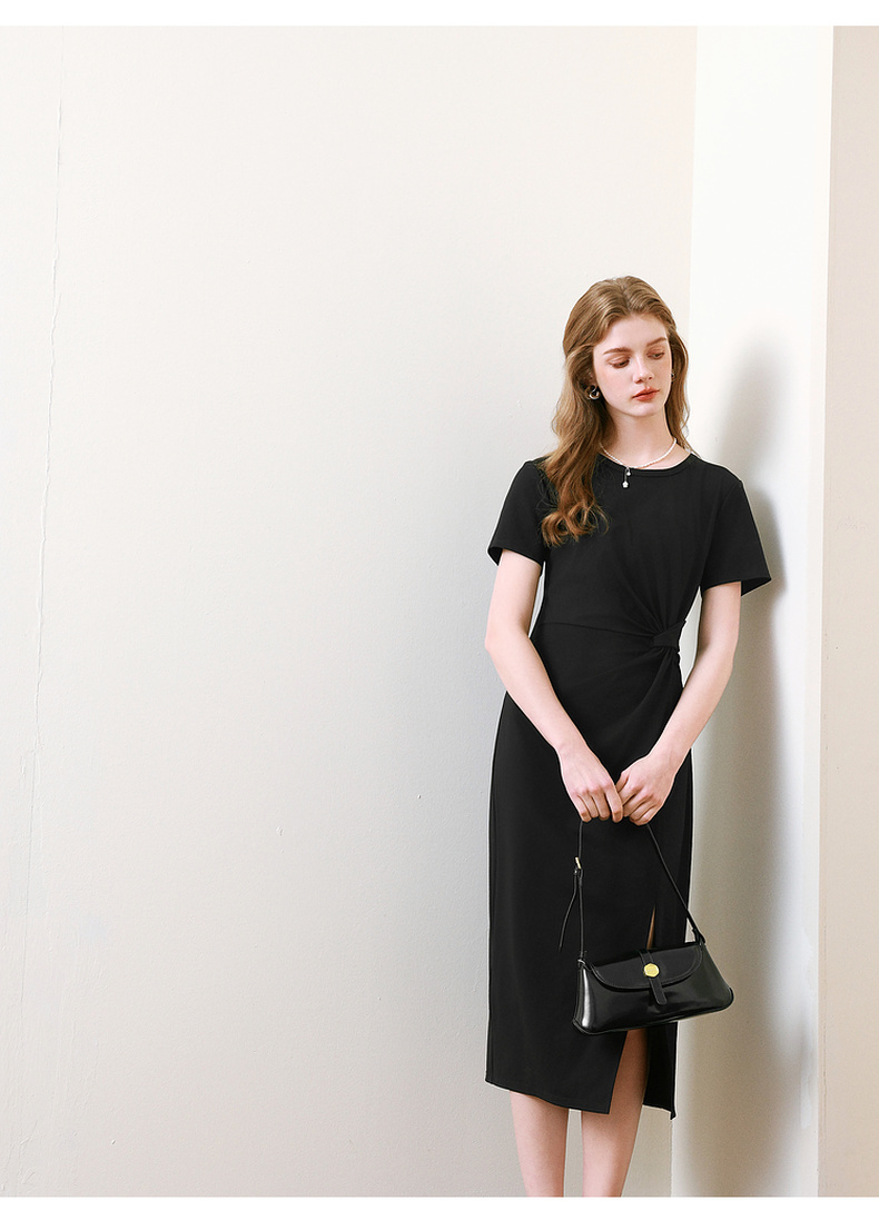 【商场同款】诗凡黎显瘦气质T恤裙2025夏新款黑色连衣裙3G5290211