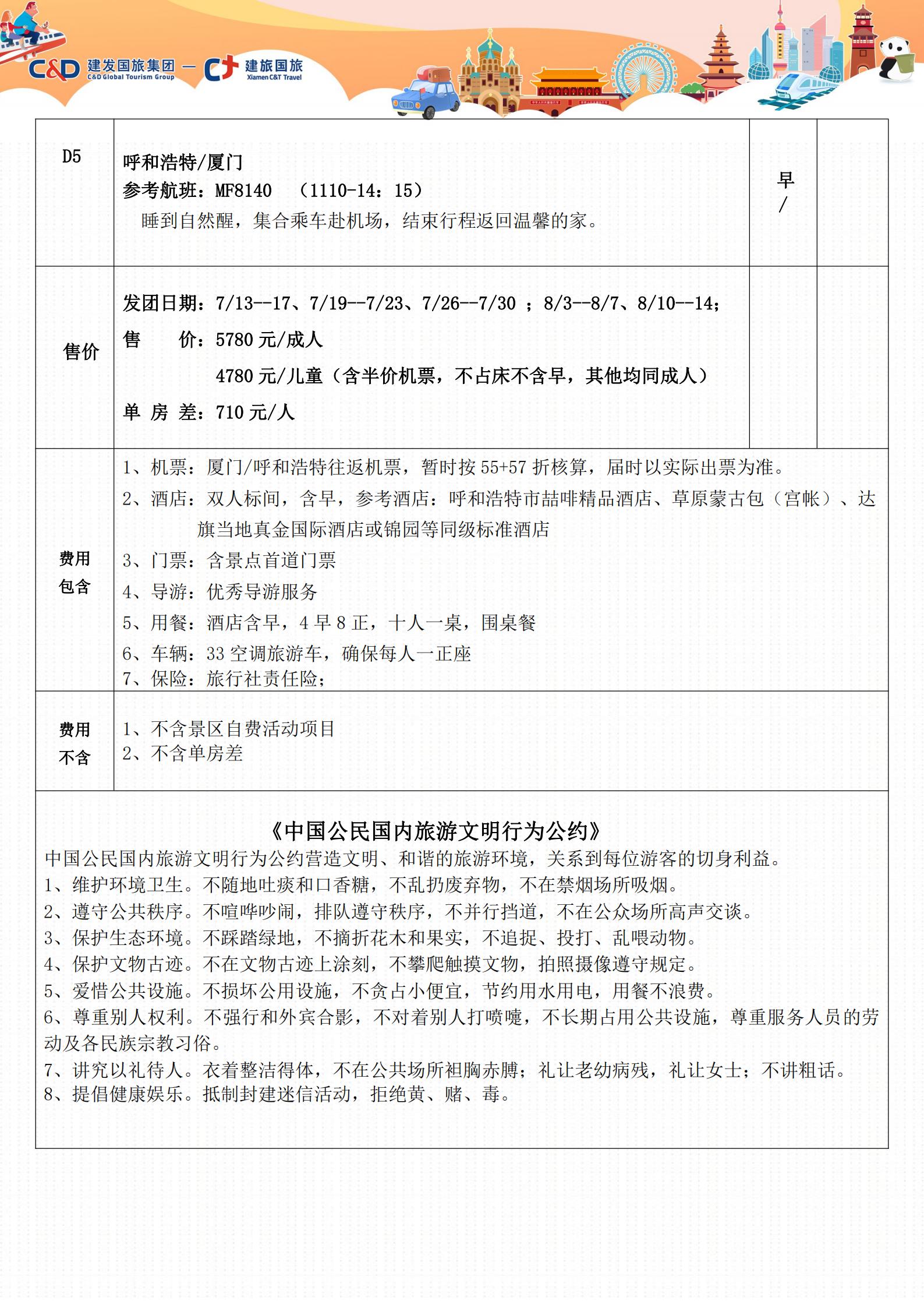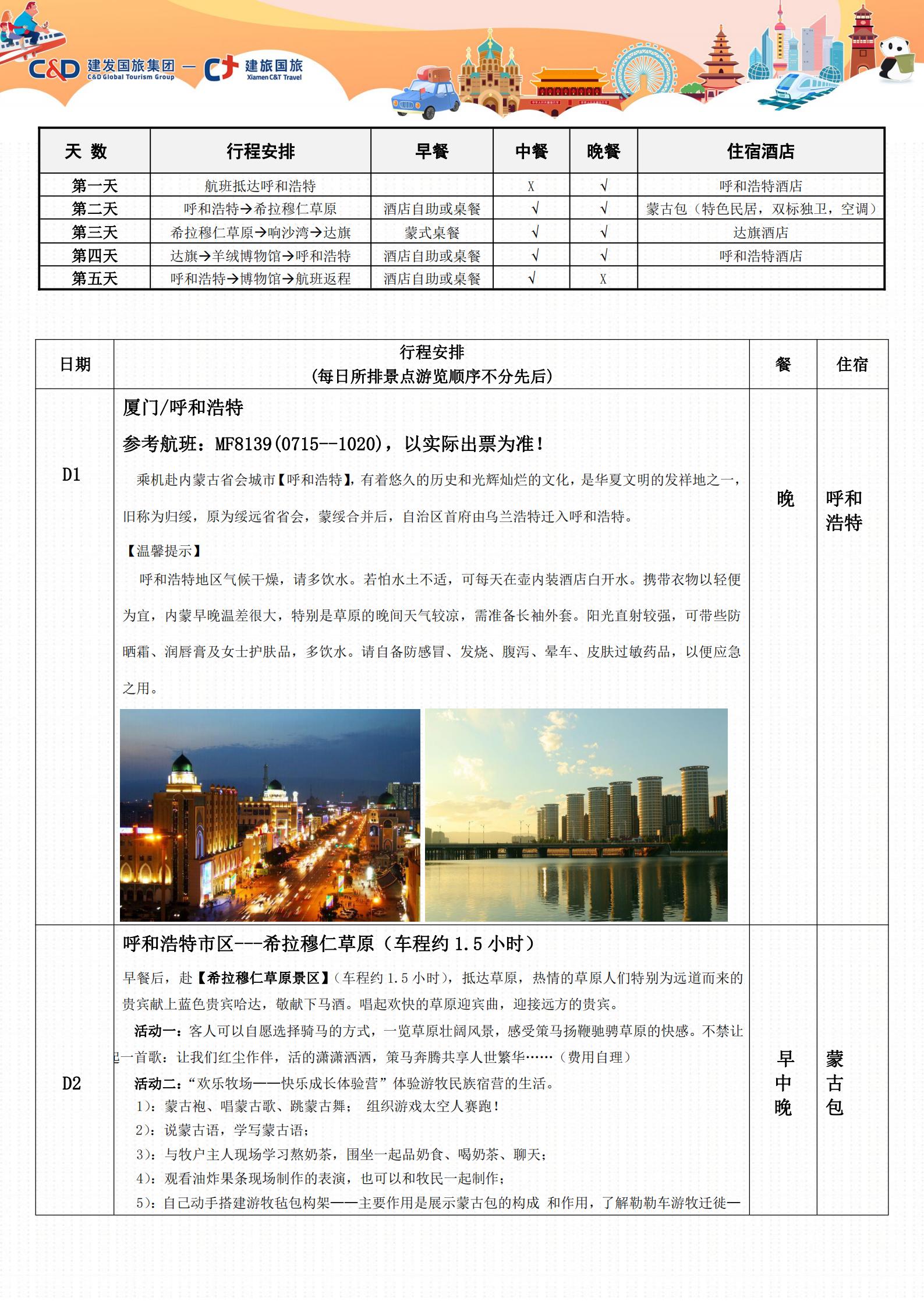 【暑期去哪儿】呼和浩特双飞5日