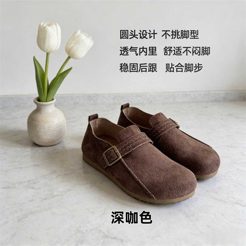【服饰/饰品】珍足康2026春季新款软底全包勃肯鞋女一脚蹬百搭懒人鞋/豆豆鞋TB11
