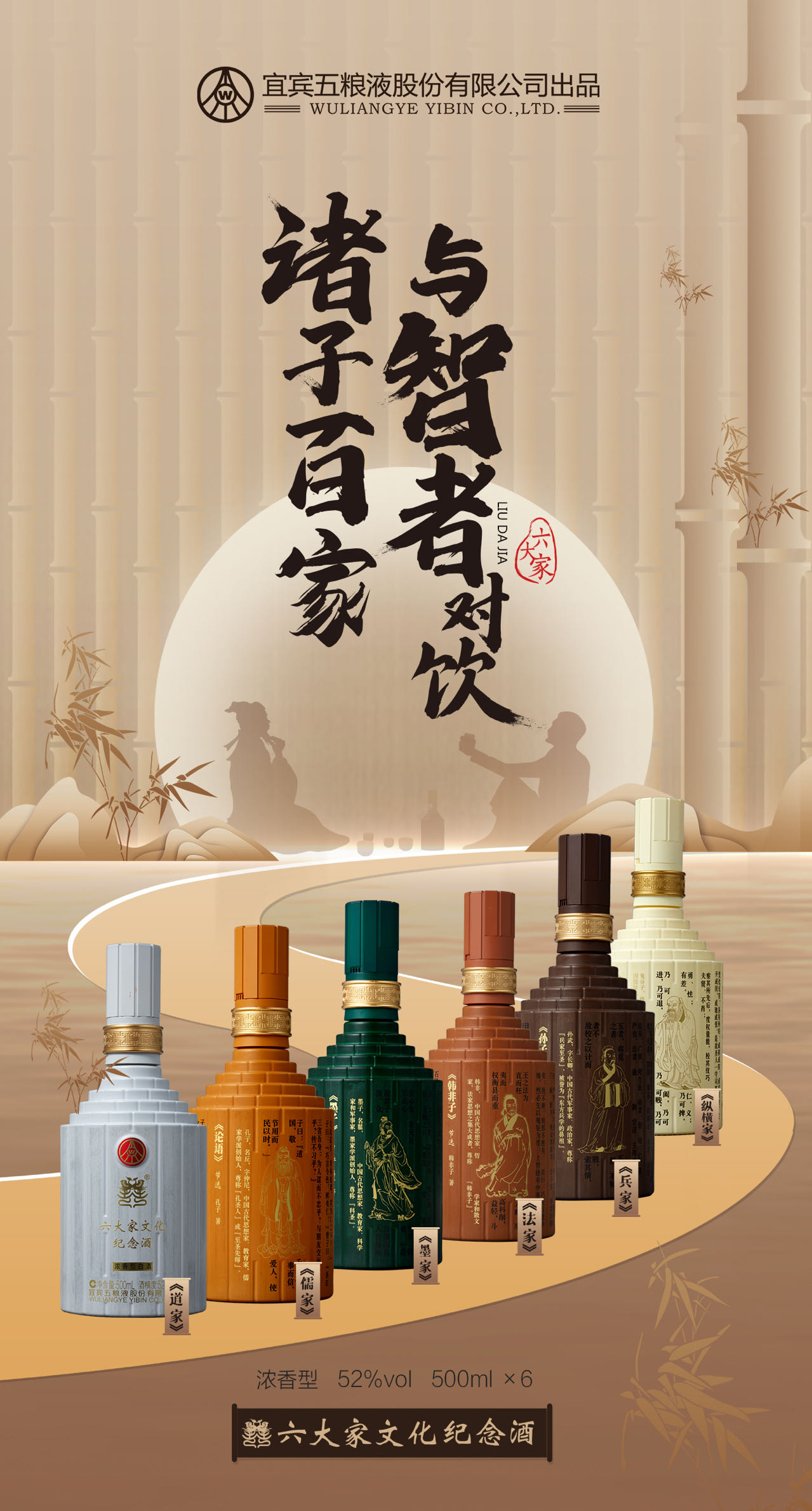 五粮液 囍·六大家文化纪念酒 浓香型白酒 500ml*6 礼盒装