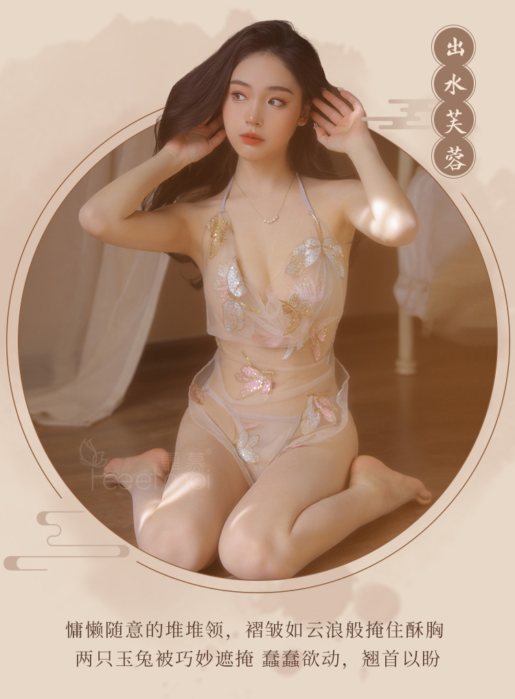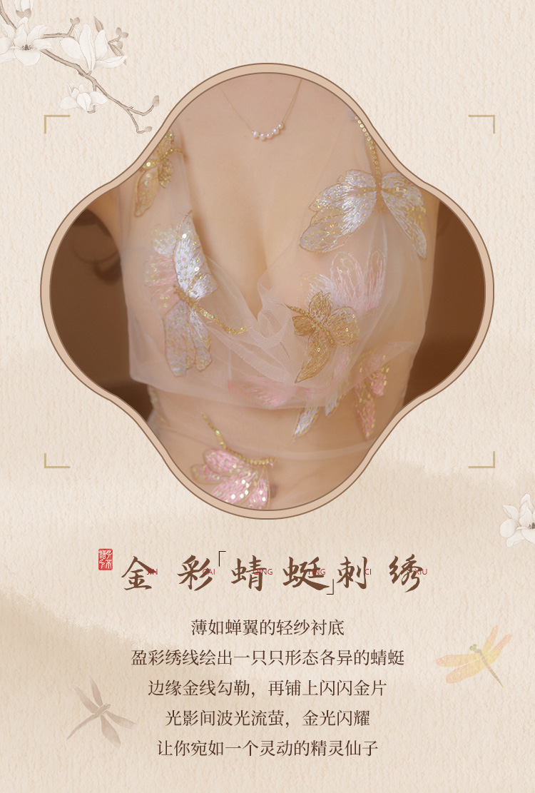 【蜻蜓点水】情趣内衣 金彩刺绣 镂空 透纱 旗袍 背心 夏衣 7978 包邮