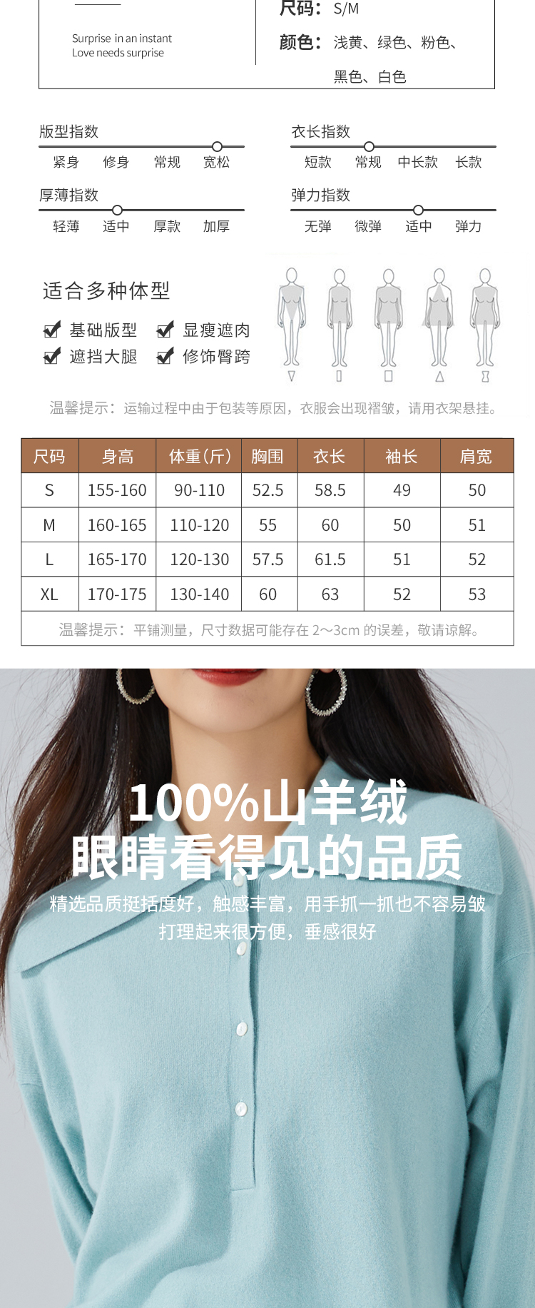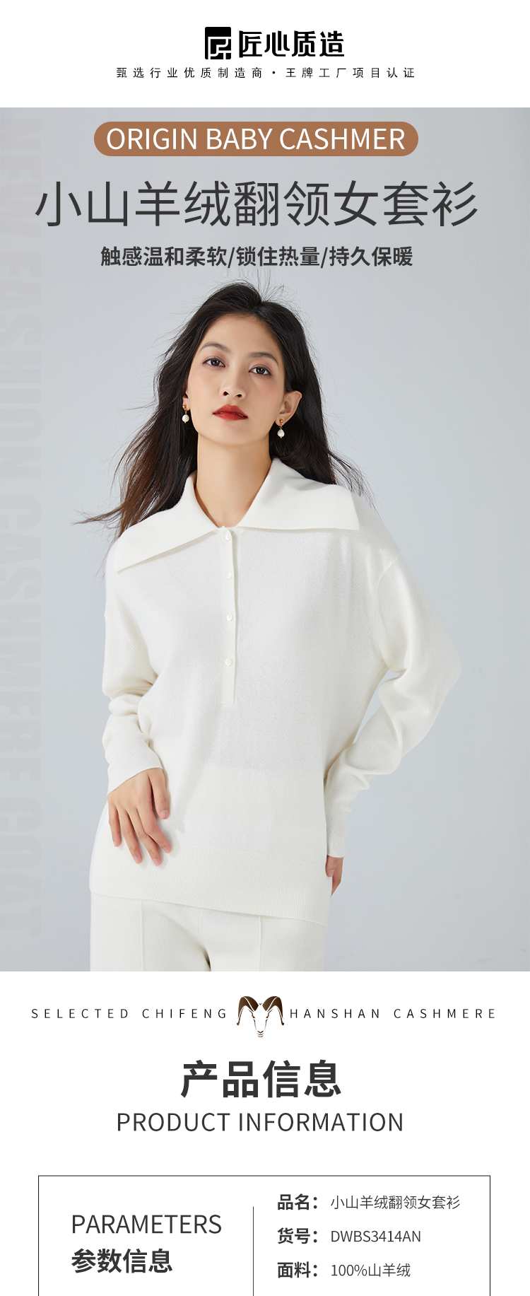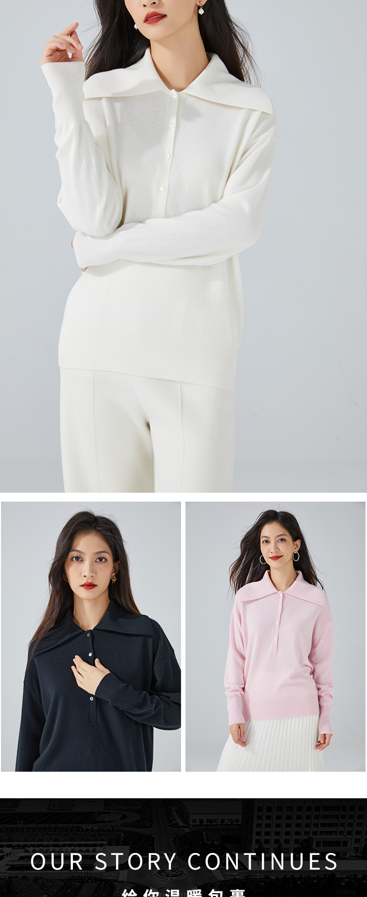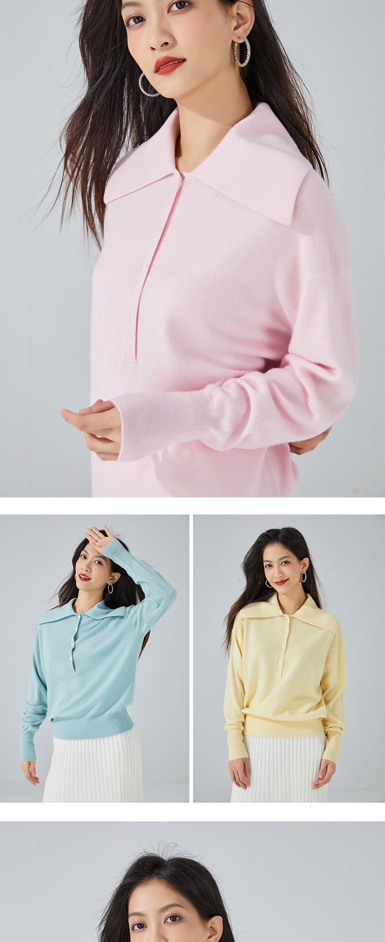 东黎 • 小山羊绒 女士秋冬大翻领简约纯色休闲羊绒衫 3414