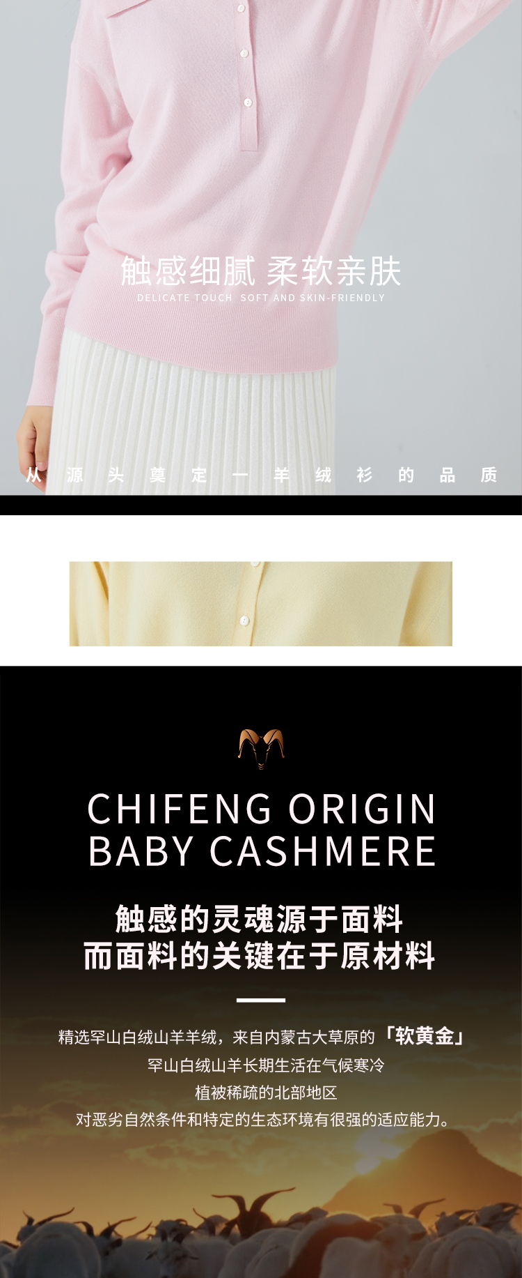 东黎羊绒是赤峰东荣集团自主品牌,自有牧场/羊绒制品全产业链优势,实现了羊绒从“牧场”到“商场”的华丽转变。