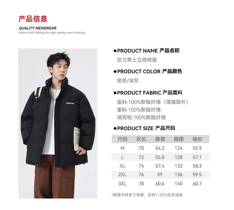 回力男装棉衣男冬季外套2025新款男士棉服加厚防寒保暖羽绒棉袄