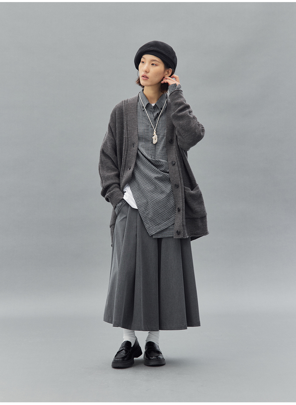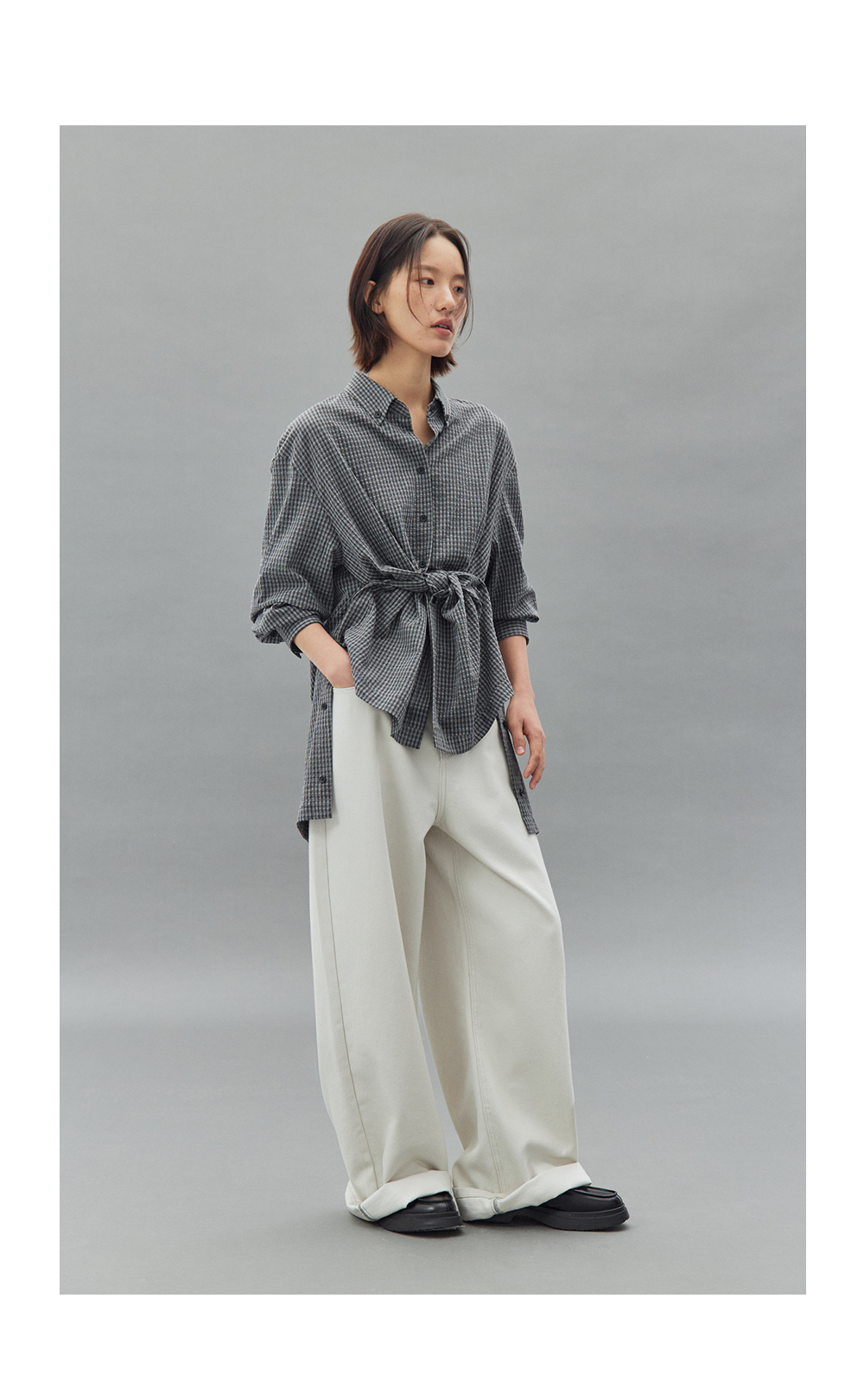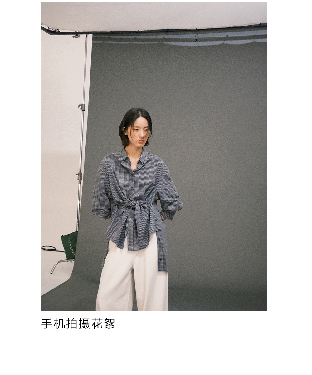 步履不停/4C11203C/复古黑灰色格纹休闲长款衬衫