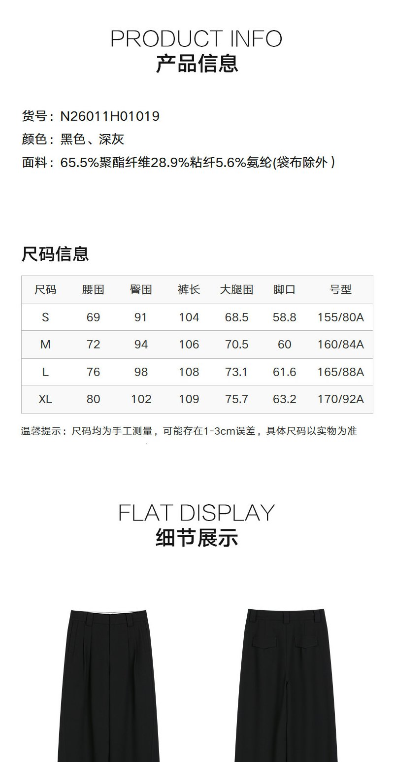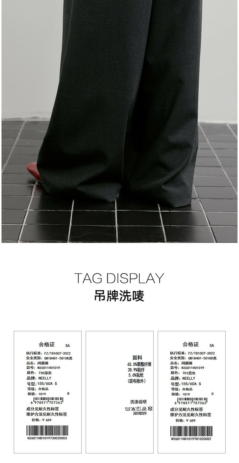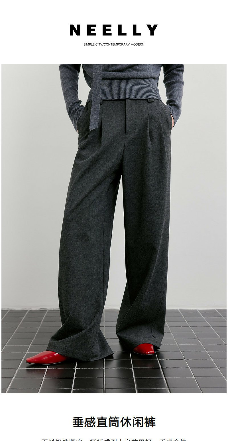 NEELLY纳俪商场同款春季新款时尚垂感休闲直筒裤女舒适百搭长裤N26011H01019