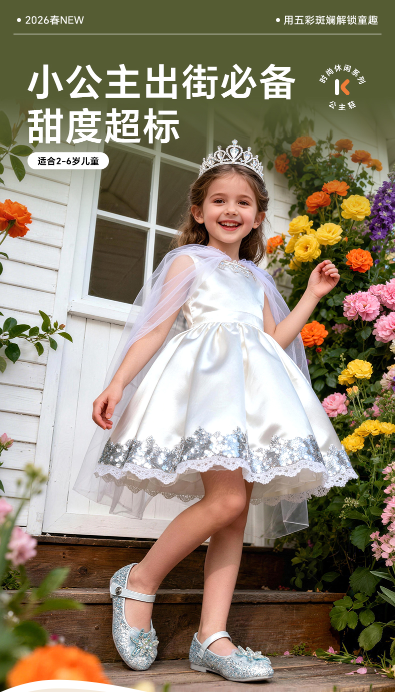 卡特兔童鞋小皮鞋女童公主鞋2026年春季新品搭配礼服水晶鞋单鞋