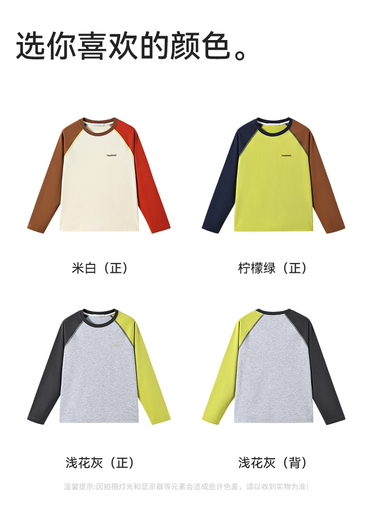 【英氏】【索罗娜】【110-175】男童春秋款拼色休闲长袖T恤