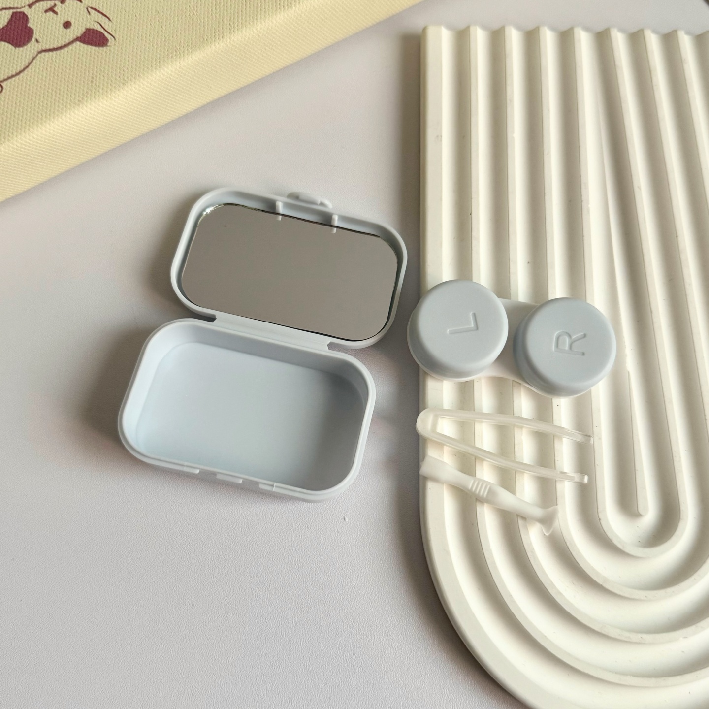 伴侣盒套装组成:双联盒、镊子 ,配戴棒、镜子。