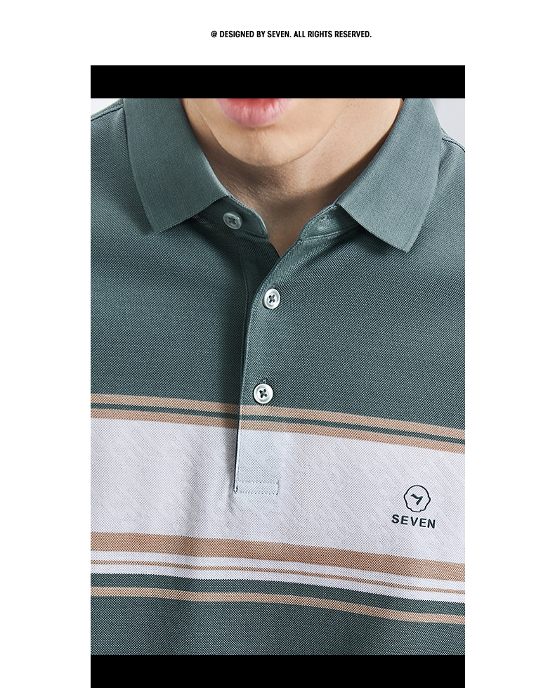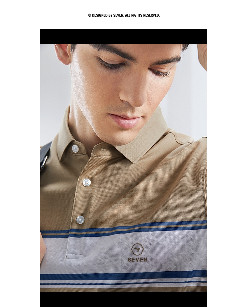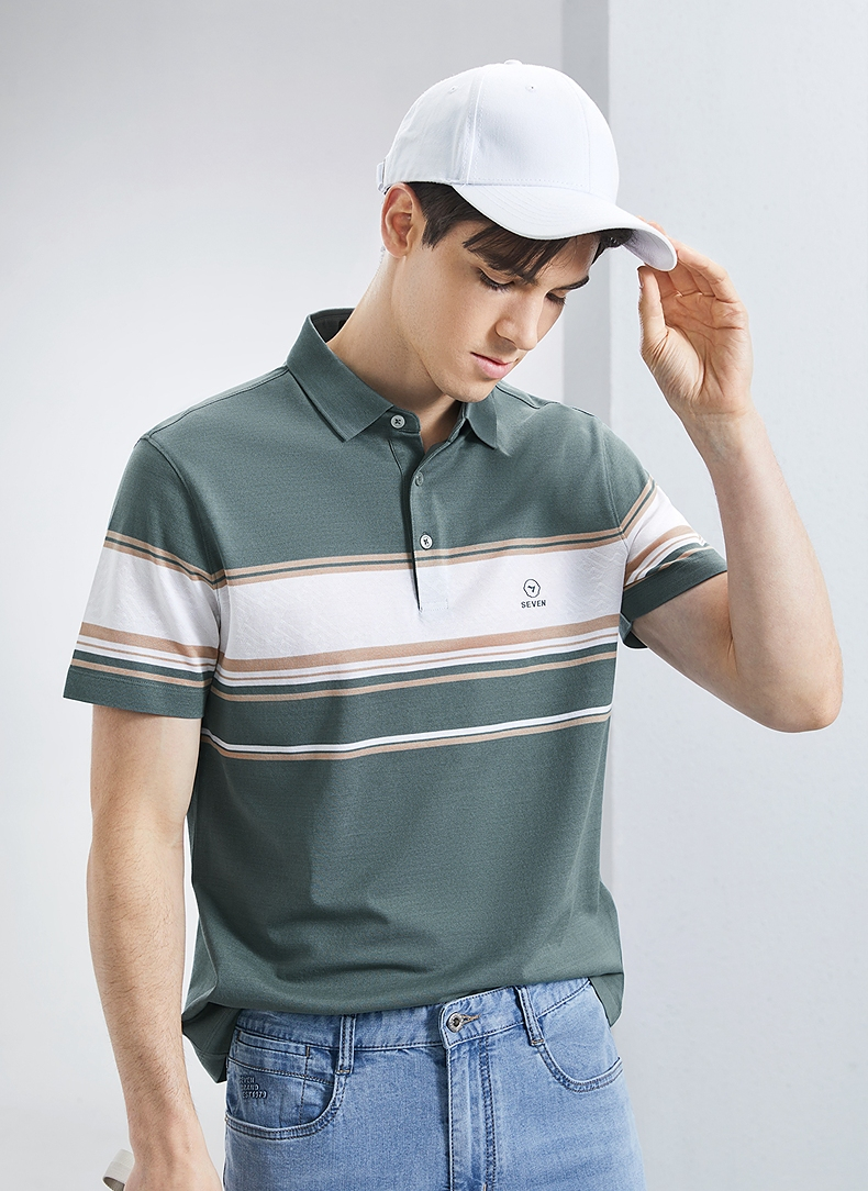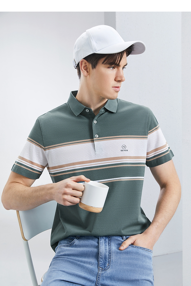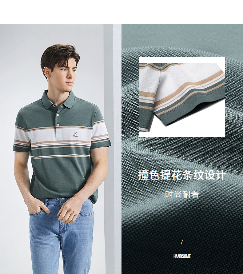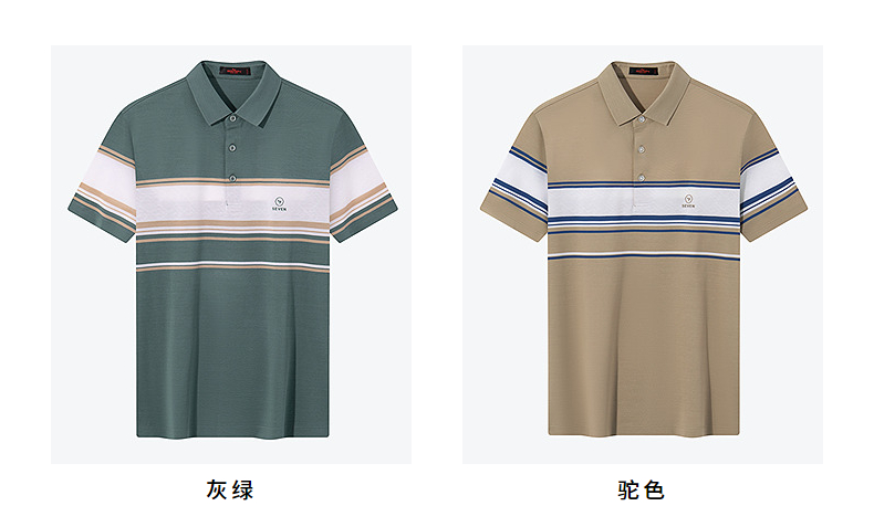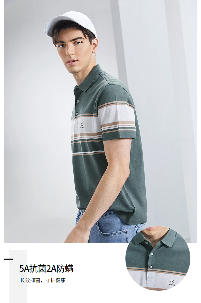 【5A抗菌2A防螨】柒牌丝光棉短袖polo衫男士夏季新款撞色条纹上衣 126T71230