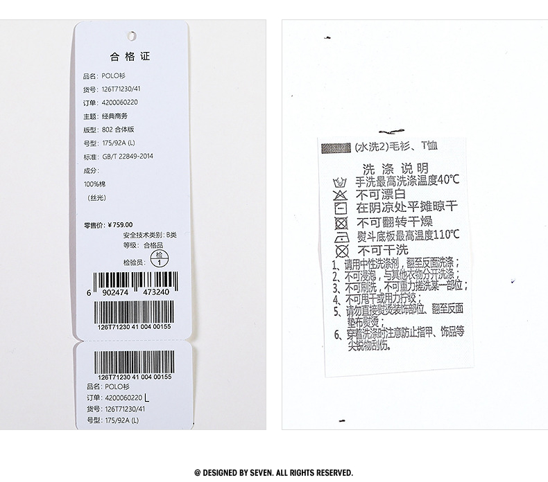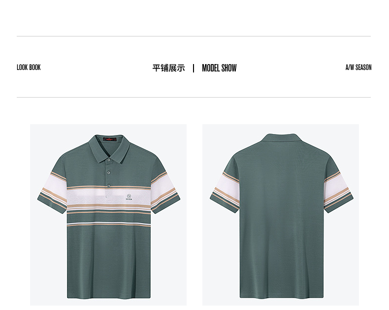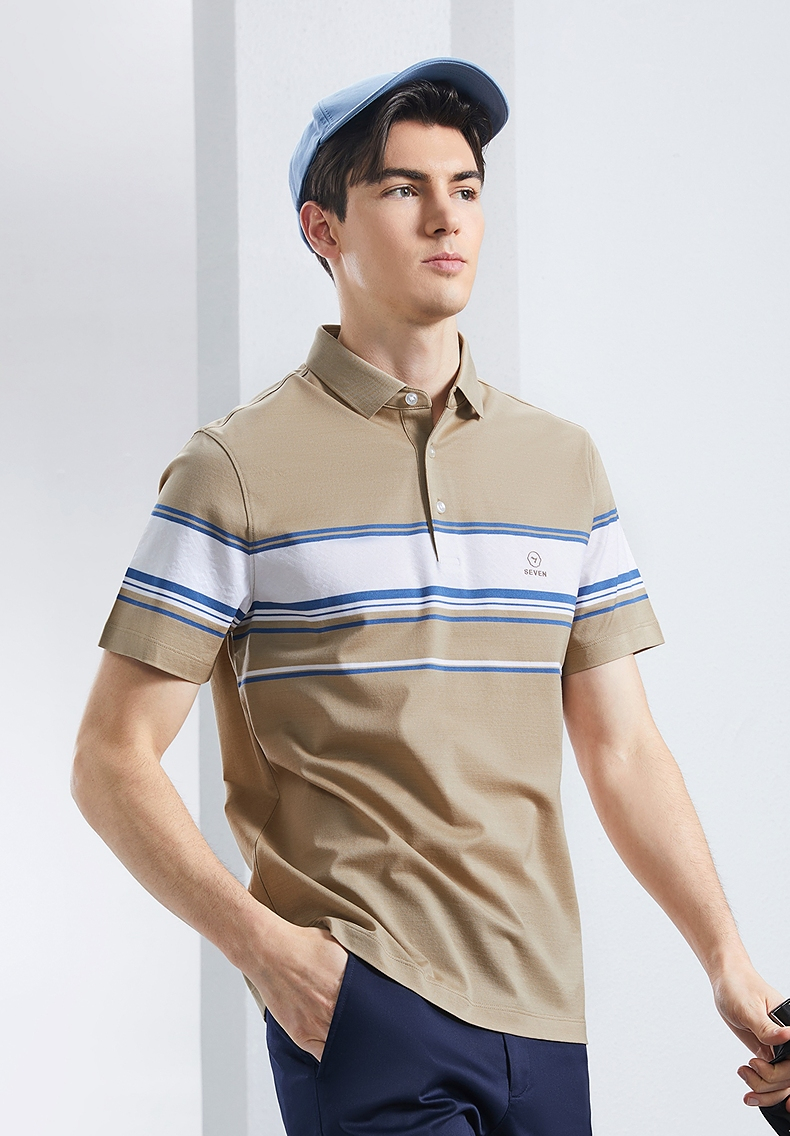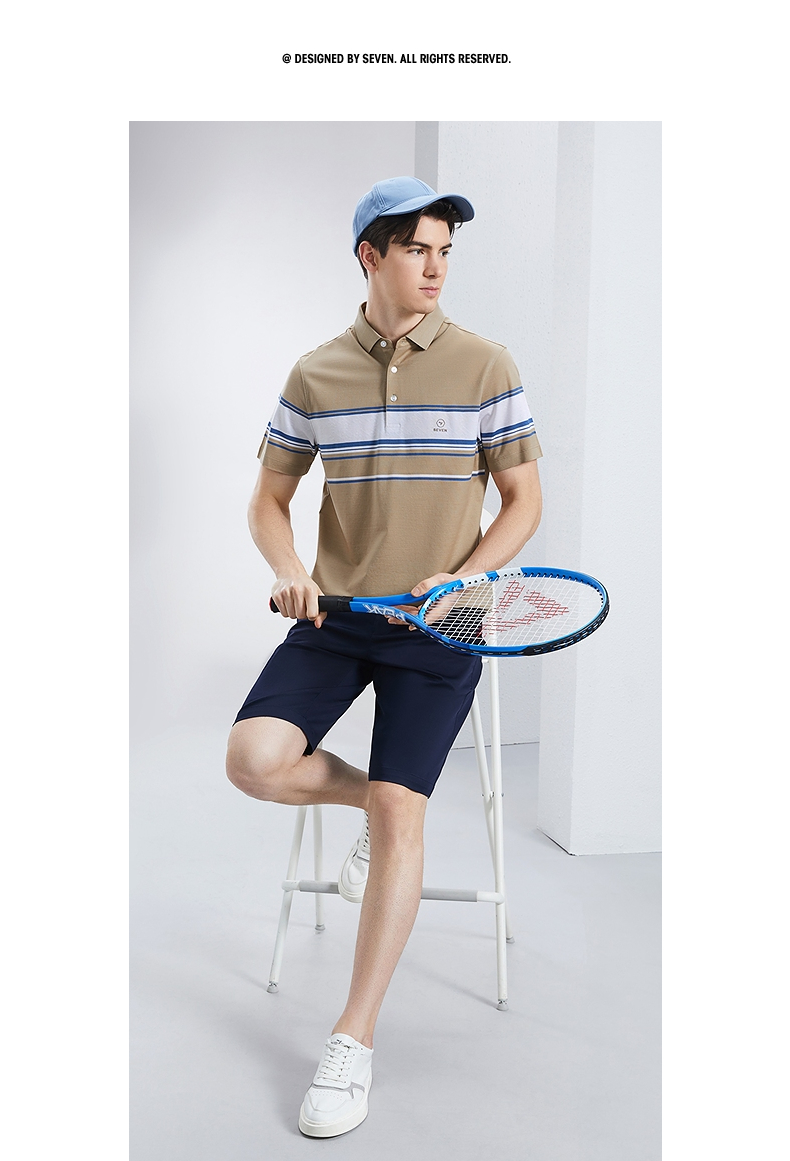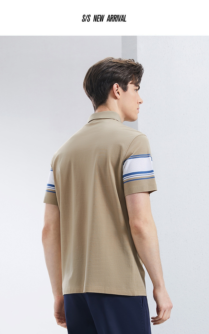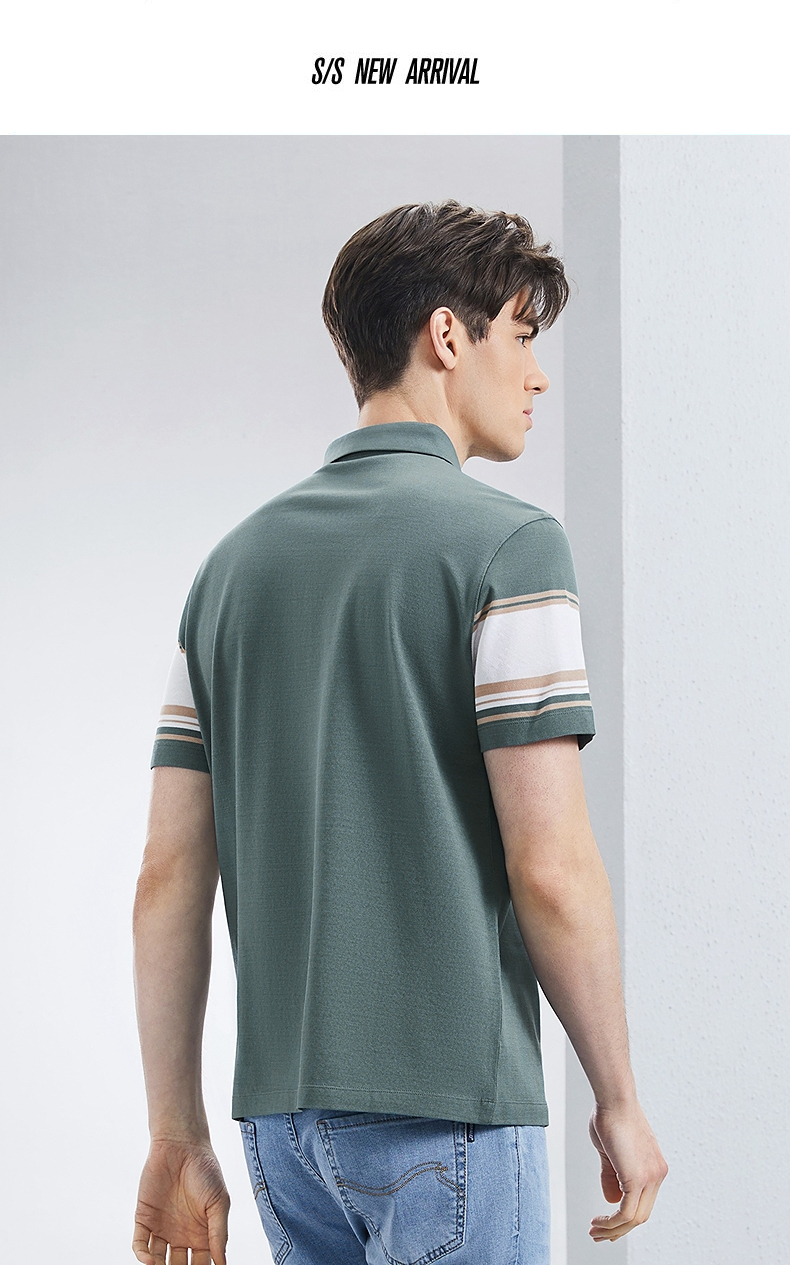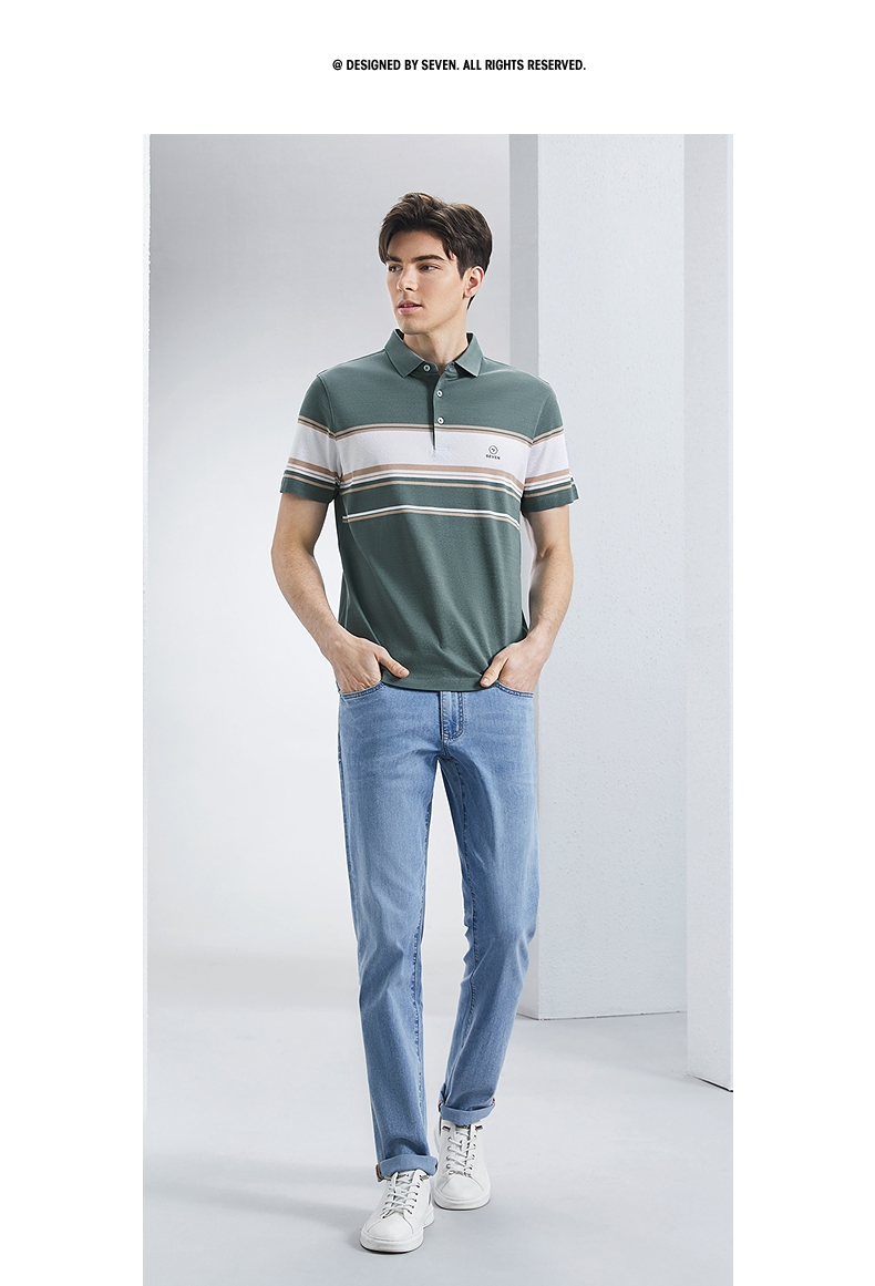 【5A抗菌2A防螨】柒牌丝光棉短袖polo衫男士夏季新款撞色条纹上衣 126T71230
