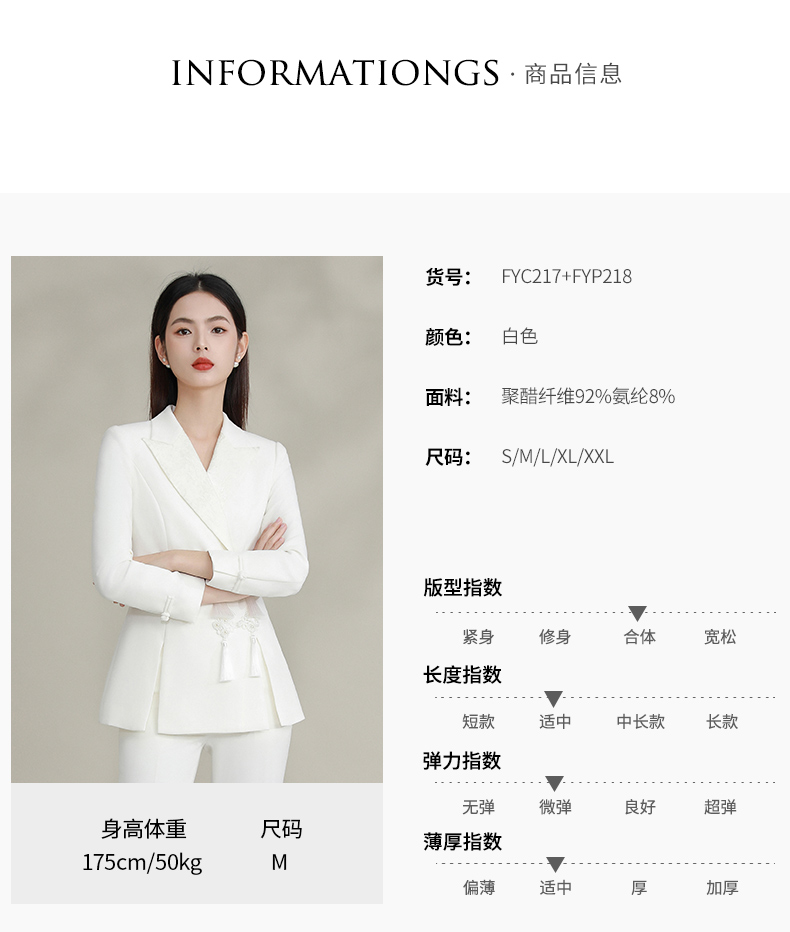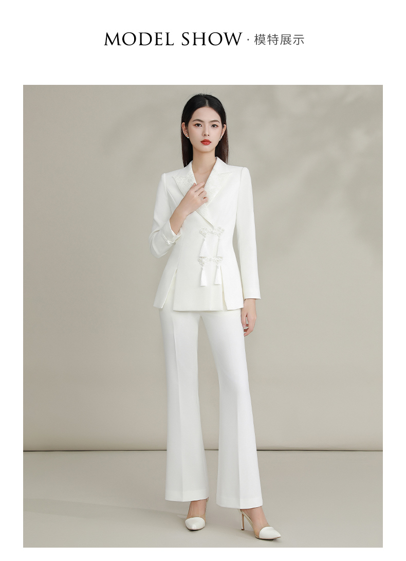 IWY/新款国风设计师款米白色西服套装主持人上镜装高端国风西服两件套FYC217+FYP218