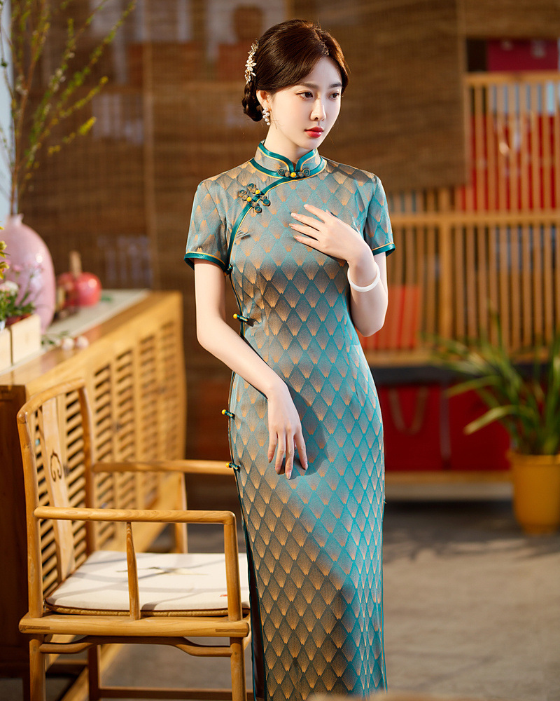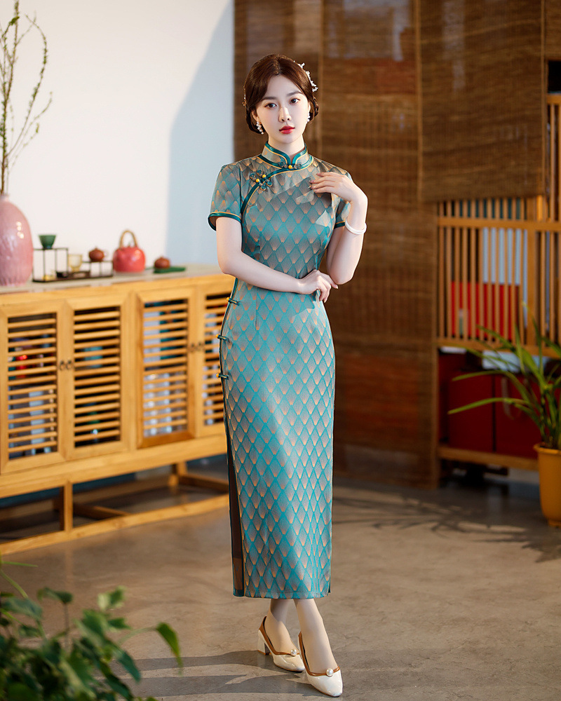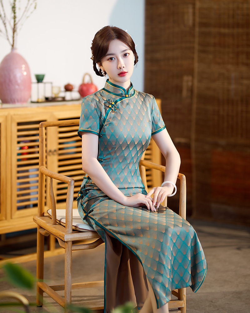 2025新款新中式年轻款少女小清新夏季日常通勤复古国风旗袍GSJ9389