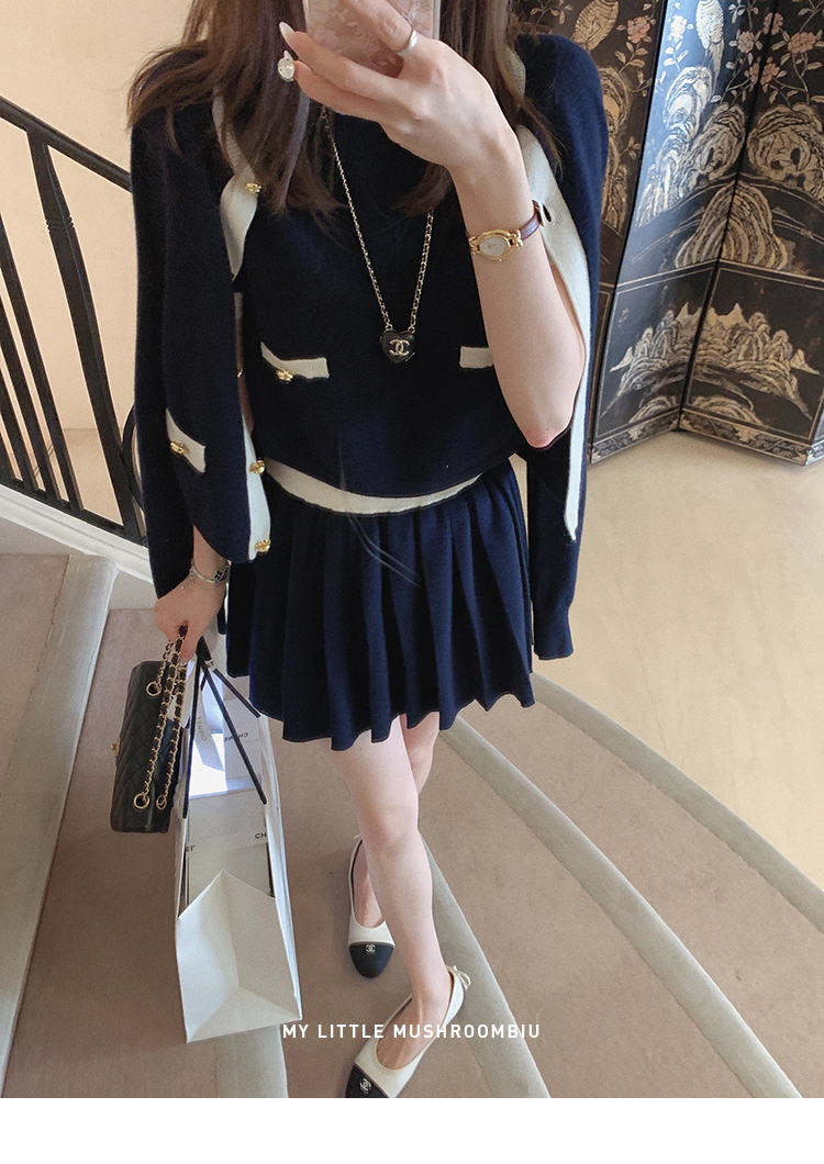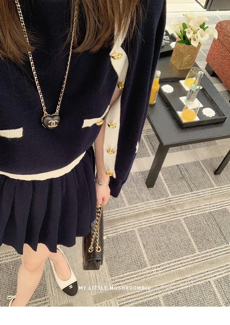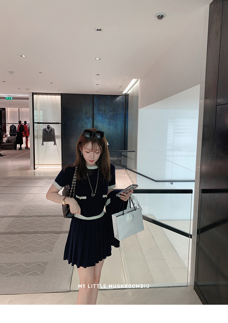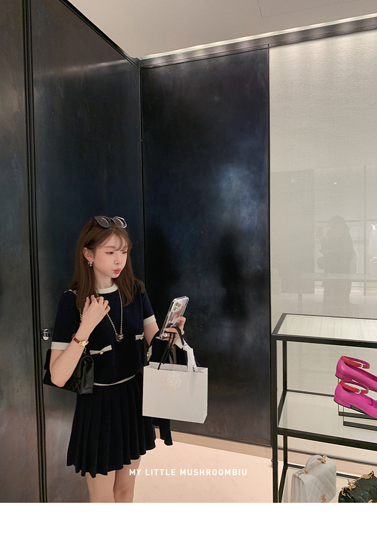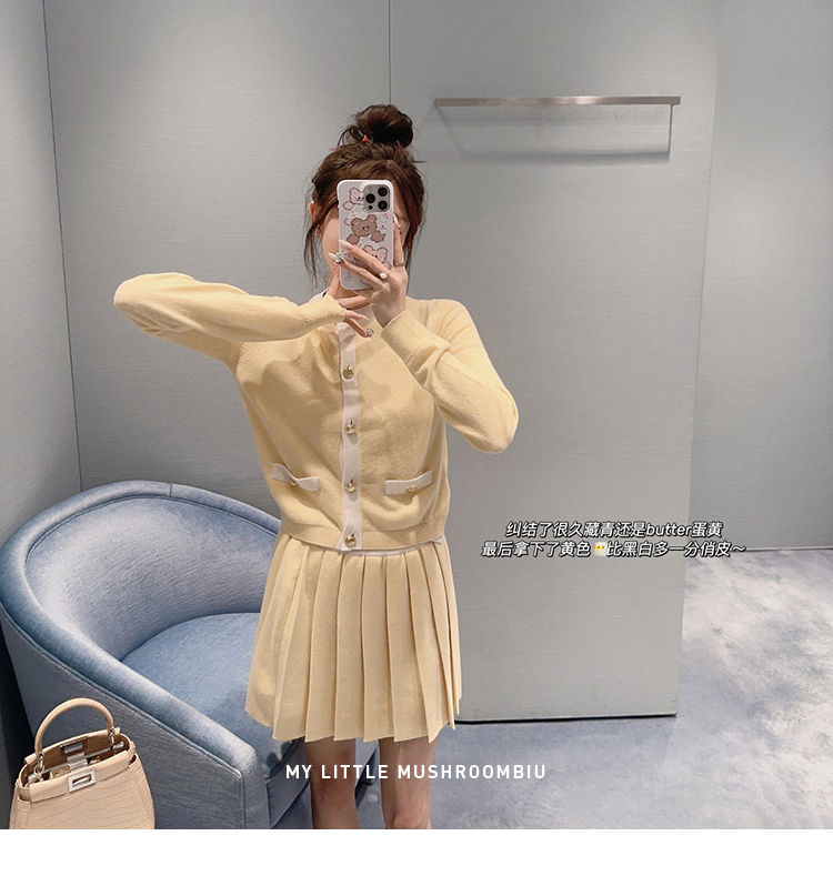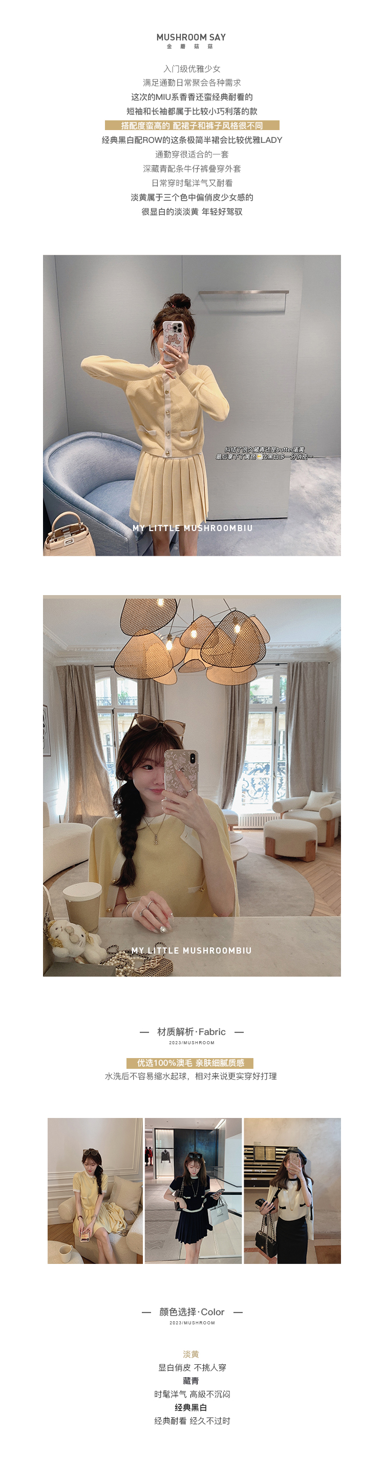 开衫短袖百褶裙:100%羊毛极简半裙面料名称:弹力双面哔叽 74%聚酯纤维 17%粘纤 9%氨纶