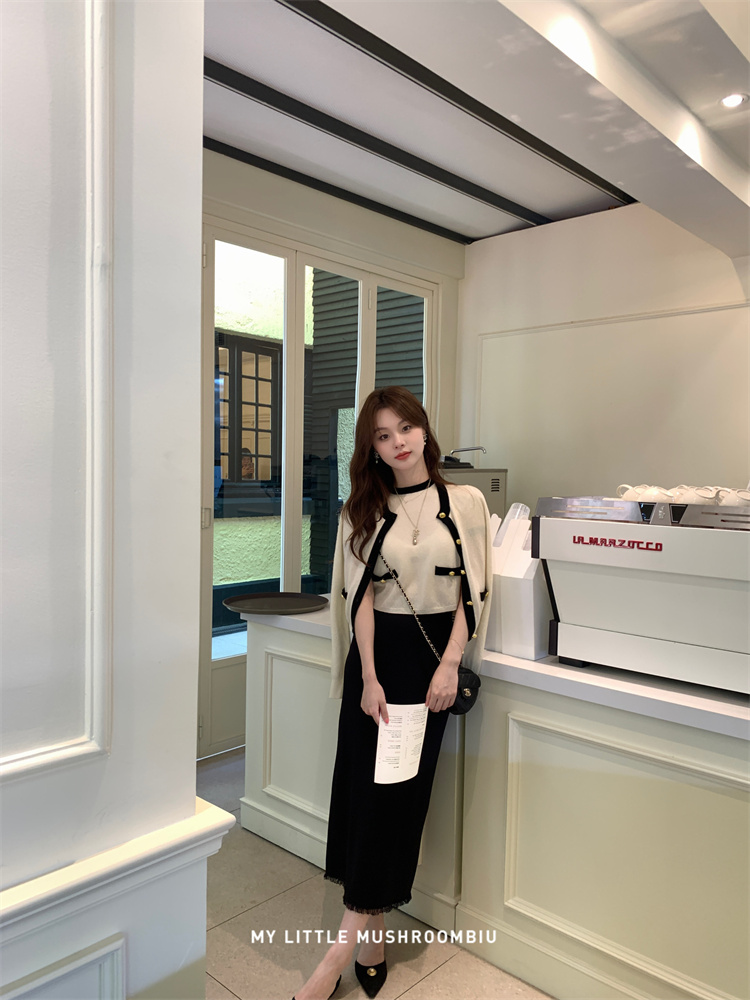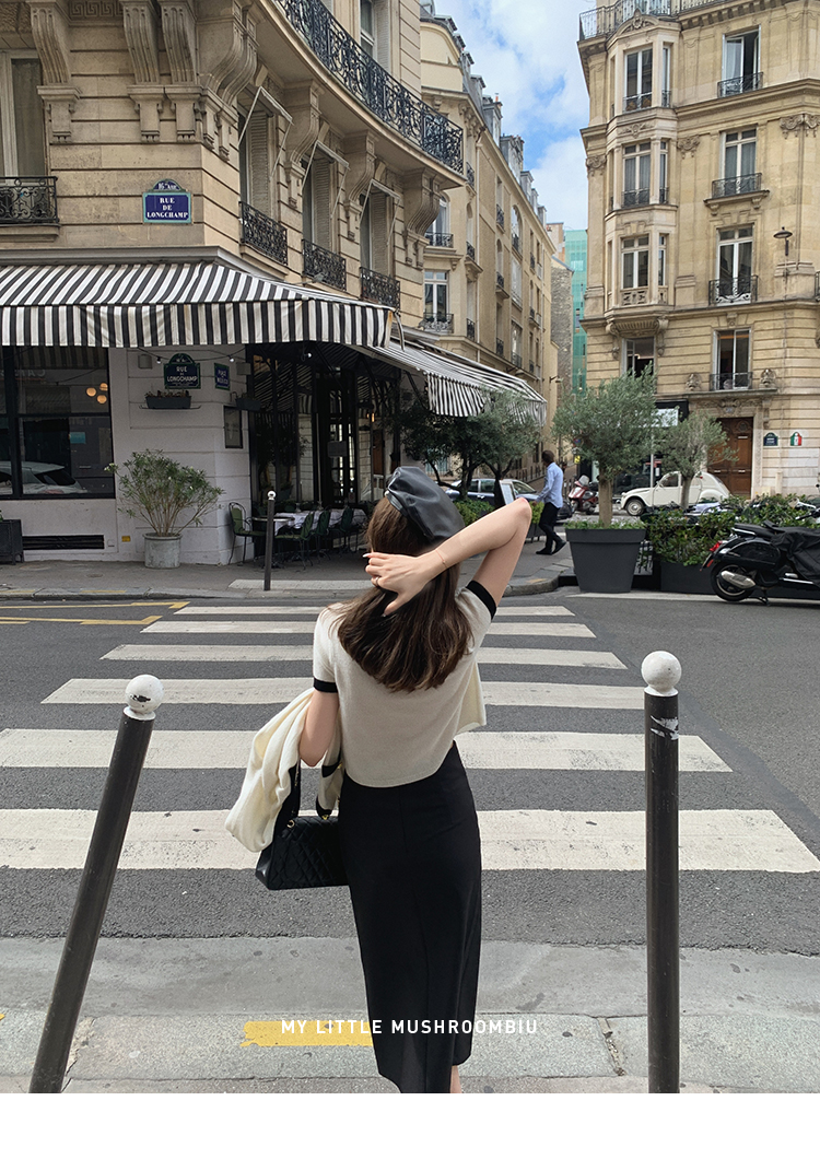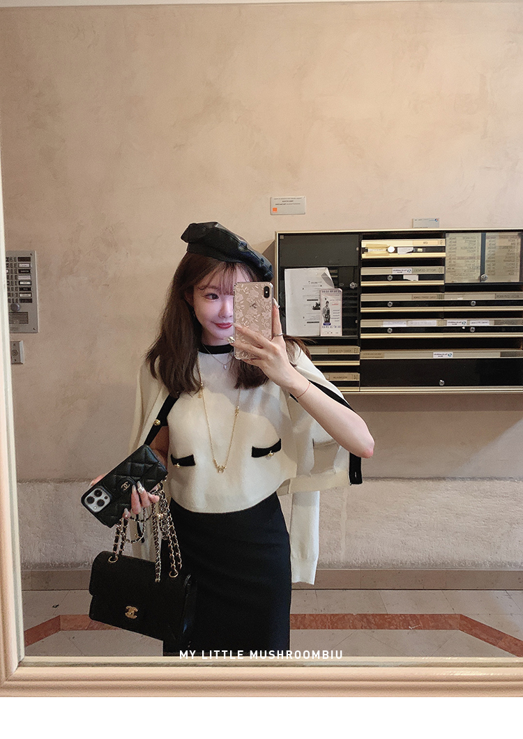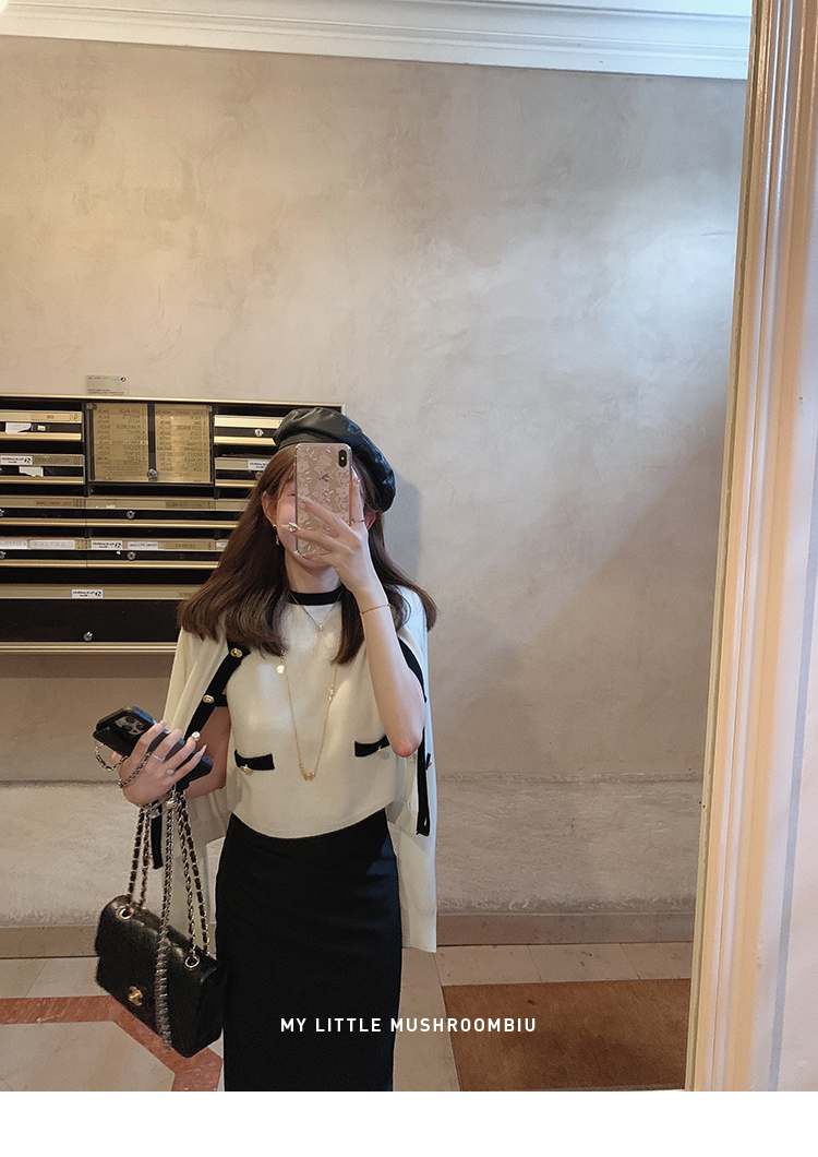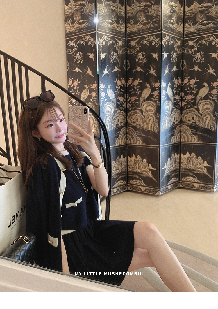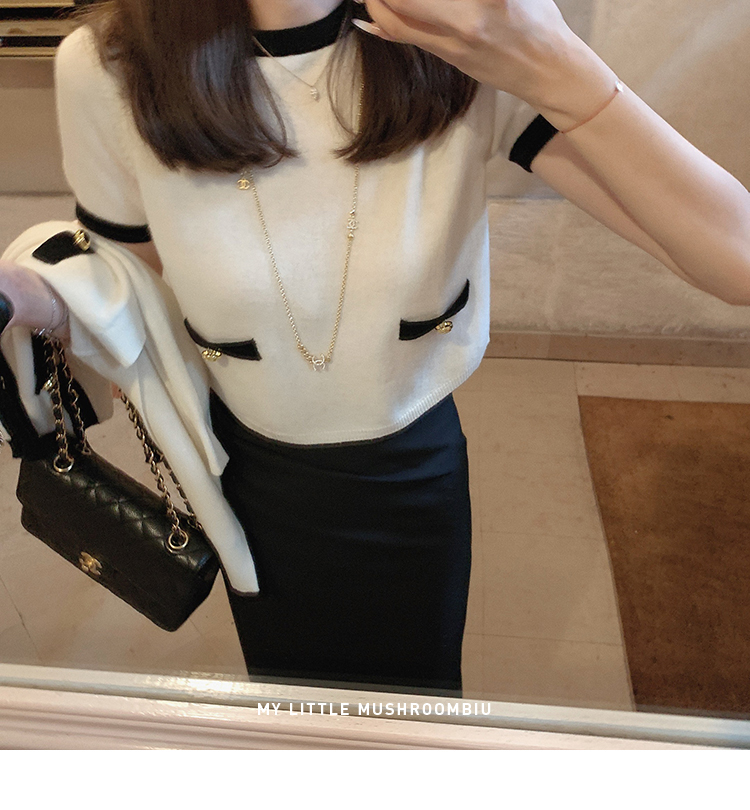 开衫短袖百褶裙:100%羊毛极简半裙面料名称:弹力双面哔叽 74%聚酯纤维 17%粘纤 9%氨纶