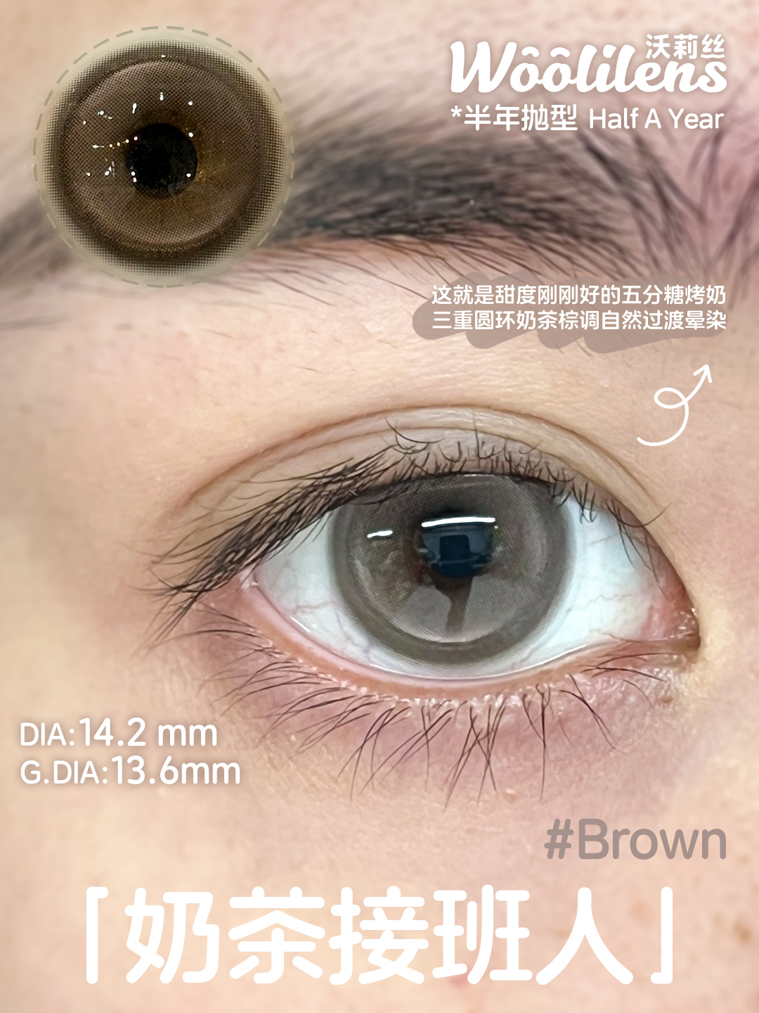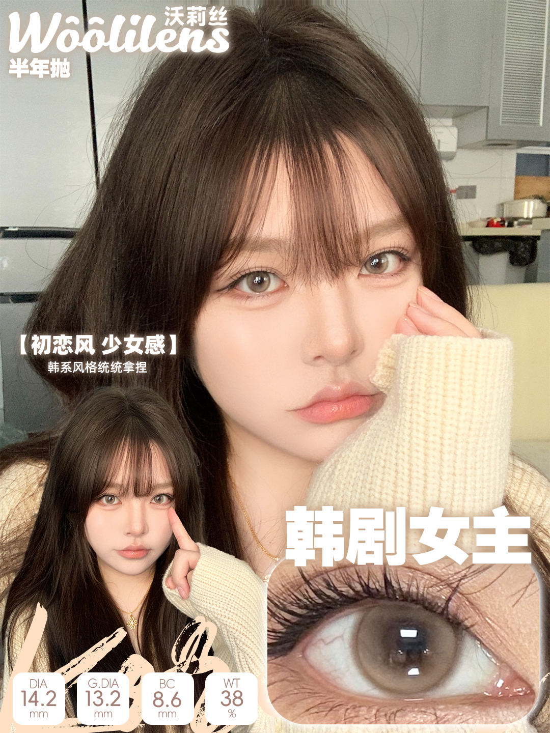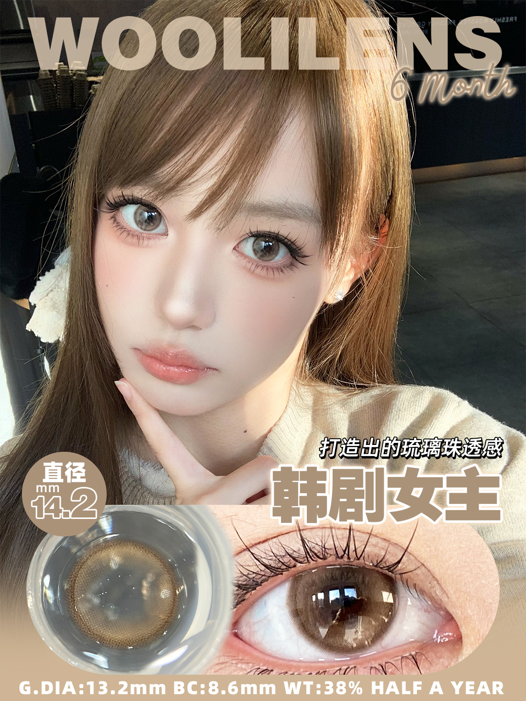 woolilens半年抛 韩剧女主/奶茶接班人 14.2mm 温柔棕色