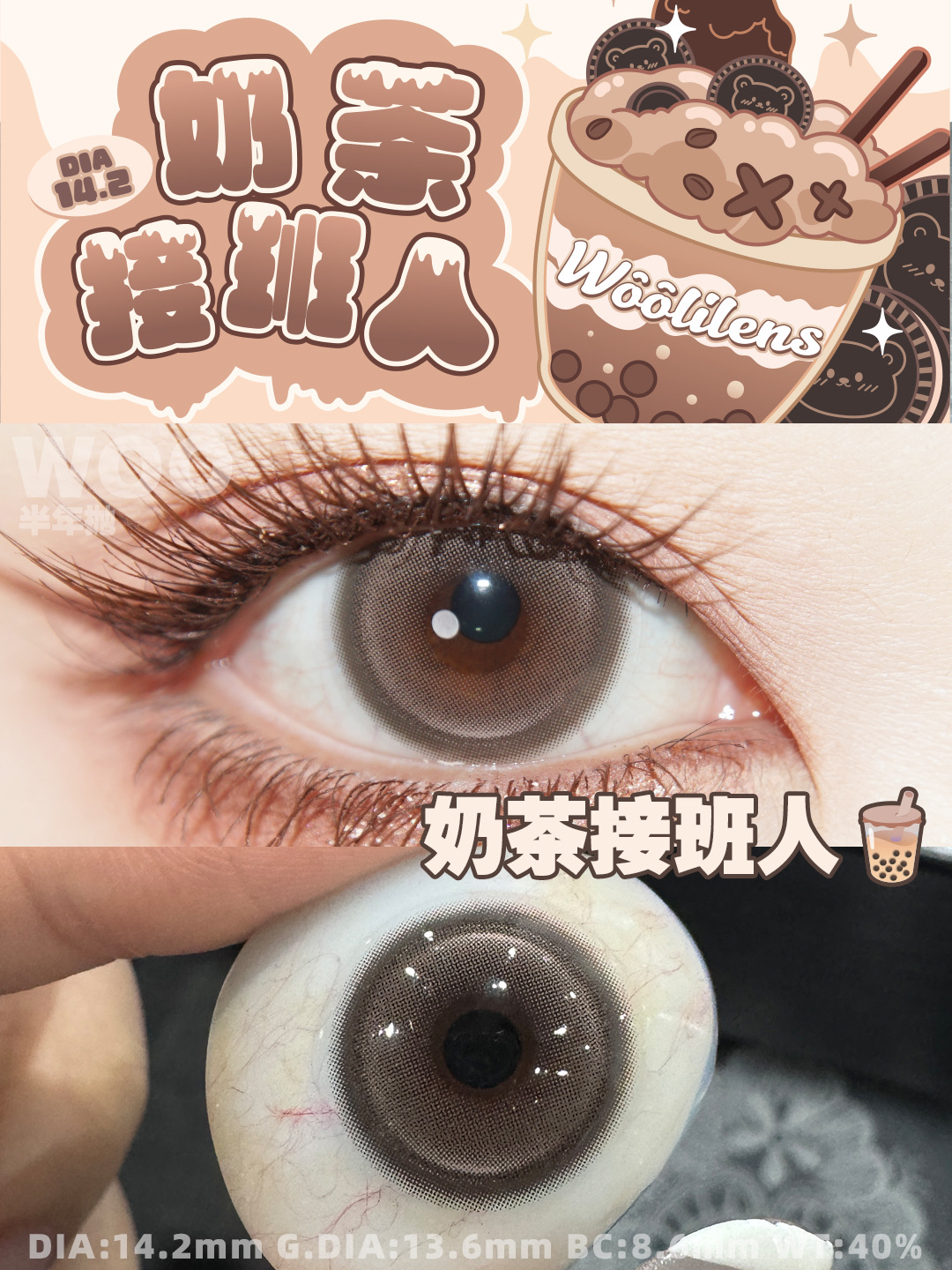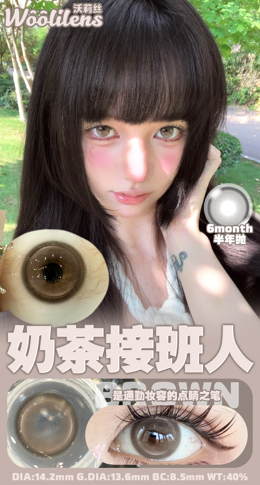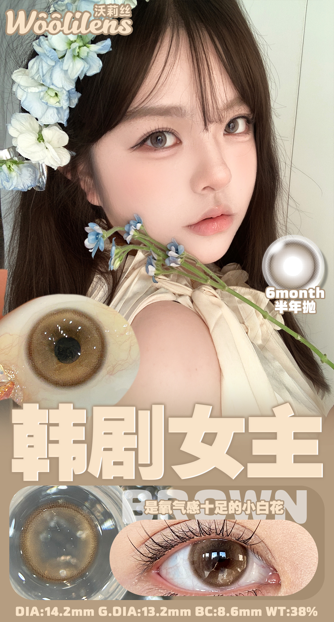 woolilens半年抛 韩剧女主/奶茶接班人 14.2mm 温柔棕色