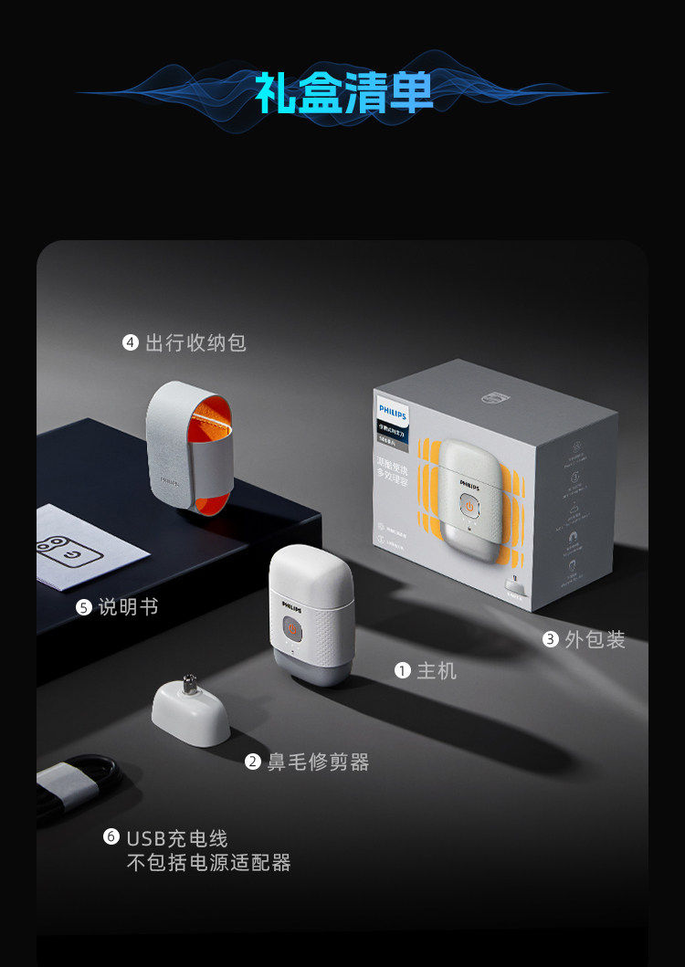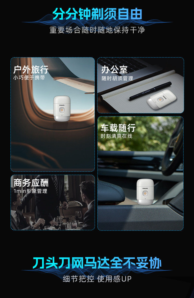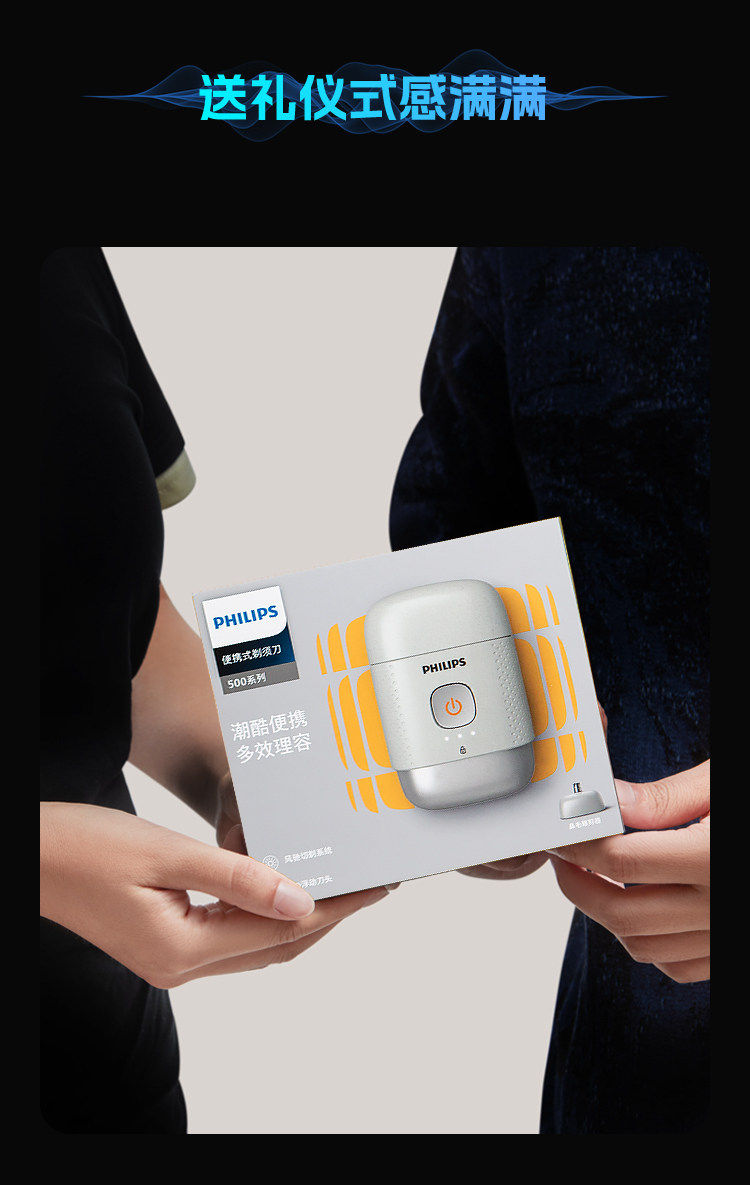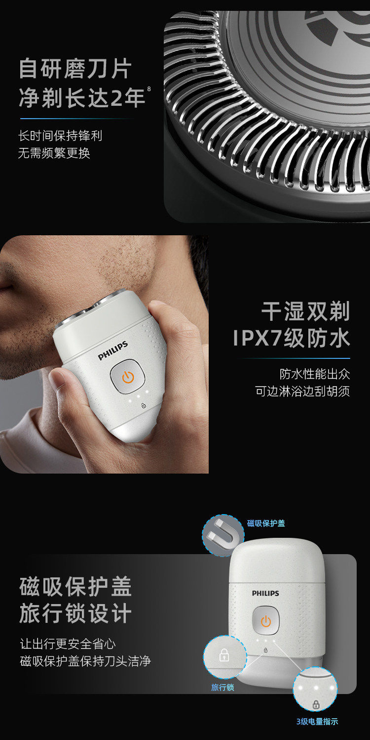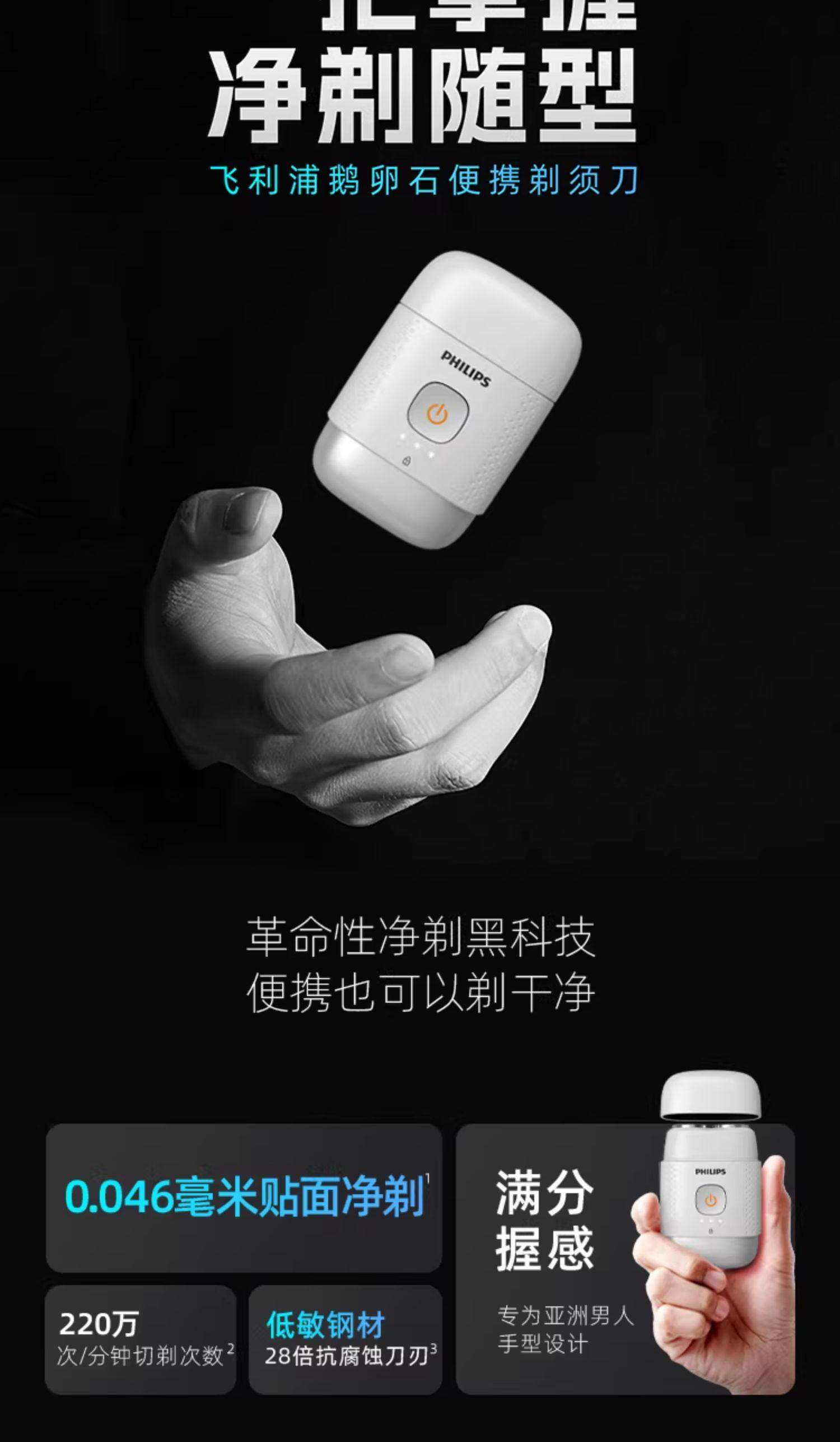 飞利浦PHILIPS电动剃须刀便携款鹅卵石胡须刀送男友YQ660/YQ663