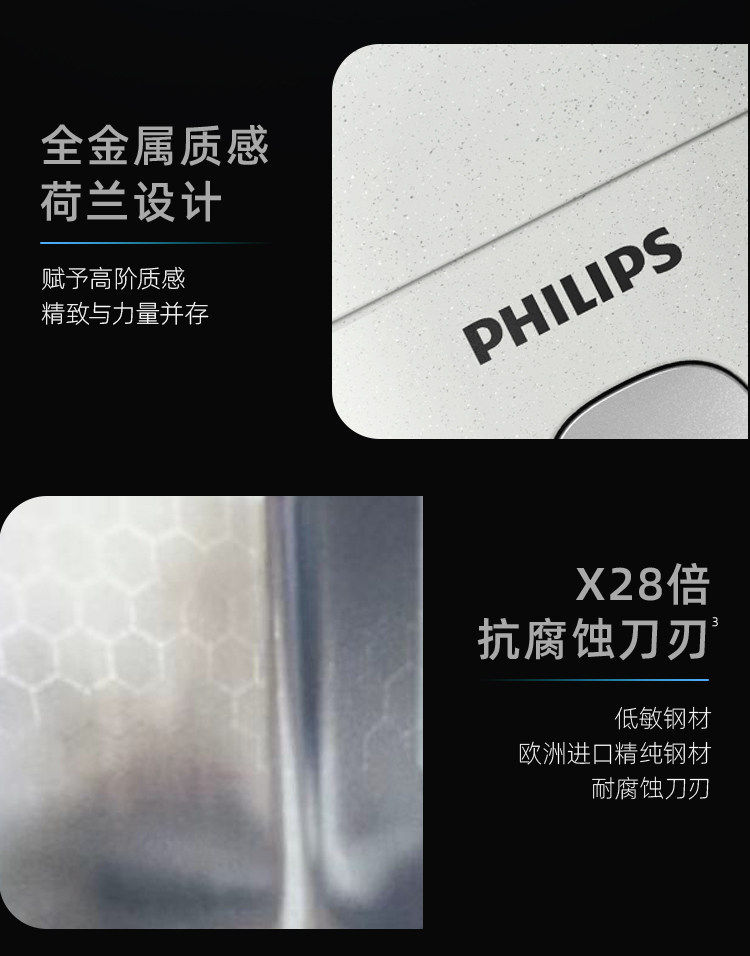 飞利浦PHILIPS男士电动剃须刀进口三刀头全身水洗胡须刀USB充电刮胡刀1h快充升级S1112
