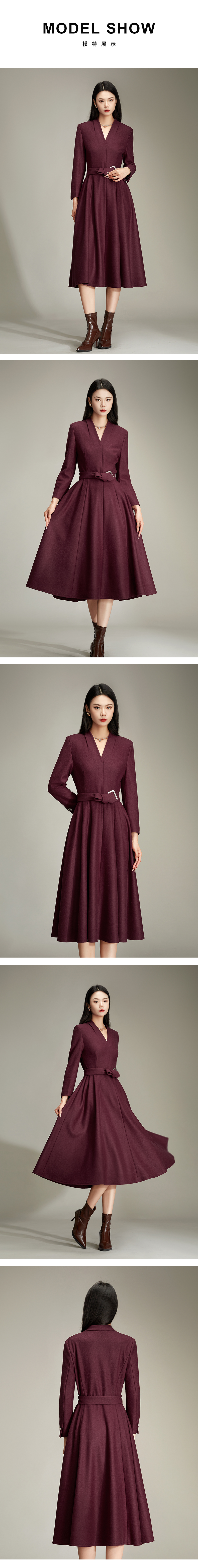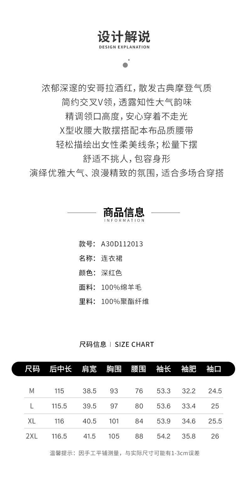 【商场同款】阿菁娜2024冬季新款安可拉红古典连衣裙A30D112013