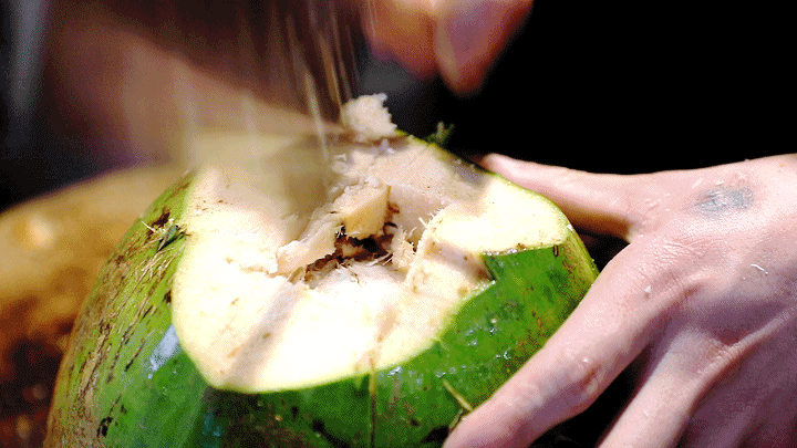越南老椰子汁液味道浓郁,椰香浓厚,给人一种独特的美味体验。