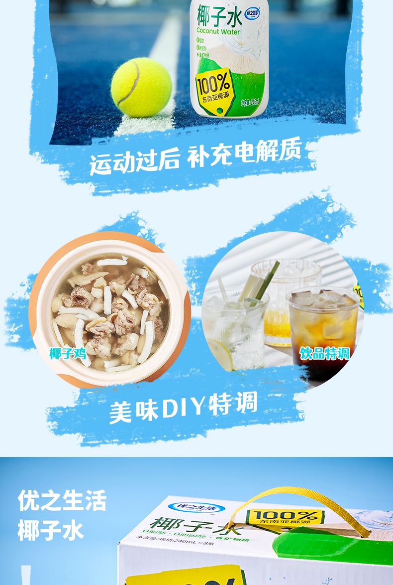 相较于普通生榨椰子汁,优之生活鲜椰汁具有清甜不腻,椰香沁心的特点。