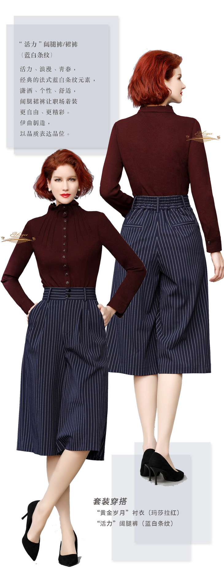 【特惠】YIQU |“活力”阔腿裤/裙裤(蓝白条纹)PT