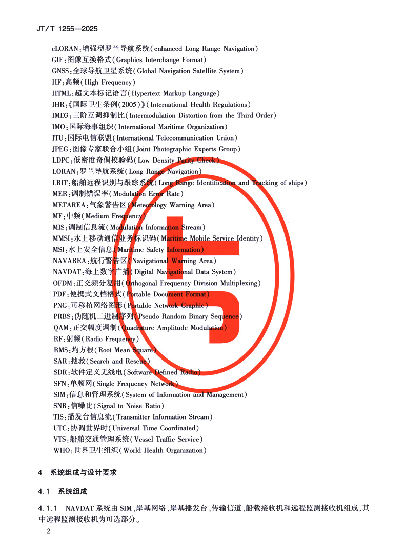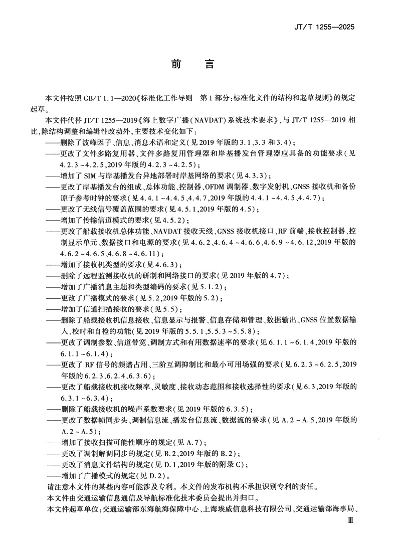 书名:海上数字广播(NAVDAT)系统技术要求 (JT/T 1255—2025)