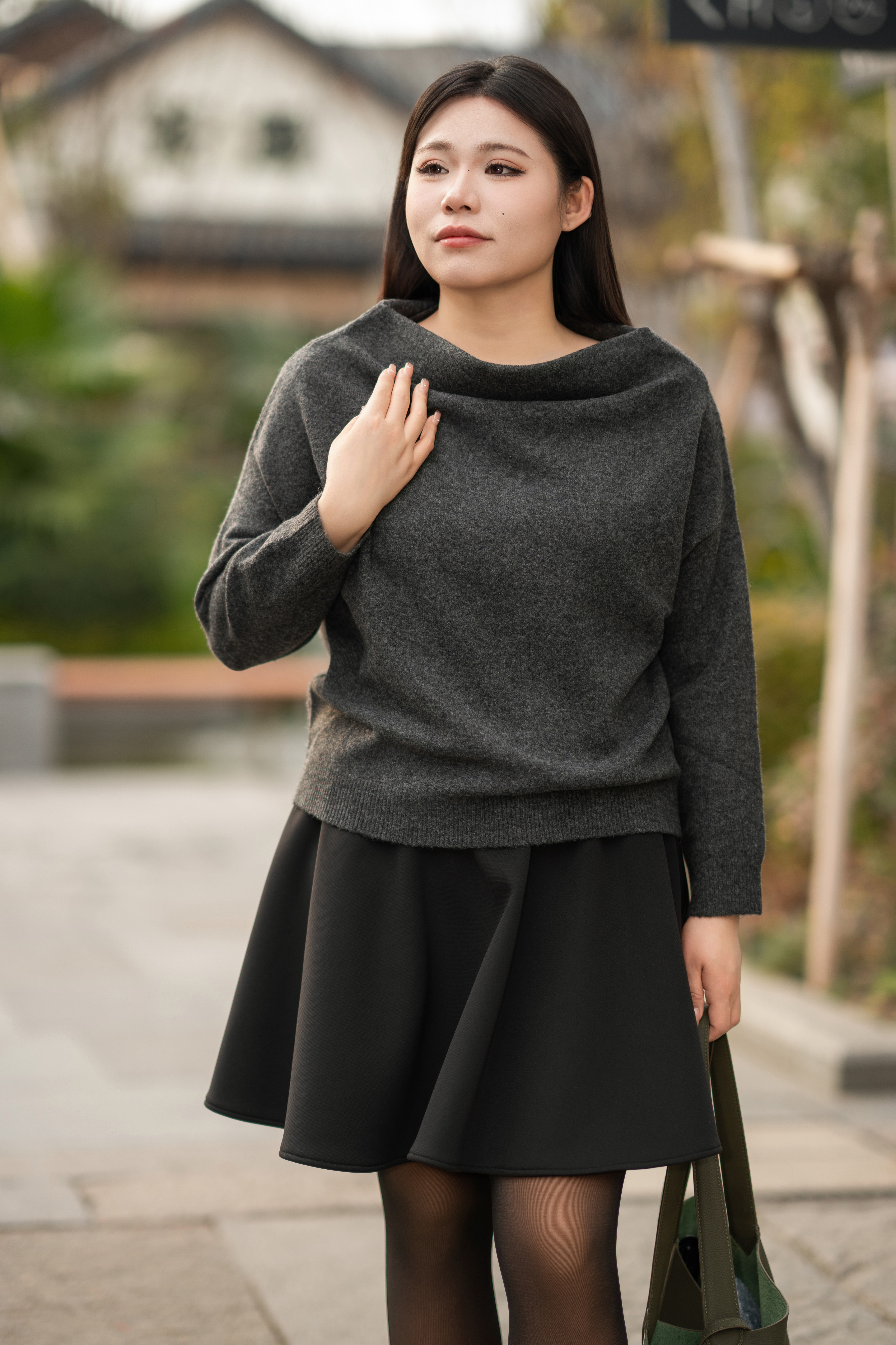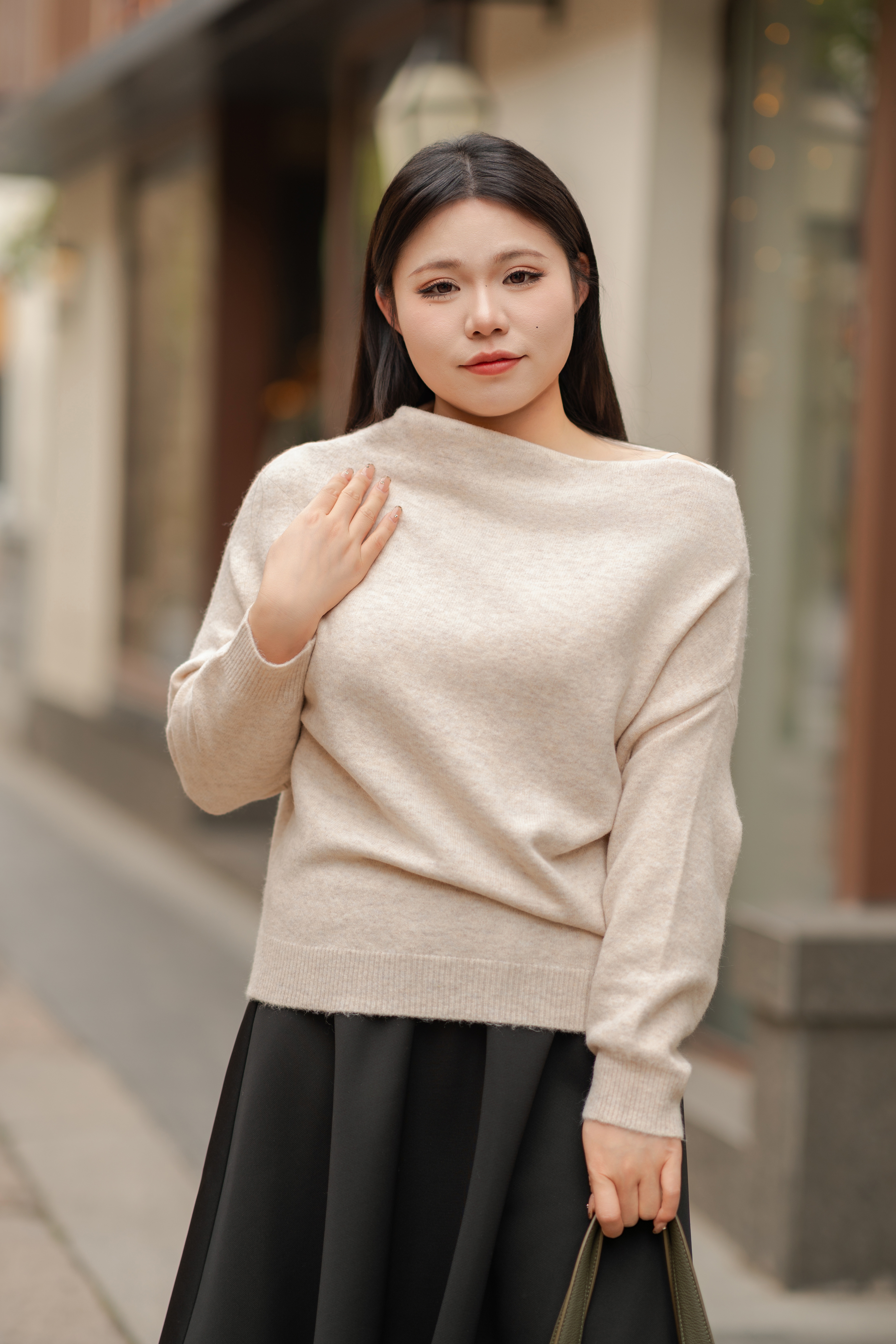 10天发货【绵羊毛混纺大领口毛衣】套头款,宽松温柔范儿~领口斜拉/平拉作斜肩、一字领穿法,成分:58.8%腈纶33.5%聚酯纤维6.1%绵羊毛1.6%氨纶
