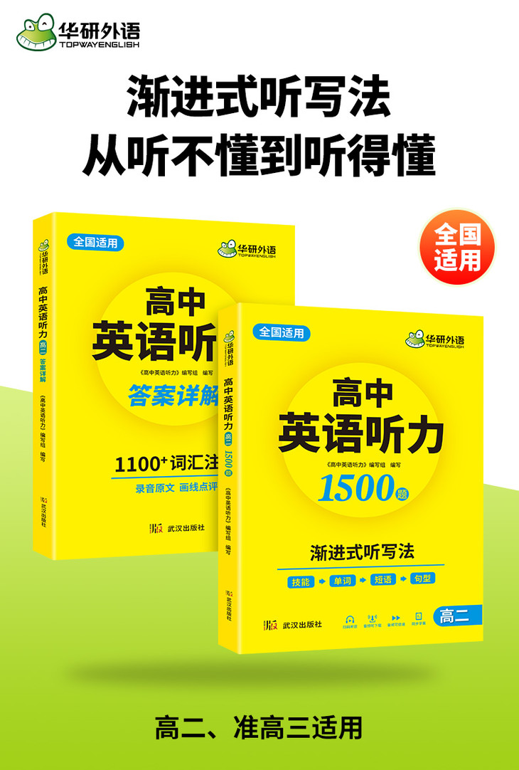 2. 渐进式听写法进行训练,分成“听前,词汇预习→标准听力试题练习→听后,听写巩固语言基础”三个阶段,帮助学生掌握科学的听力训练方法;