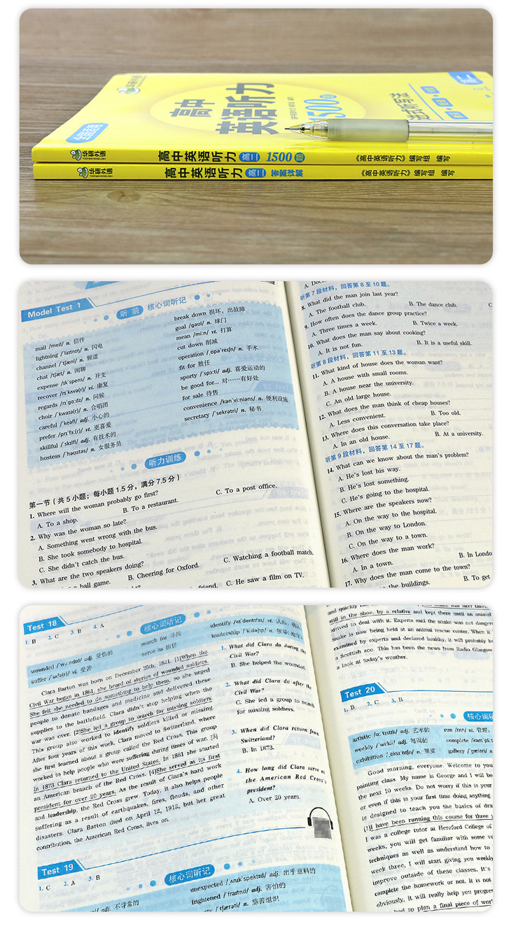 3. 巩固词汇基础:全部听力训练均给出听力核心词,核心词均配录音,方便学生掌握发音,听懂词汇并提供听力词汇习题;