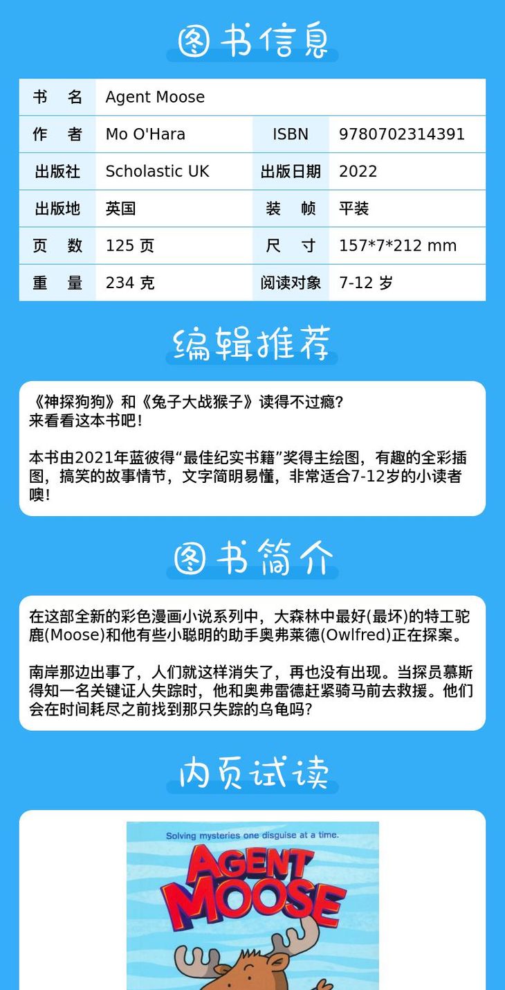 【纽约时报畅销榜·7-12岁】Agent Moose 2册合售 儿童幽默搞笑漫画绘本图画书 Mo O'Hara作品