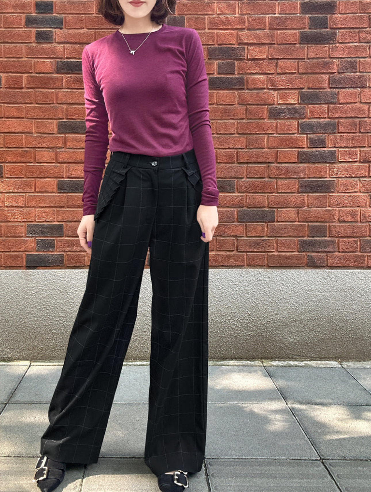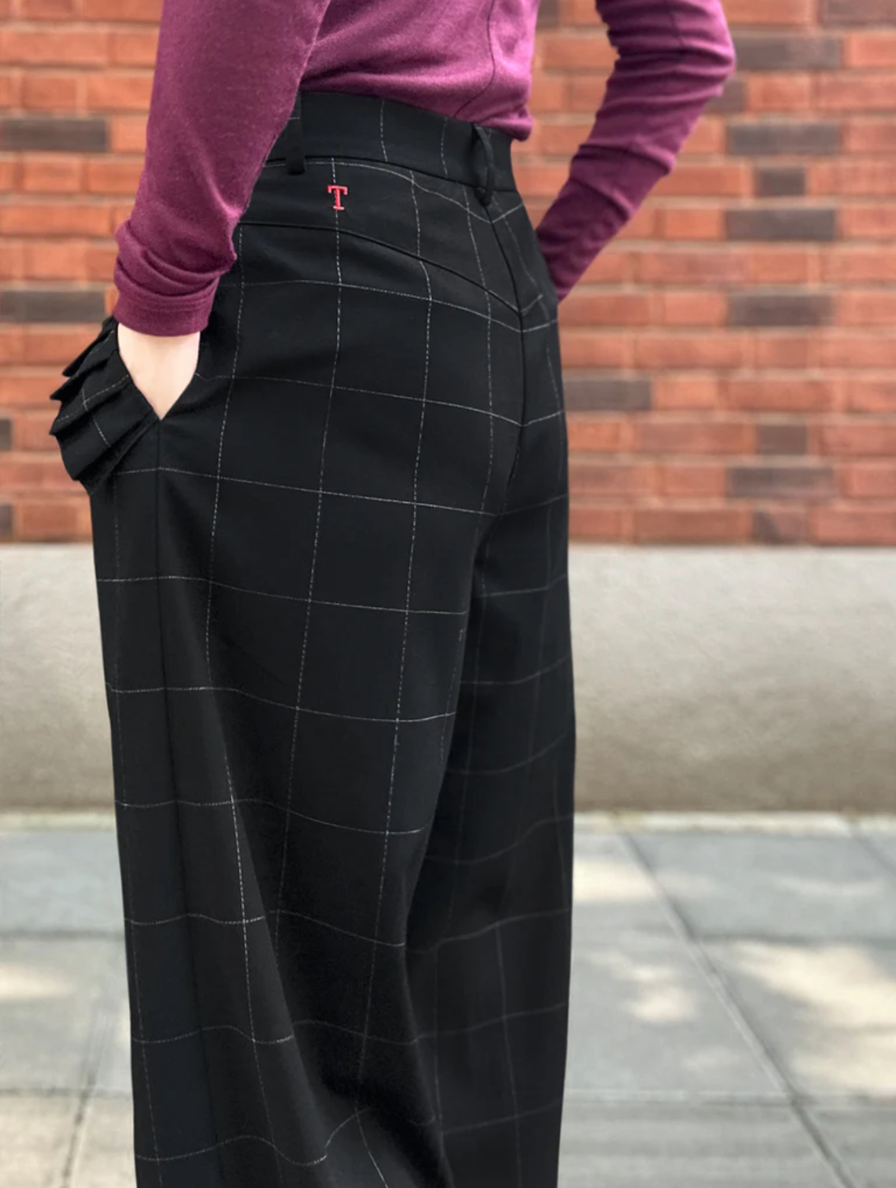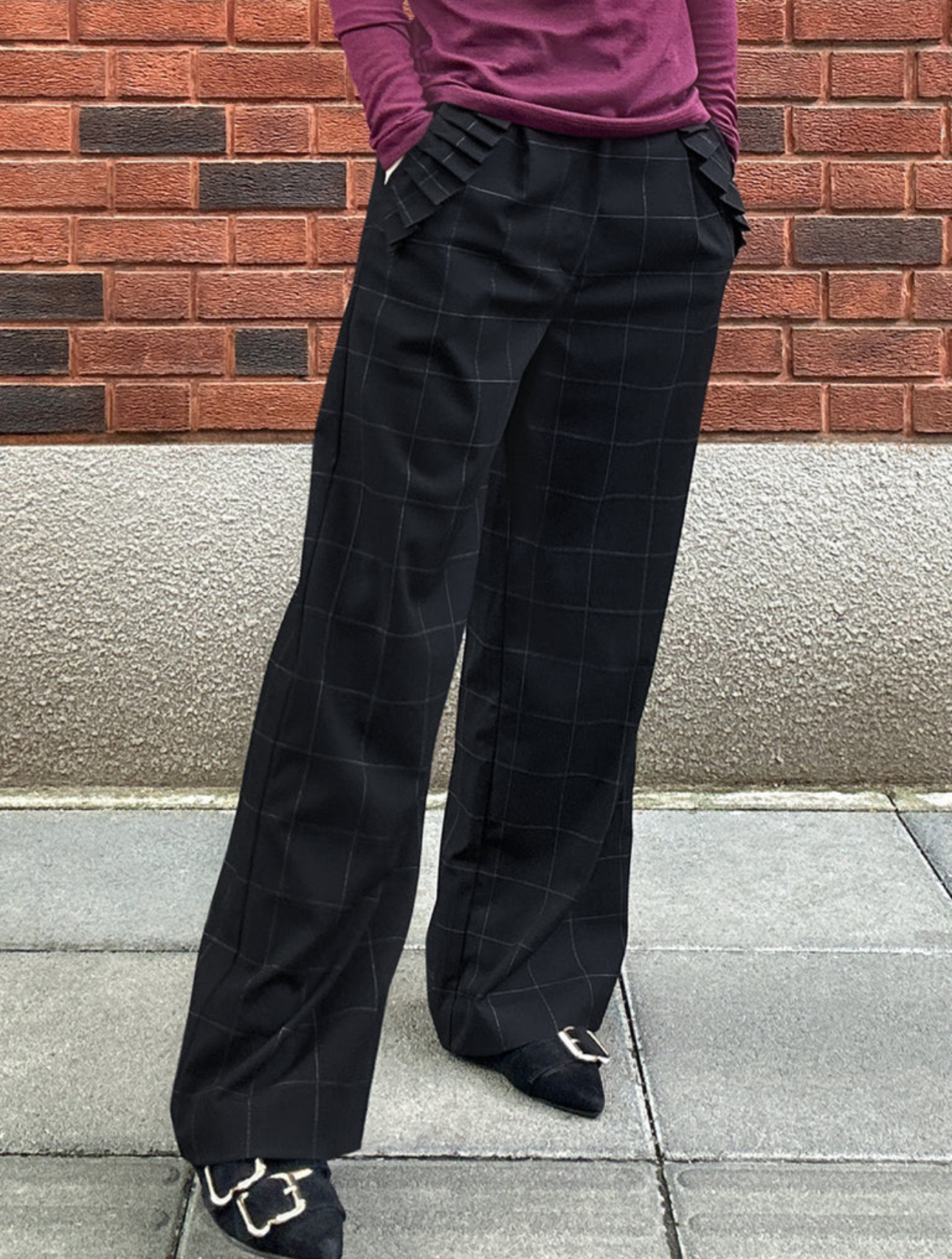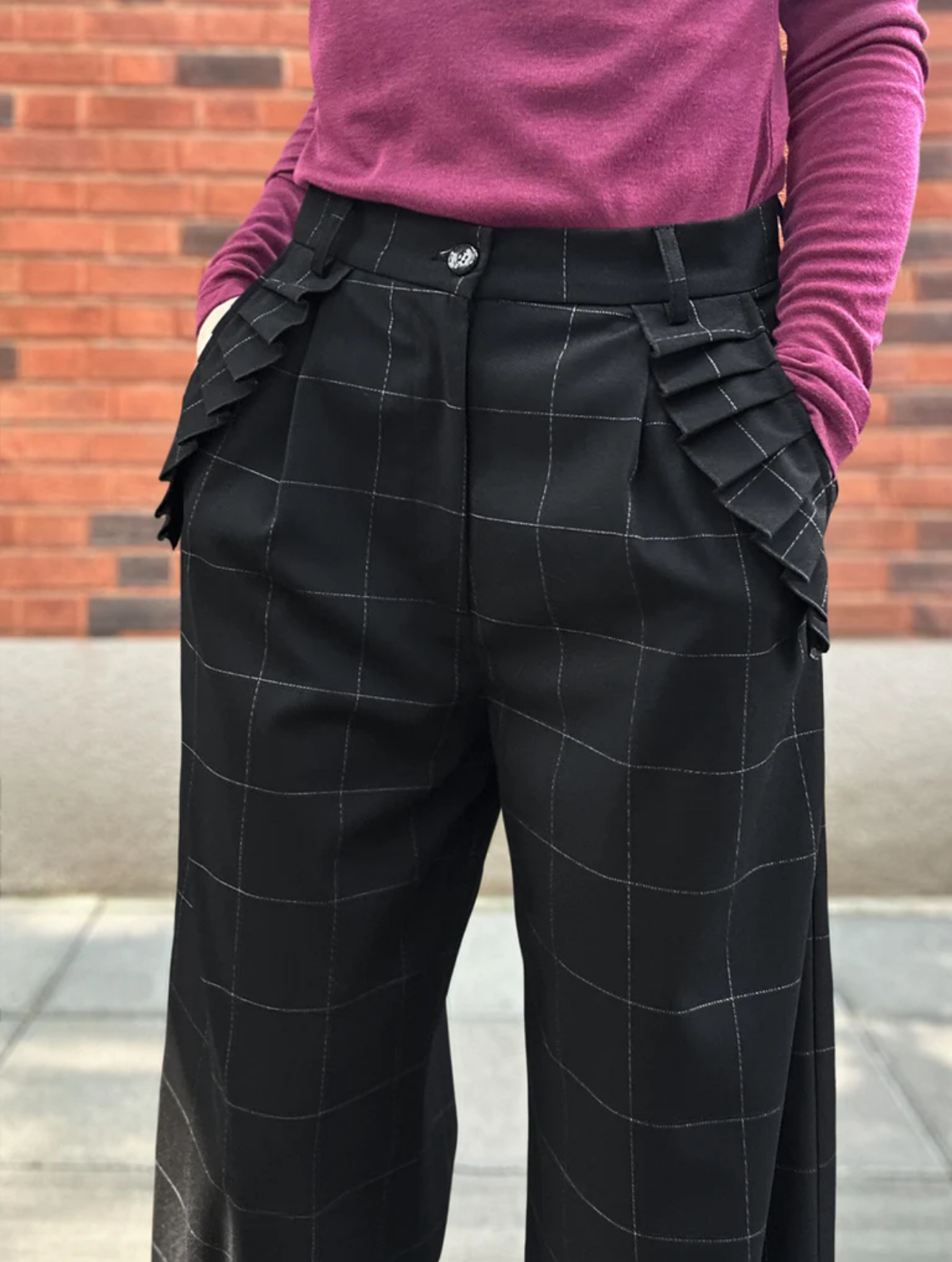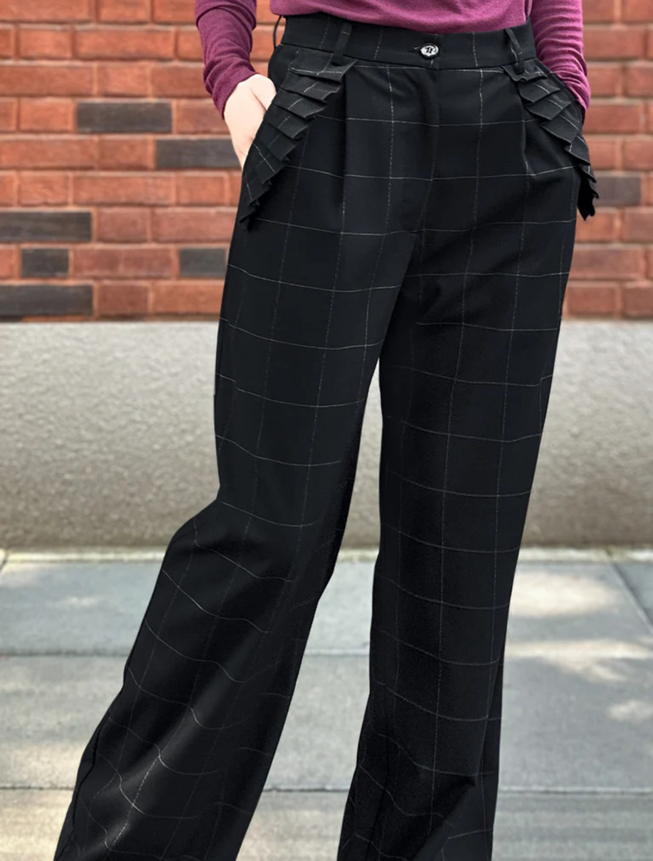 TYNVIE 荷叶边袋口装饰廓形西装-蓝色白点