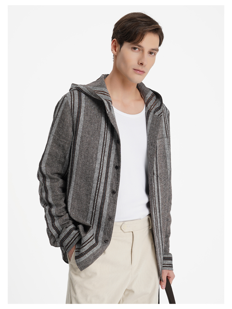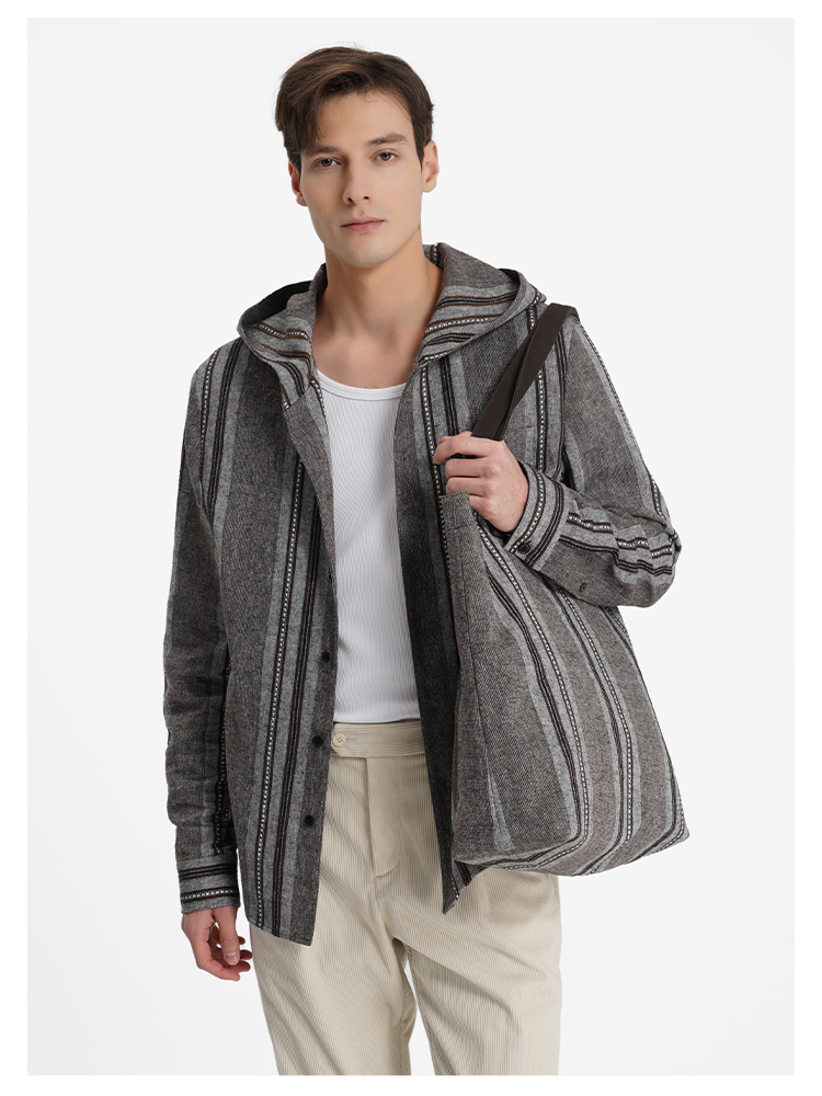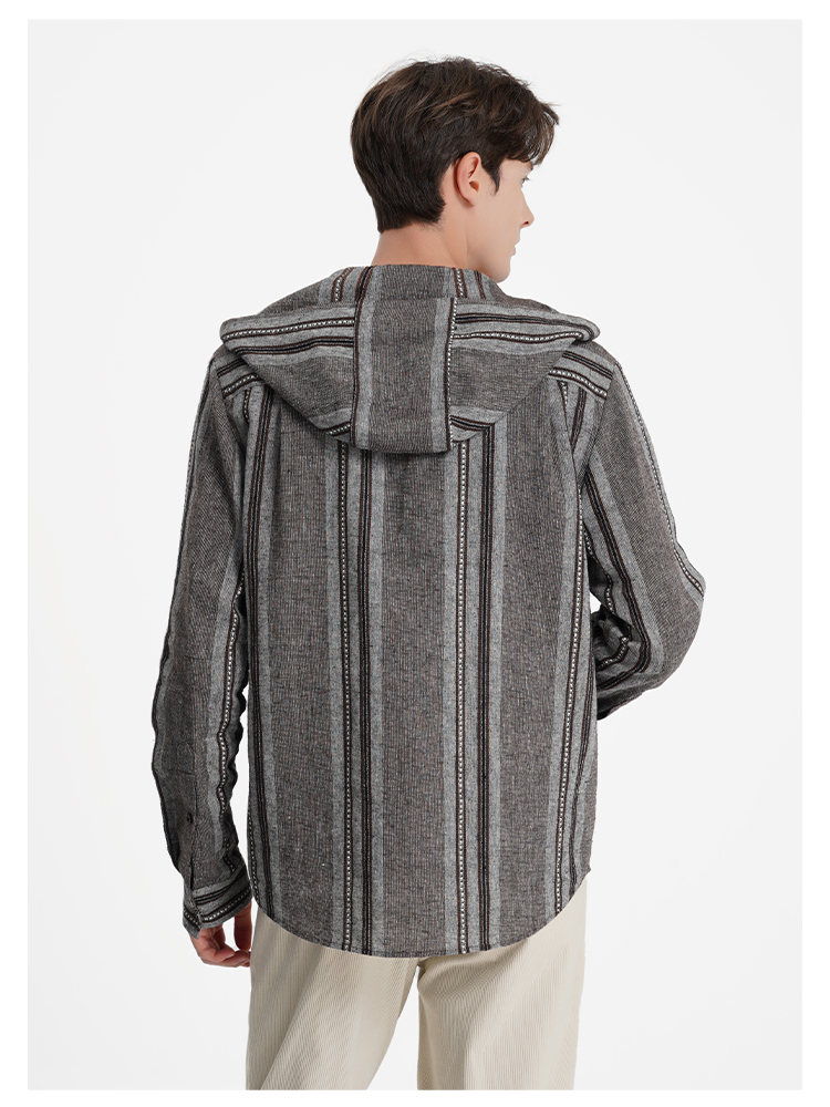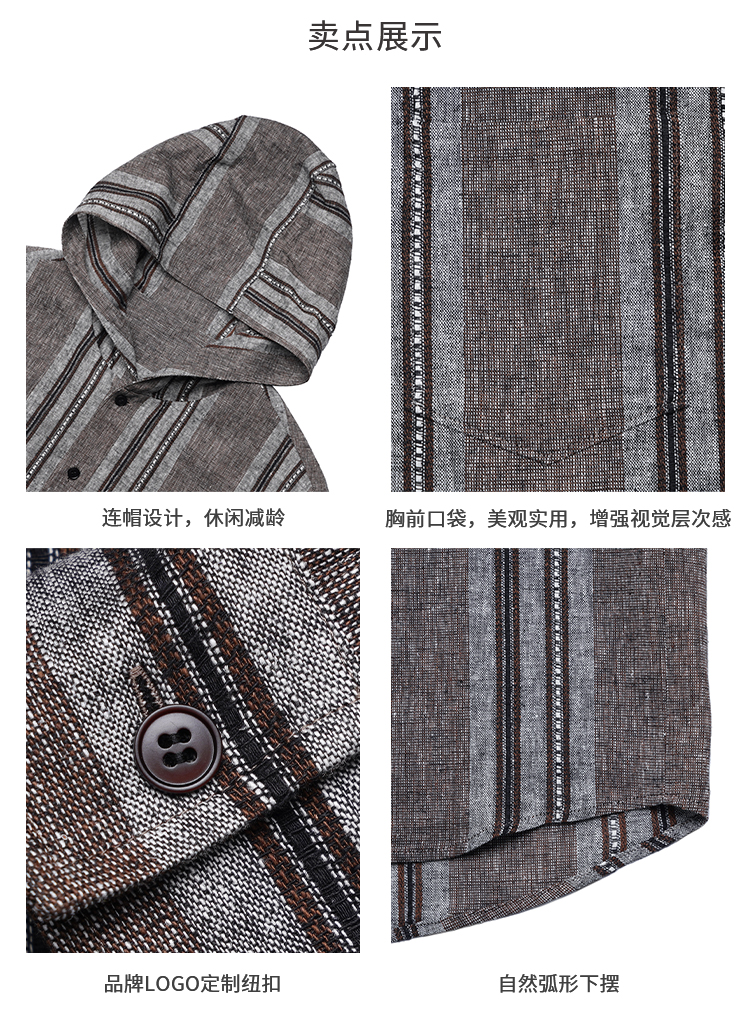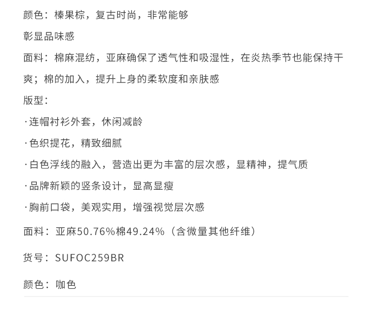 callisto山海系列榛果棕棉麻混纺连帽衬衫外套