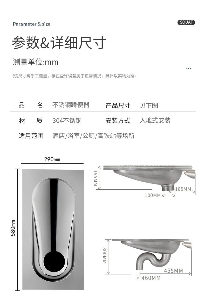 器蹲式厕出水酒吧304大便超薄便盆小户型四周便器蹲坑不锈钢蹲