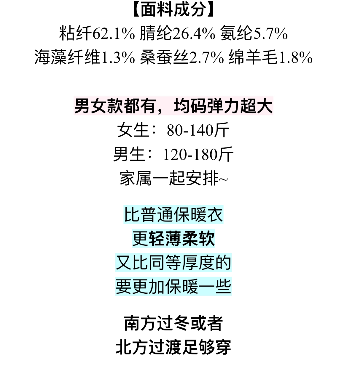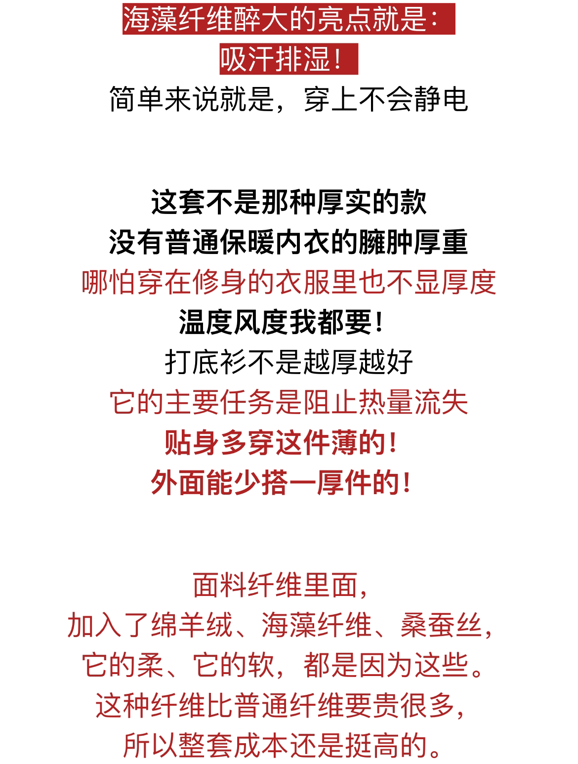 海中羊绒!软暖过冬!Cerotich海藻蚕丝男士/女士保暖内衣贴秋衣秋裤套装