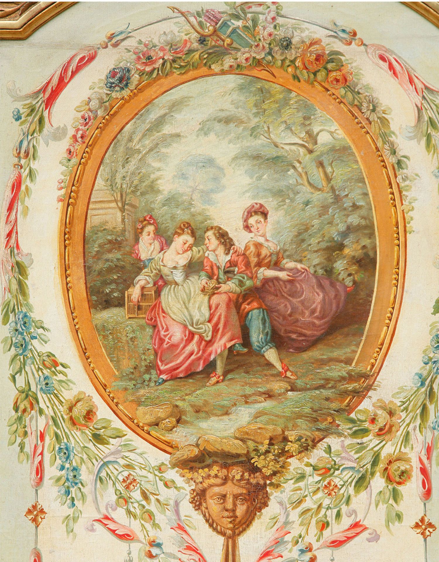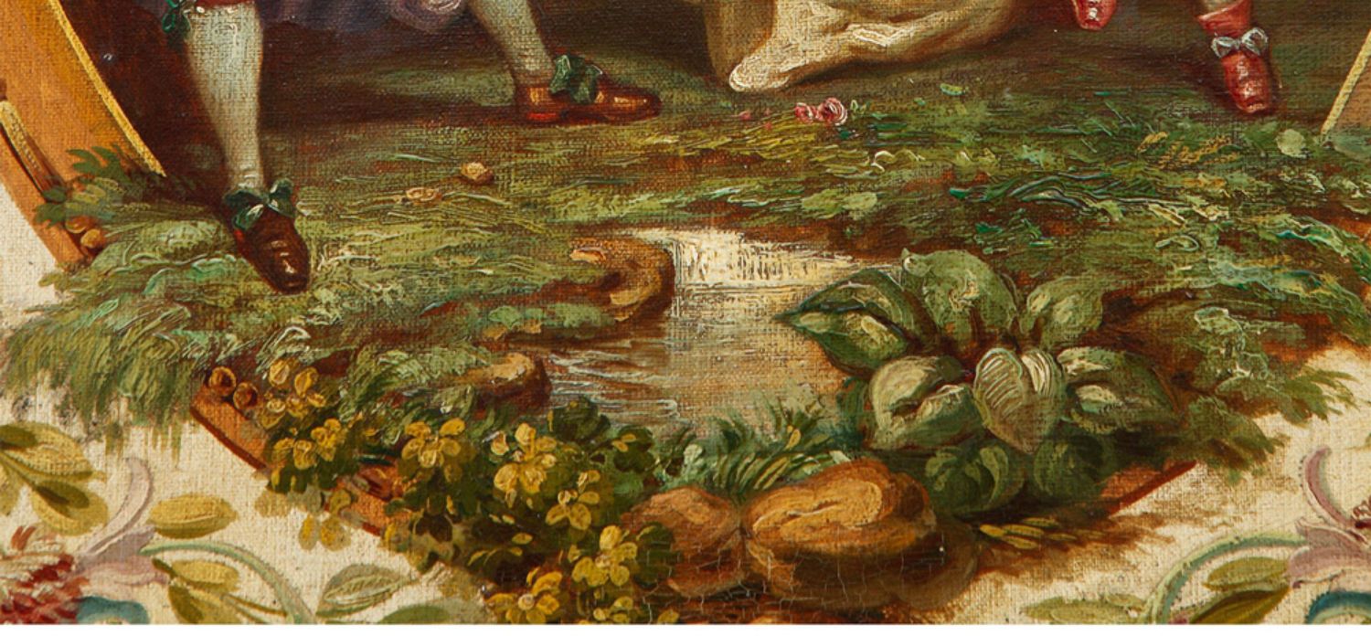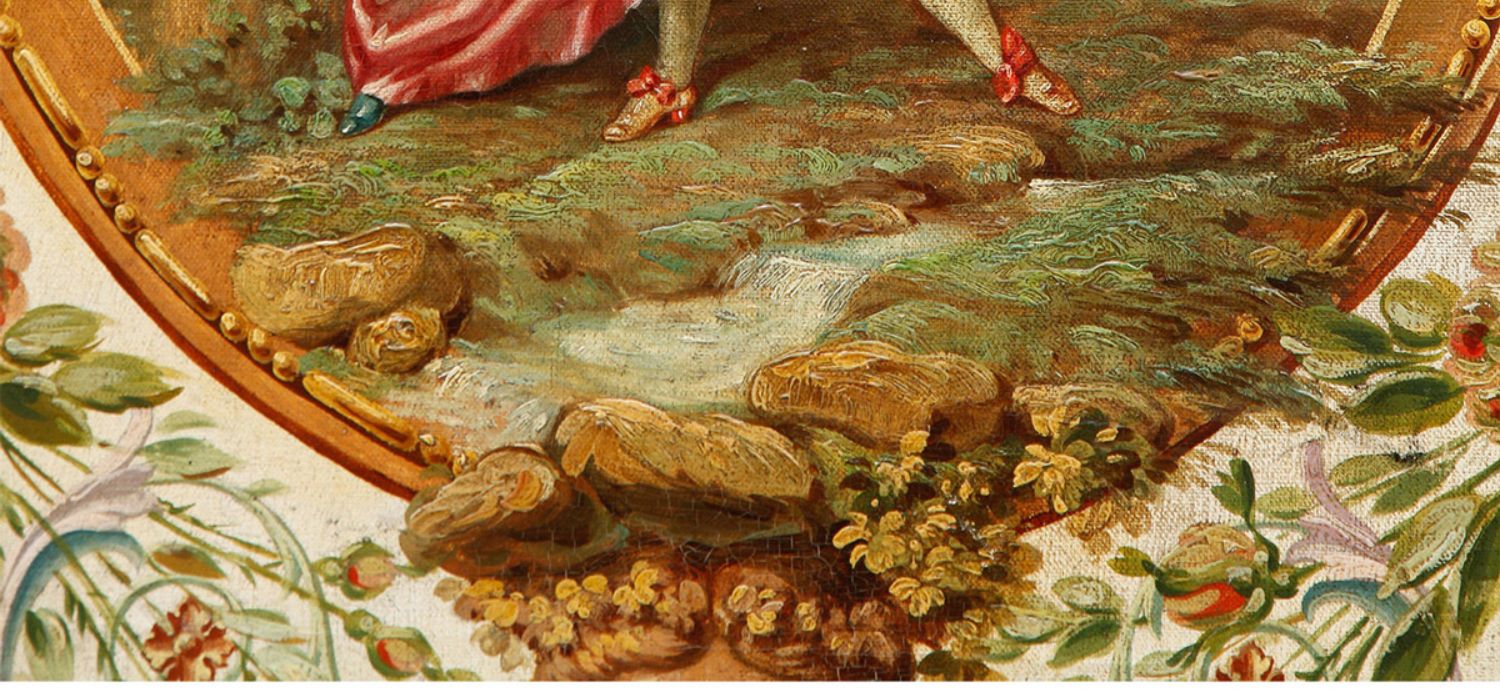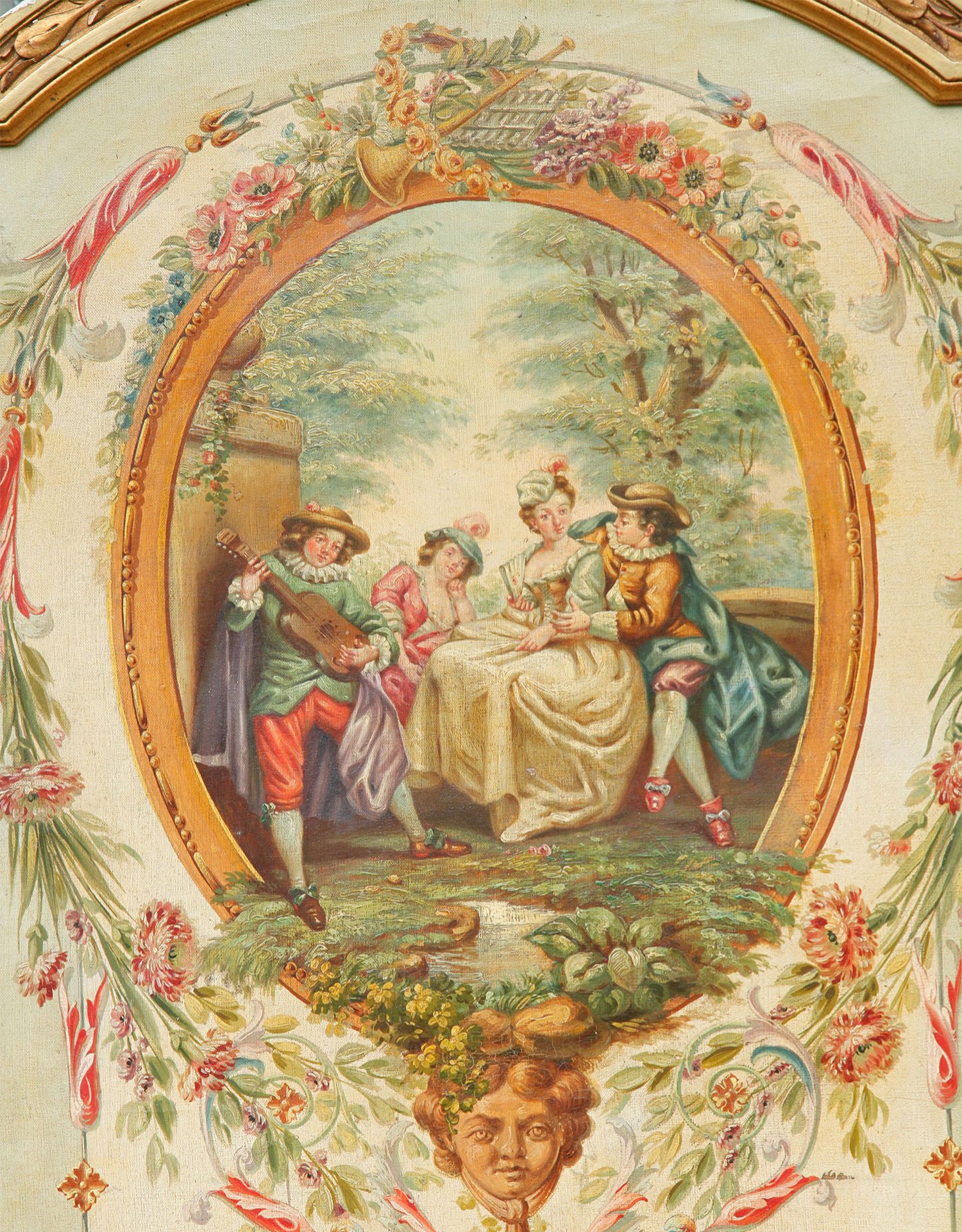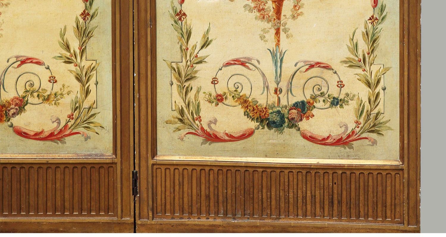 独角鹿西洋古董法国路易十六风格木雕框架田园雅宴图绘三扇屏风