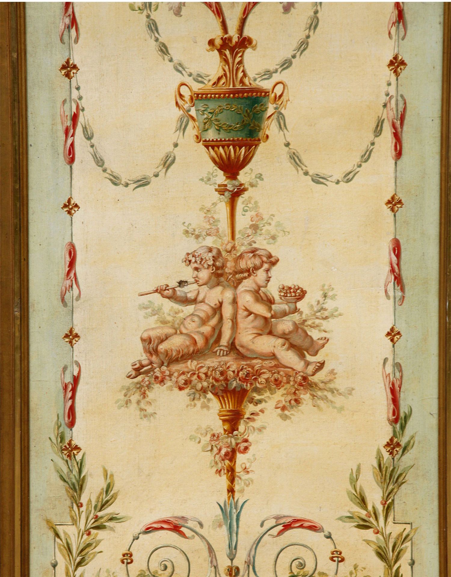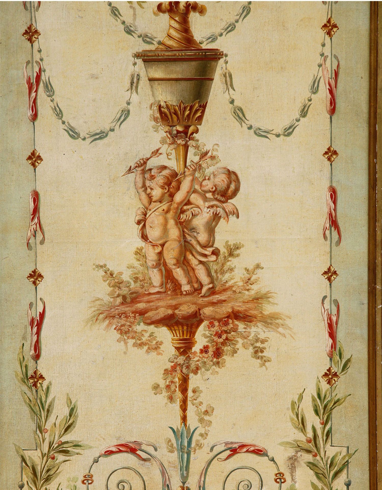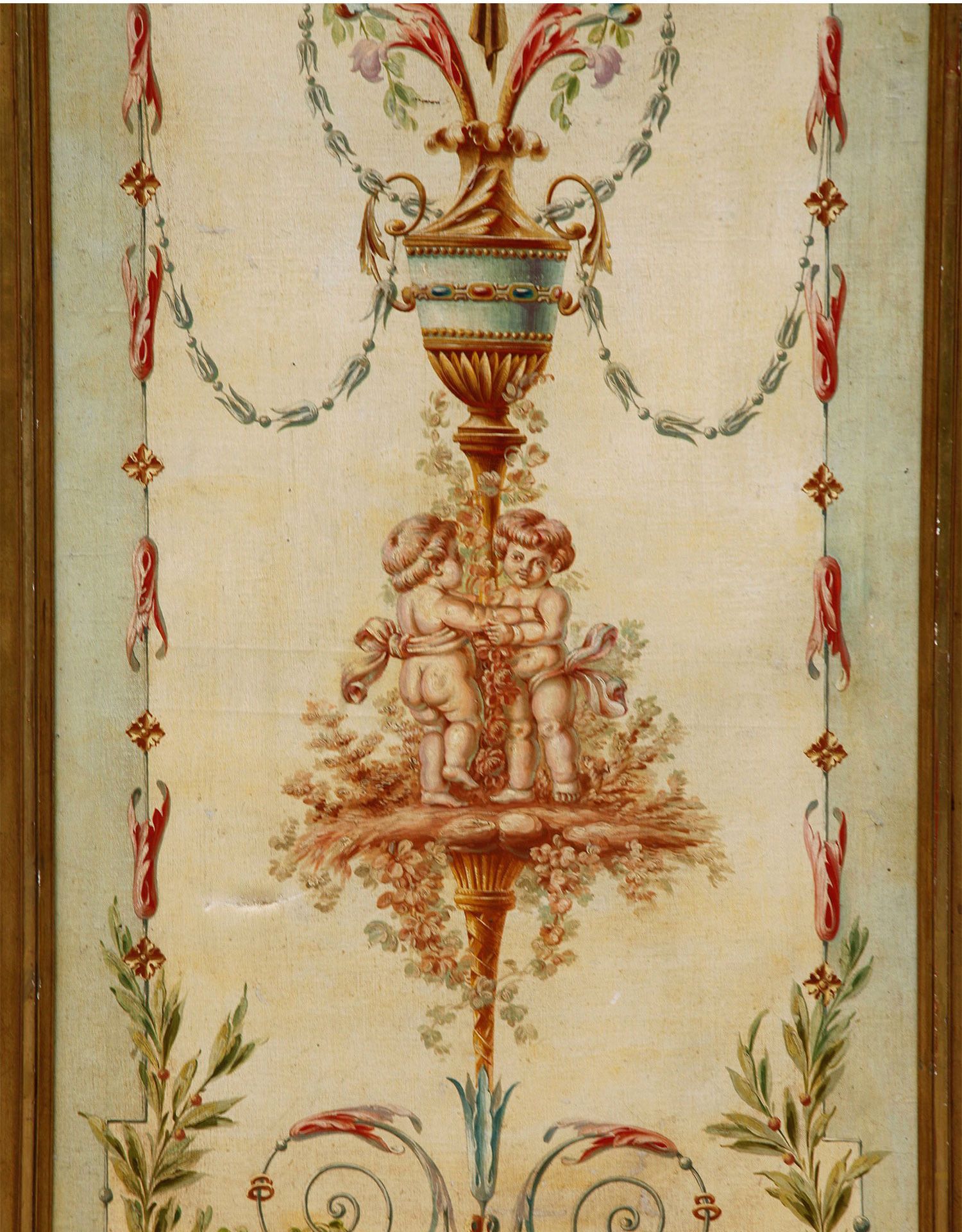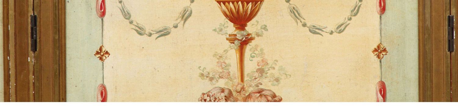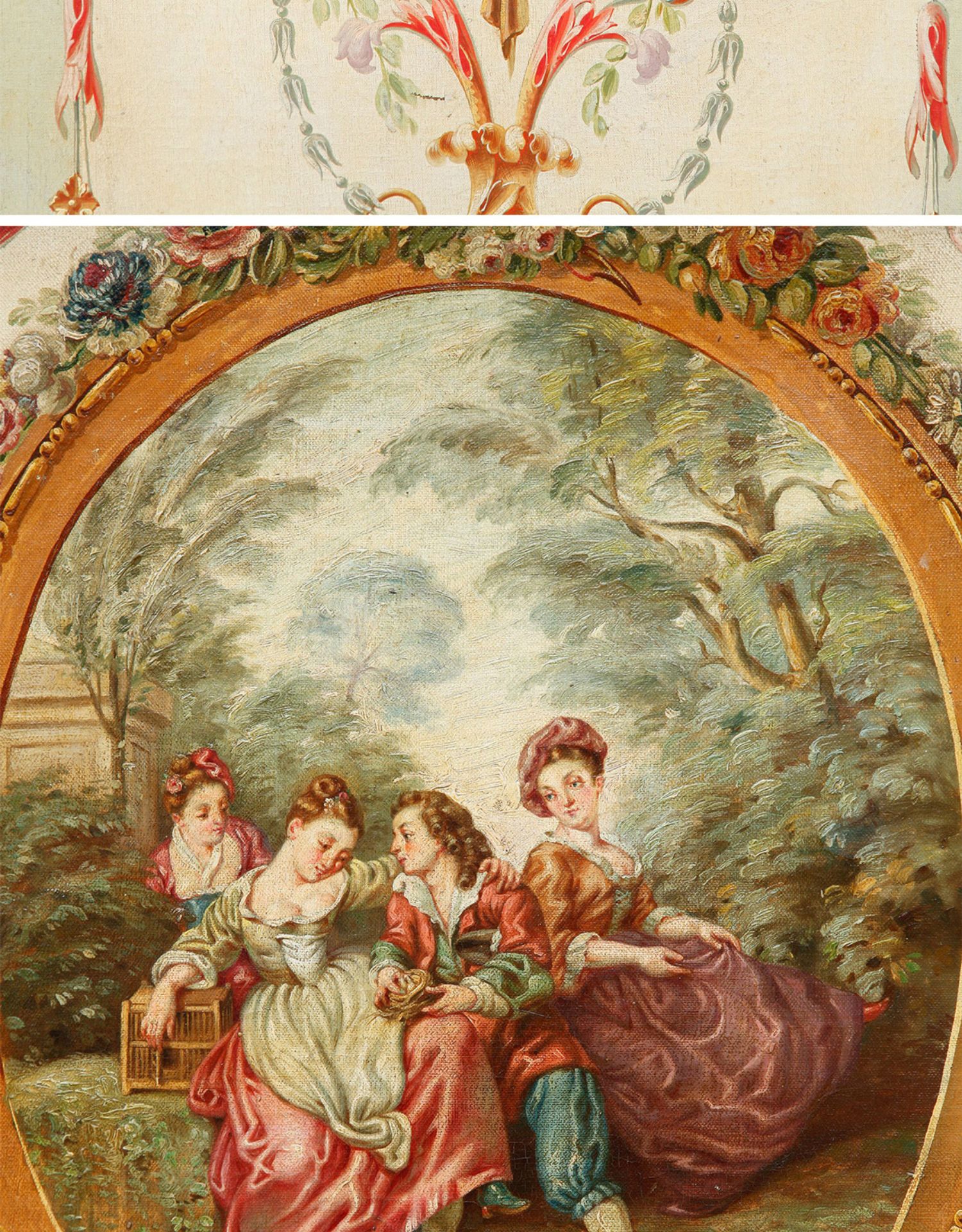 独角鹿西洋古董法国路易十六风格木雕框架田园雅宴图绘三扇屏风