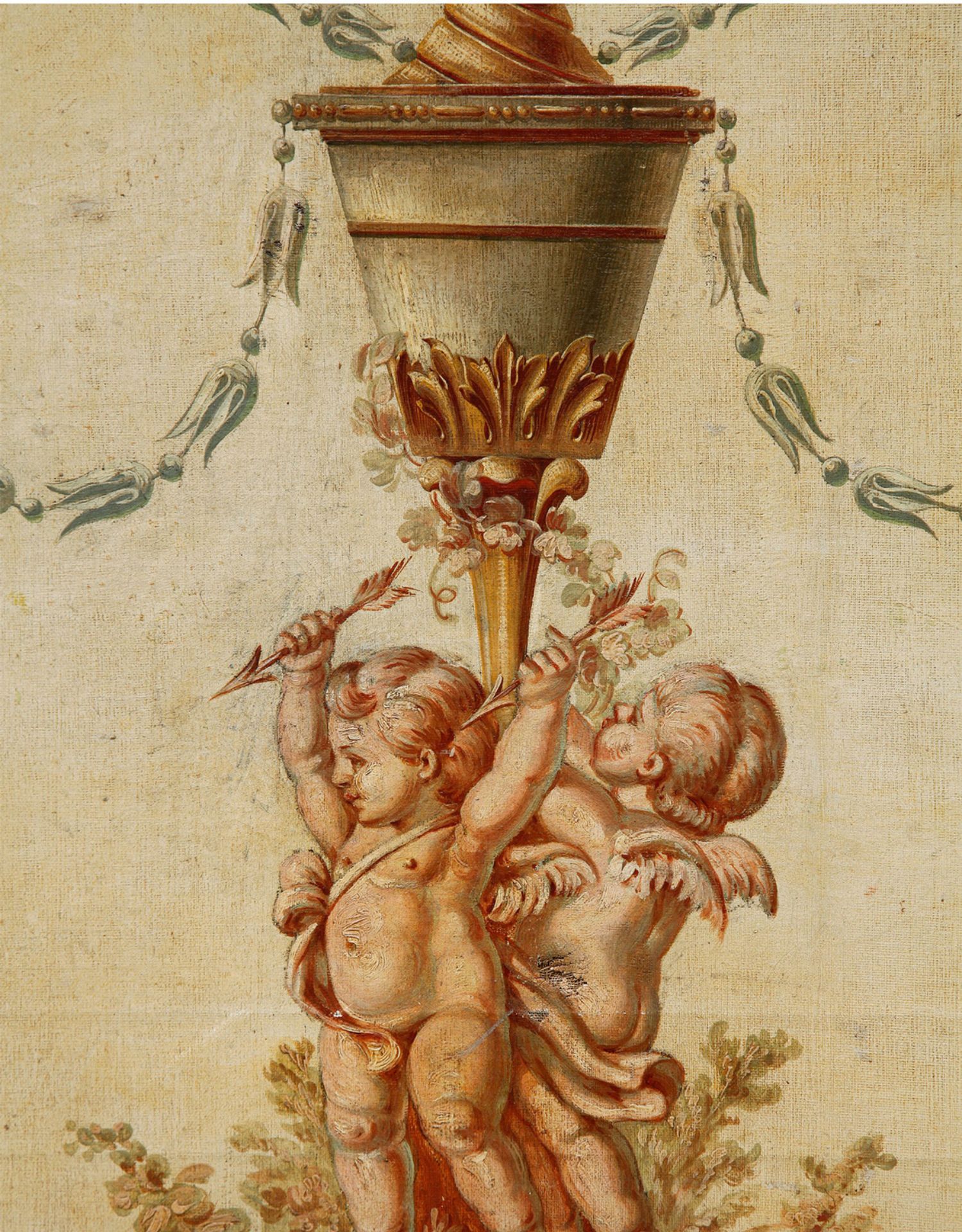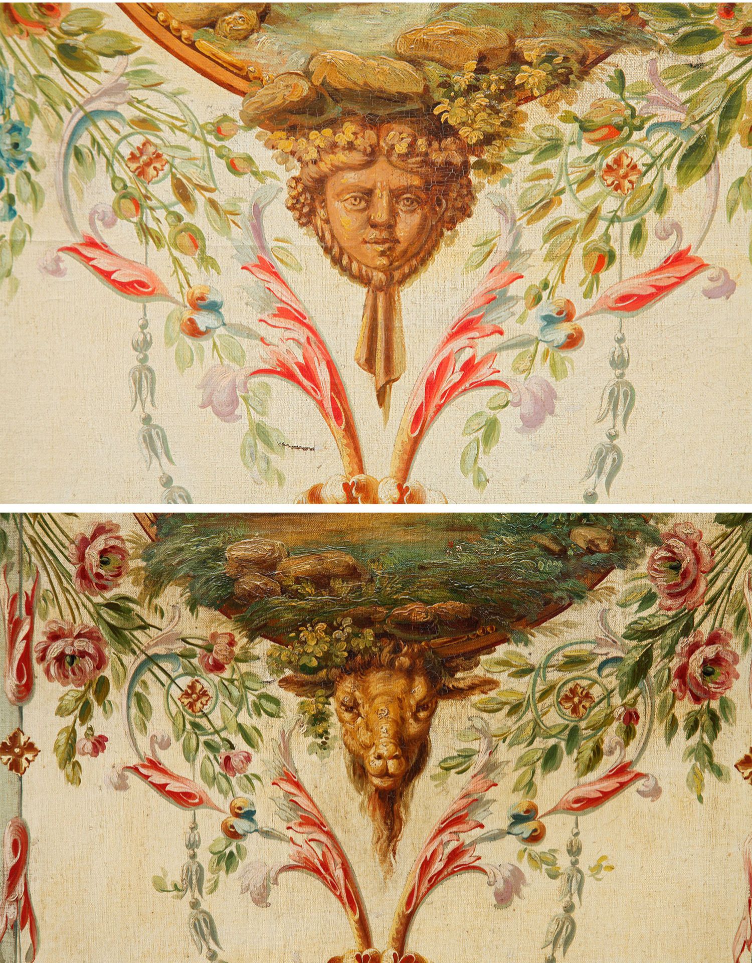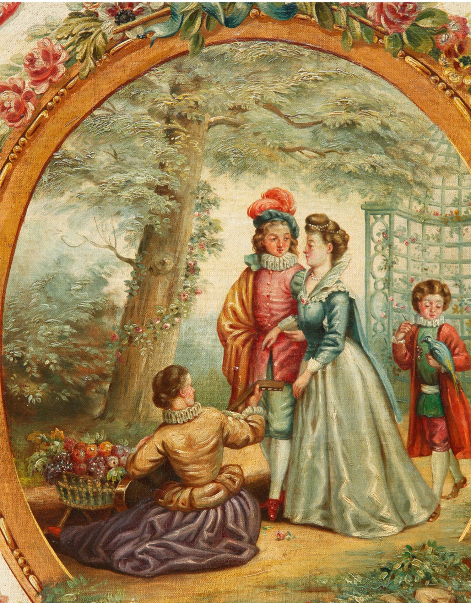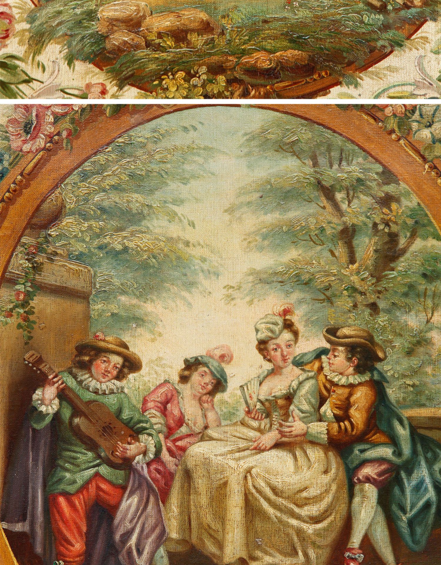 独角鹿西洋古董法国路易十六风格木雕框架田园雅宴图绘三扇屏风