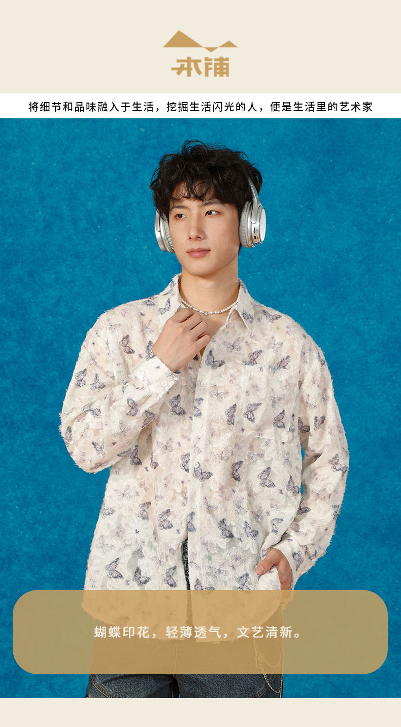 蓝色蝴蝶流苏衬衫-纪念日百货门店同款165993573