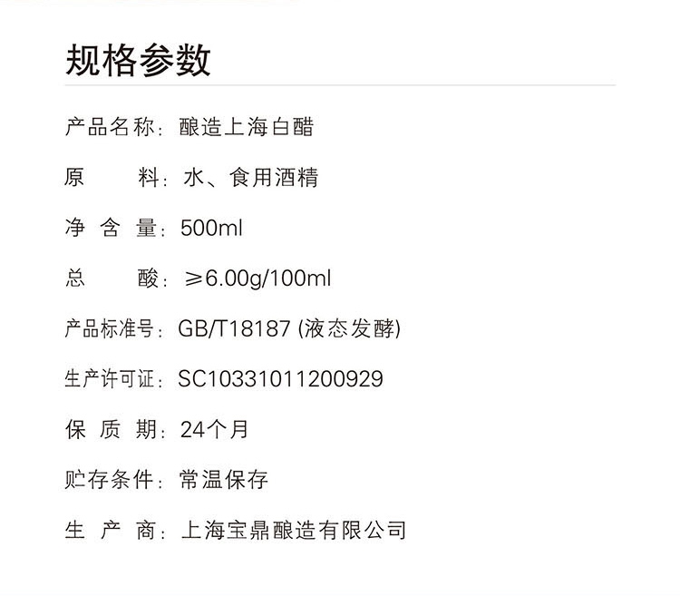【上海白醋】500ml*1瓶