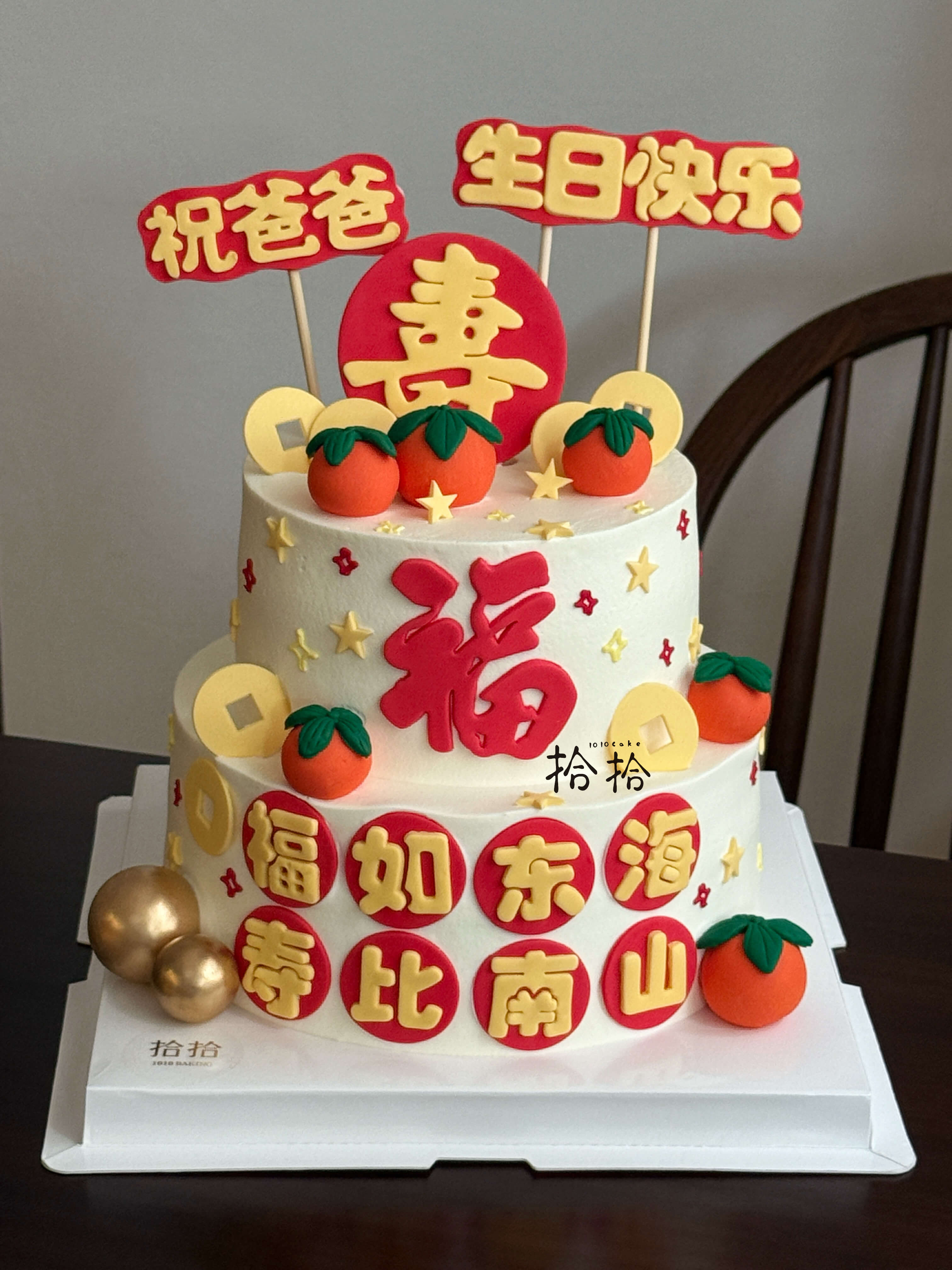 「柿柿如意·福寿安康」送爸妈长辈·双层·100%动物奶油(附图6寸+8寸·提前5天预订)