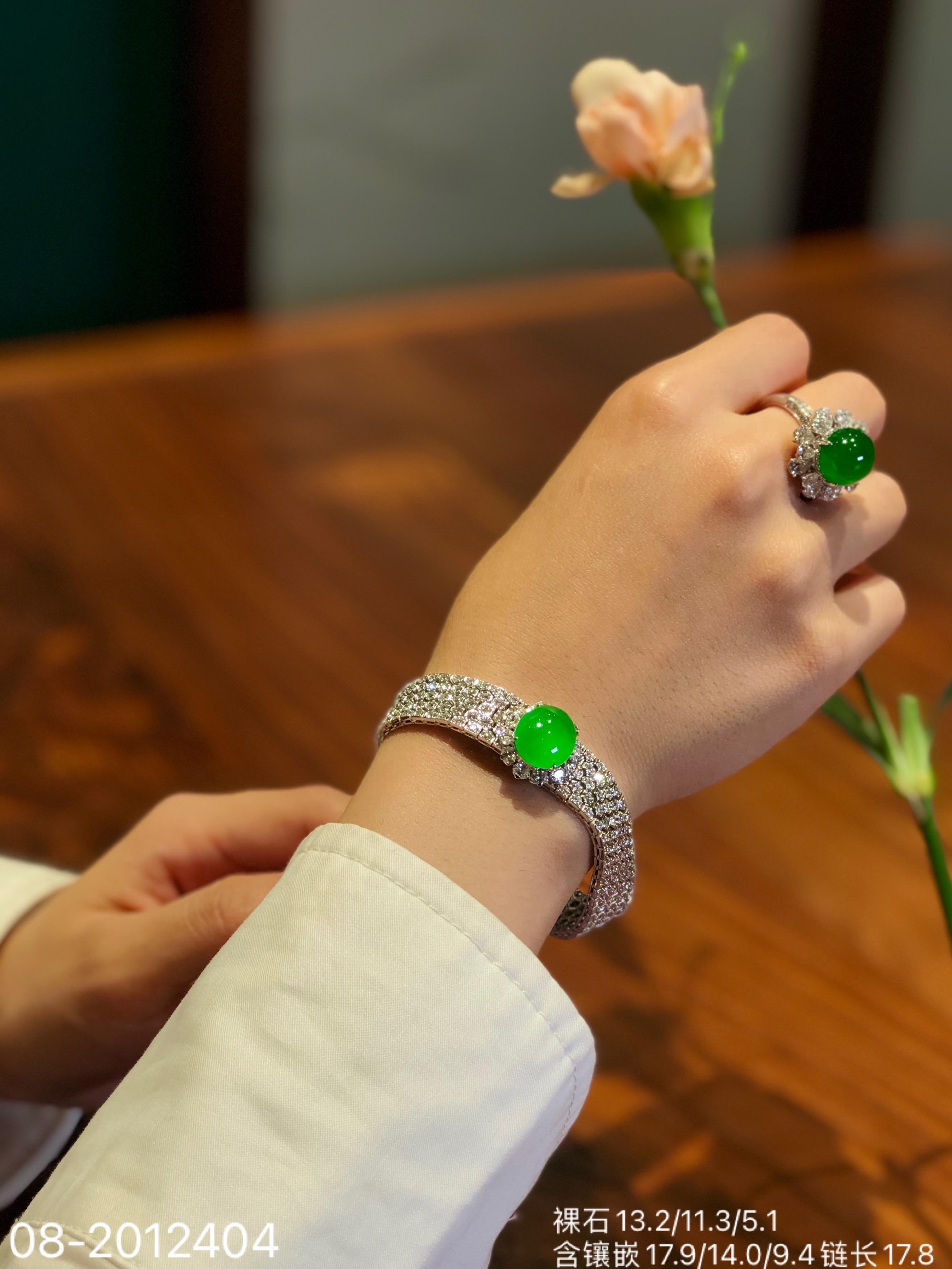 高冰阳艳绿蛋面手链 【08-2012404】具体价格微信咨询